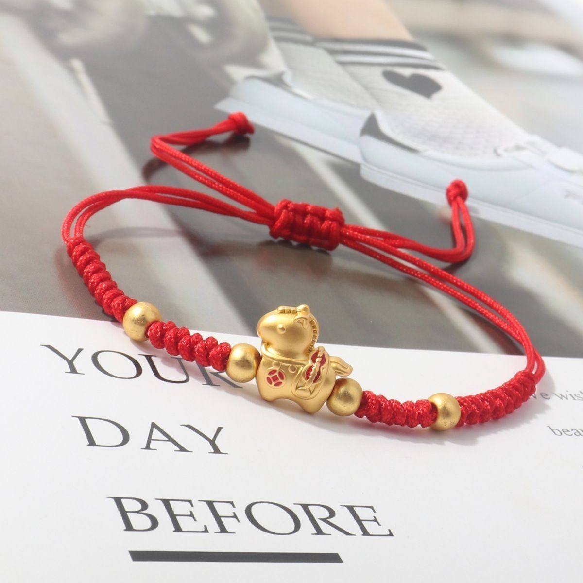 Popular 2026 Year of the Horse Zodiac Year Lucky Red Rope Braided Bracelet for Immediate Wealth New Year Bracelet New Year Gift