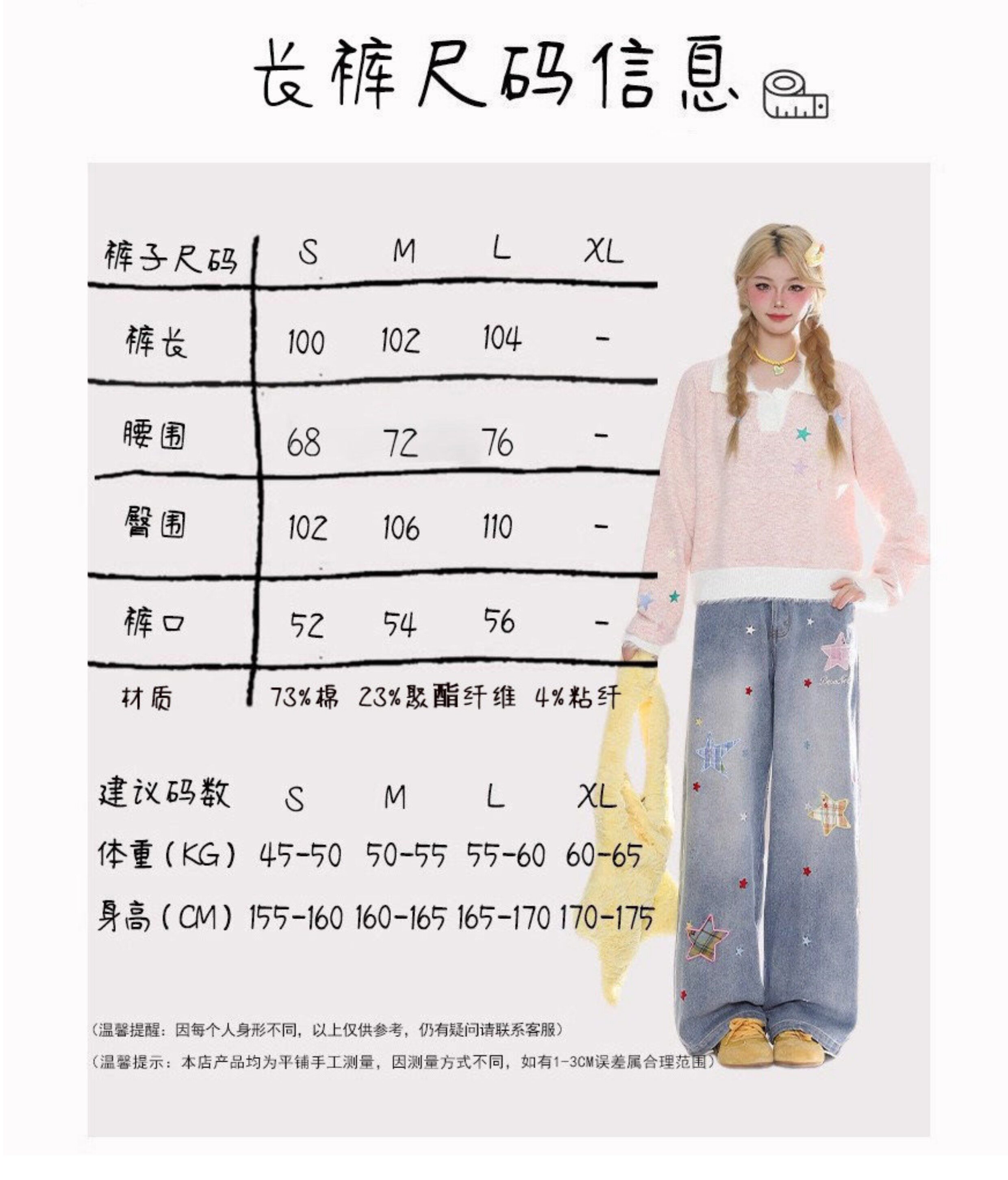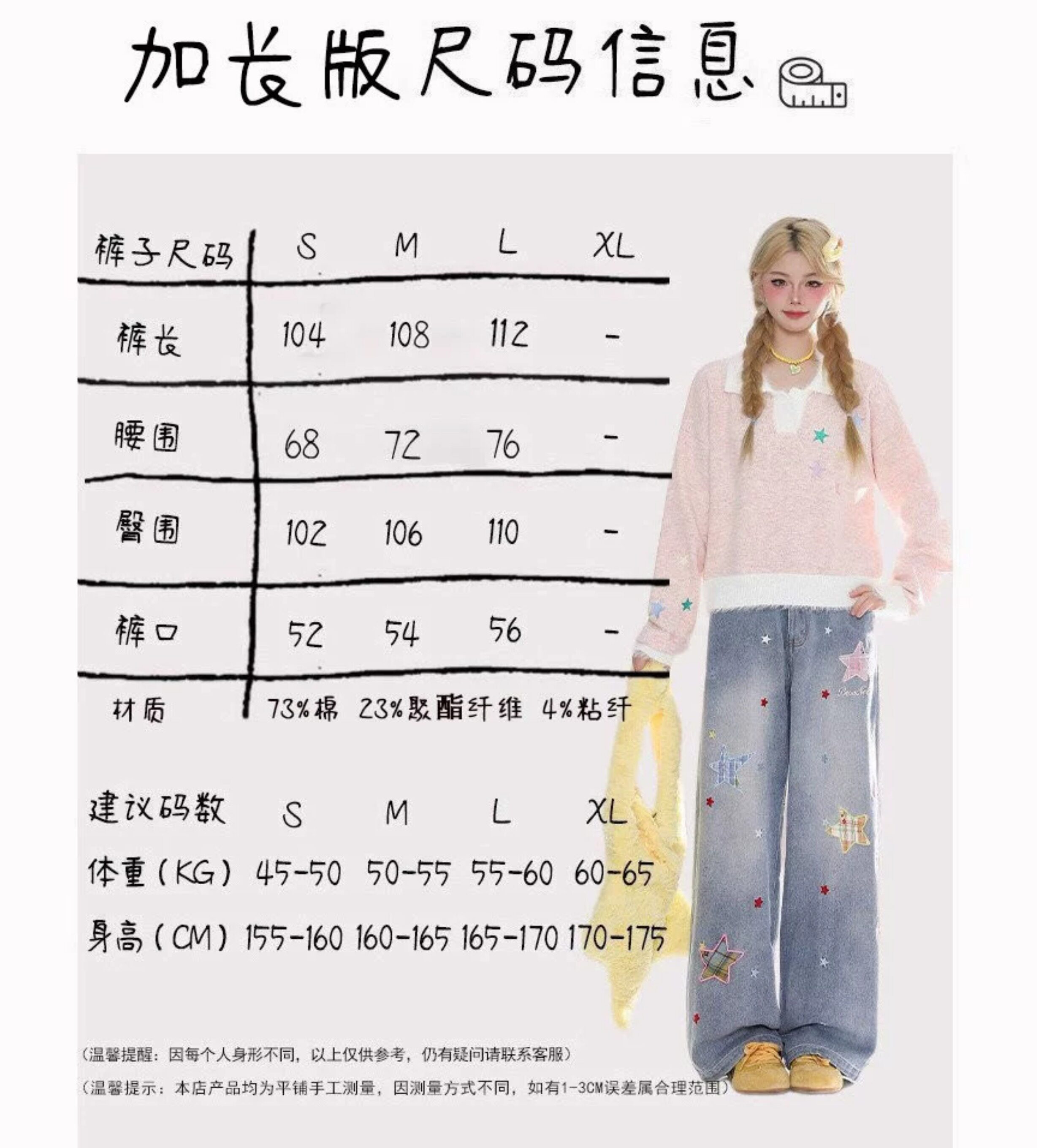 Rayohopp Star Patch Jeans for Women, Loose Fit, Slimming, Versatile Straight-Leg Pants, Wide-Leg Pants, Long Pants ins Trendy