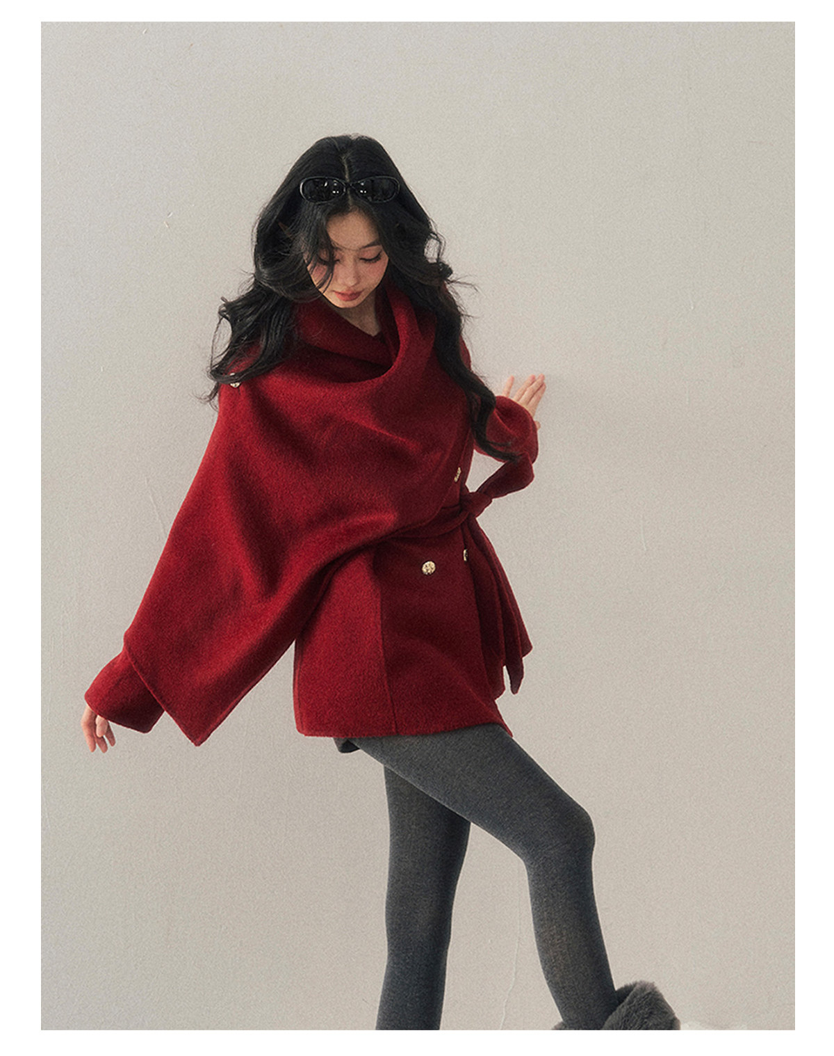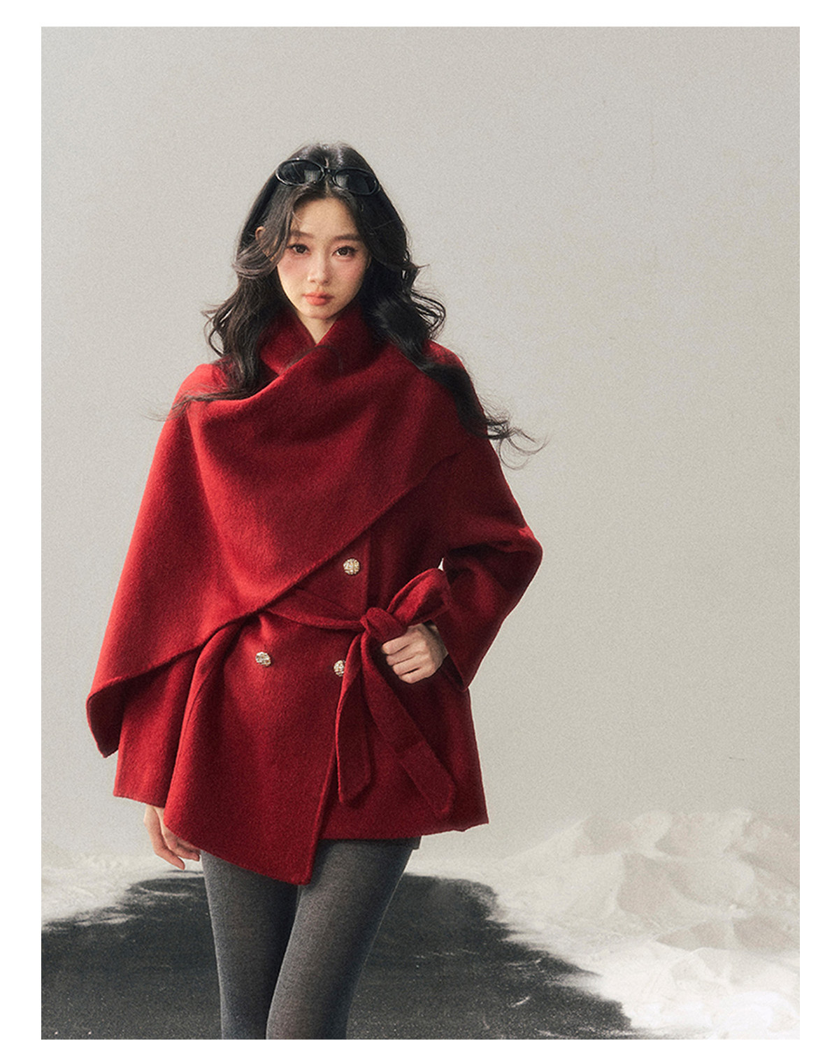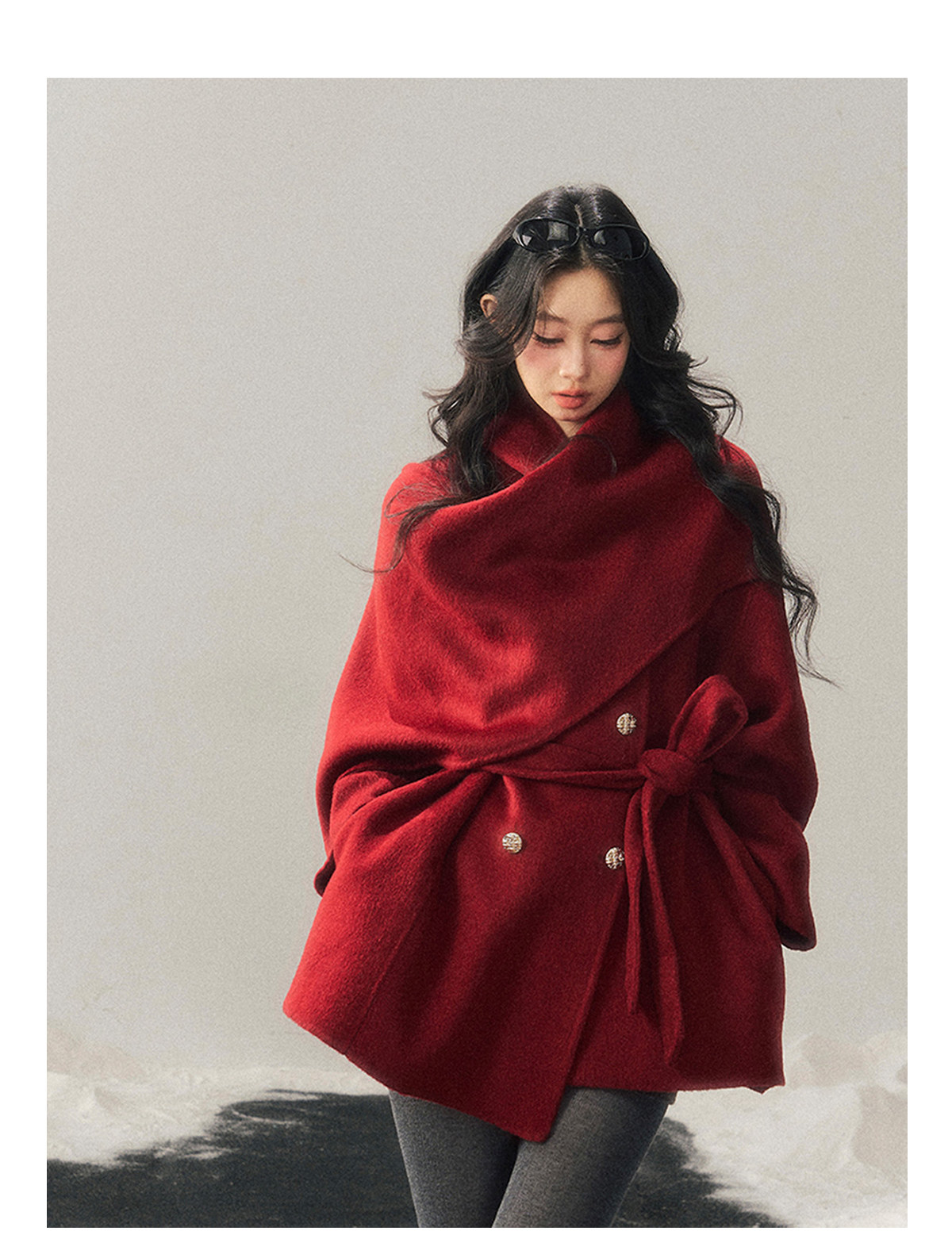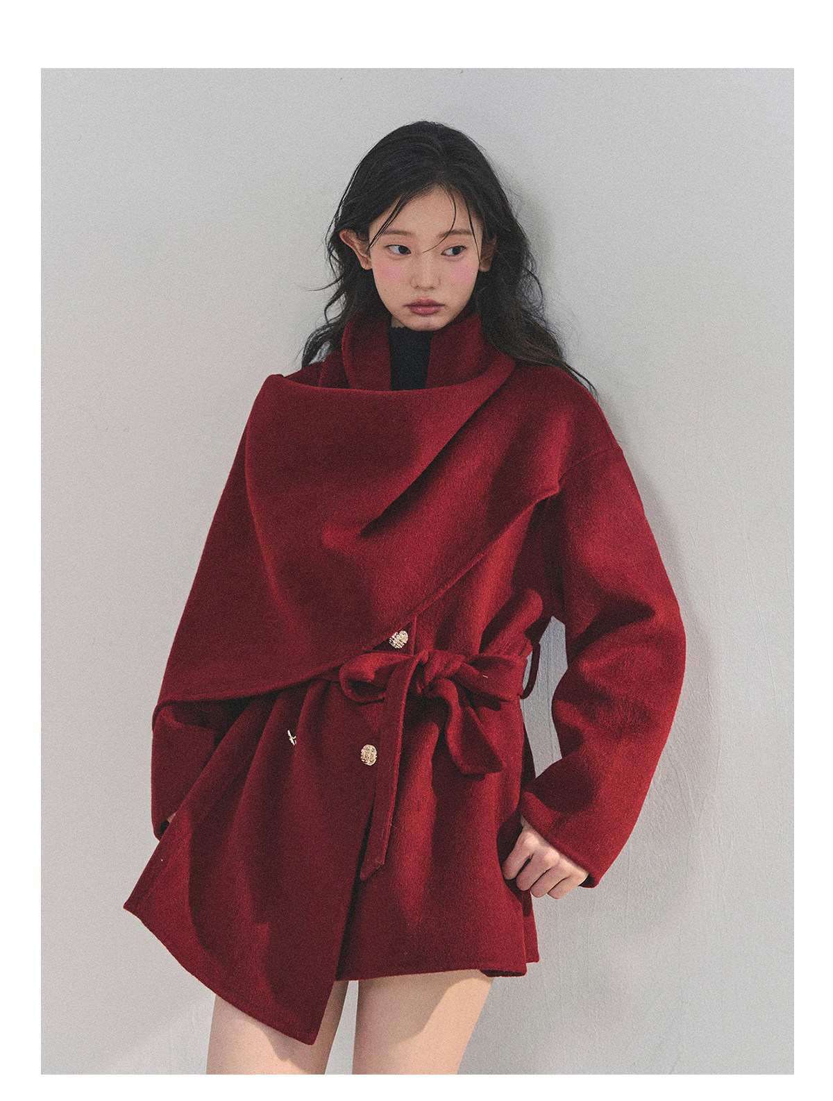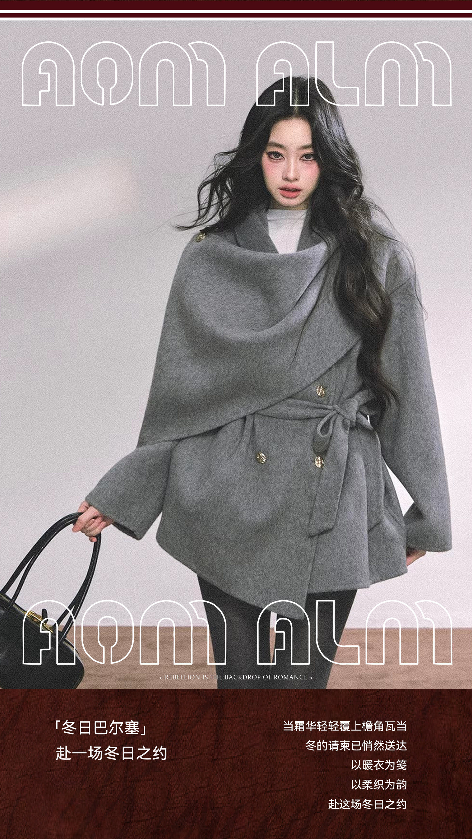Aomalm Shao Ye Yan "Winter Balce"% French British Style Woolen Coat for Women, Winter Loose Double-Sided Woolen Coat