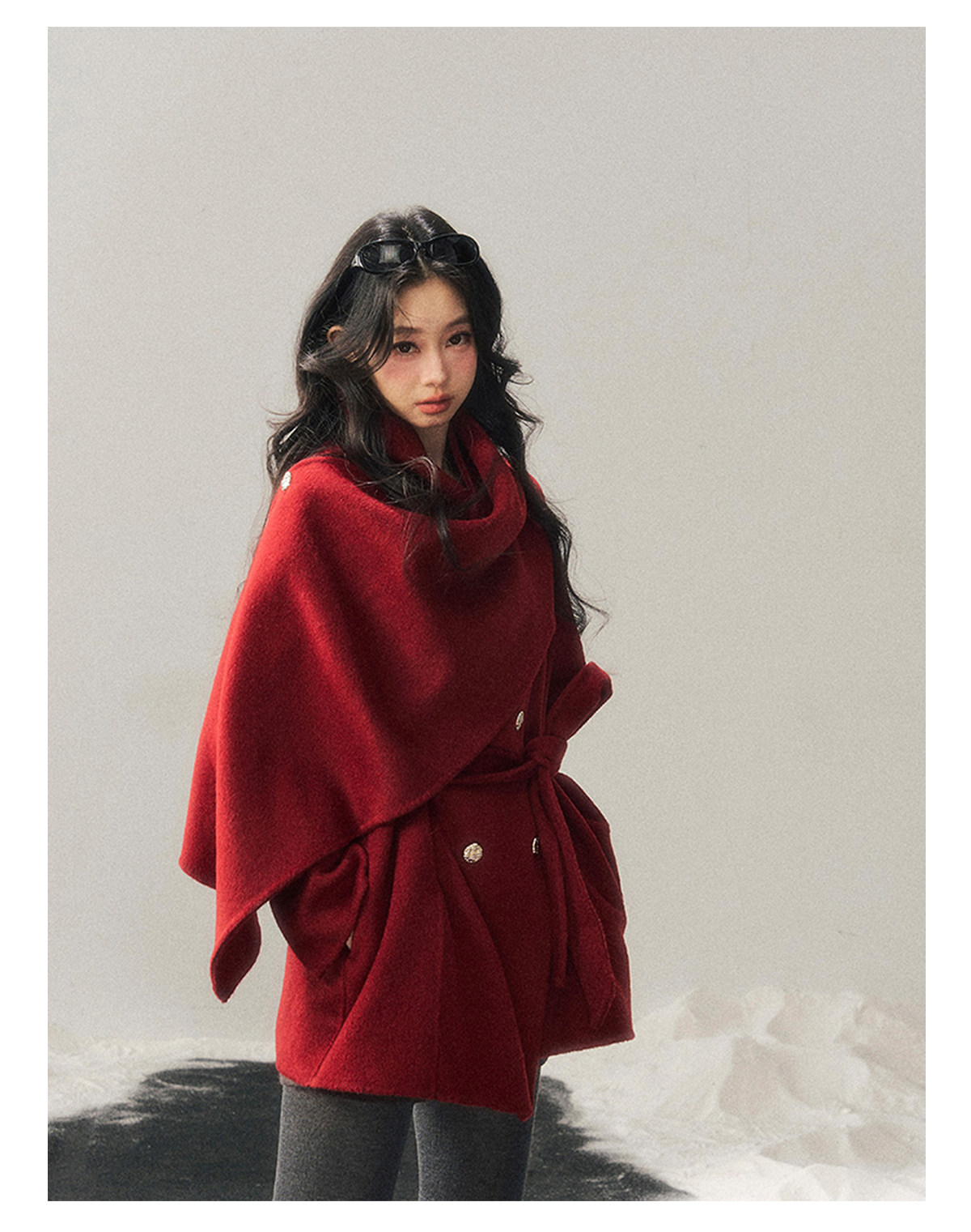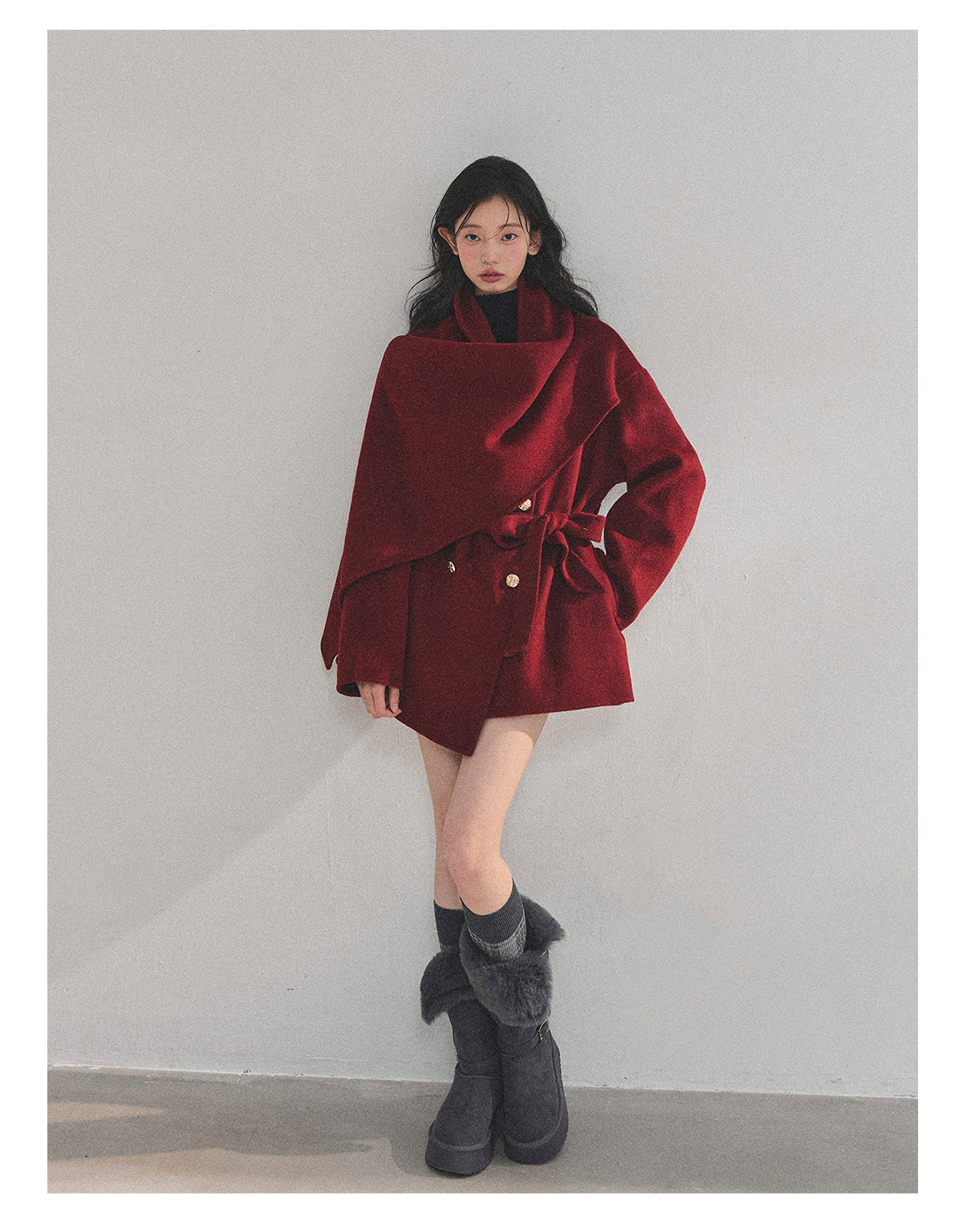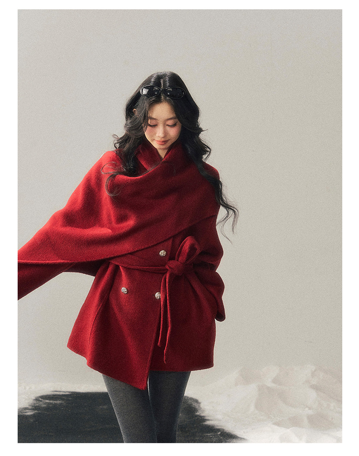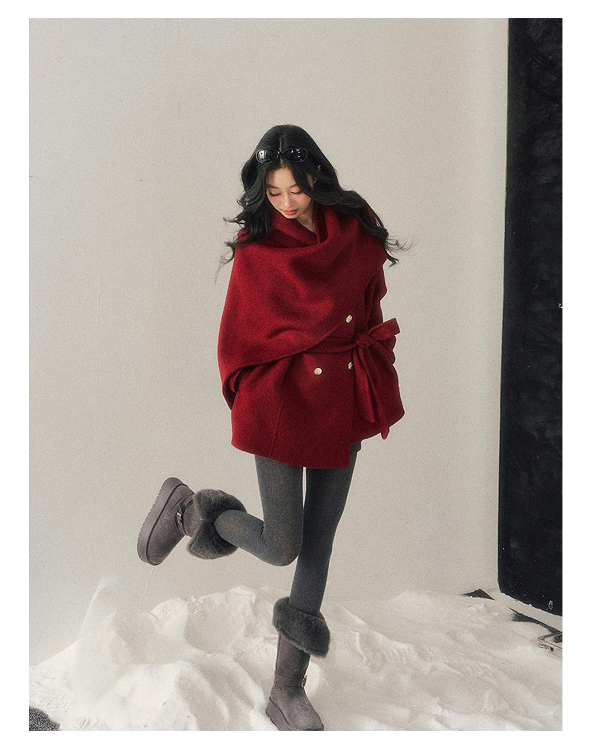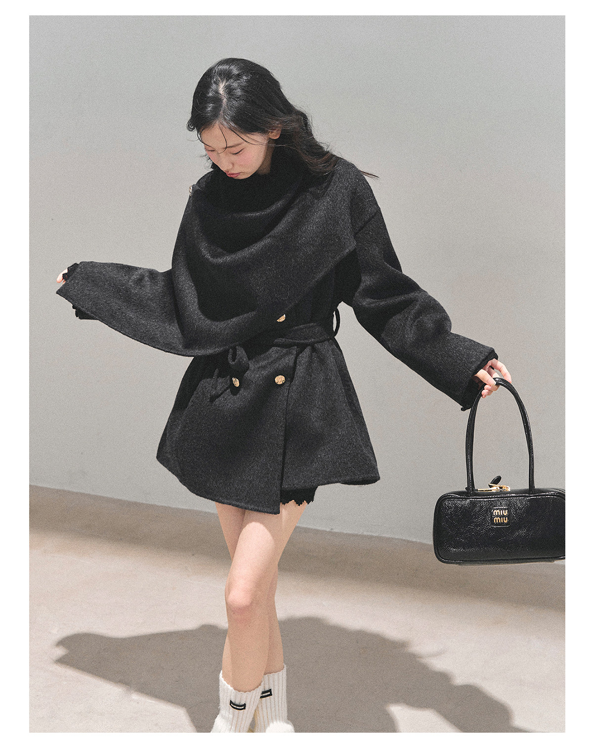 Aomalm Shao Ye Yan "Winter Balce"% French British Style Woolen Coat for Women, Winter Loose Double-Sided Woolen Coat