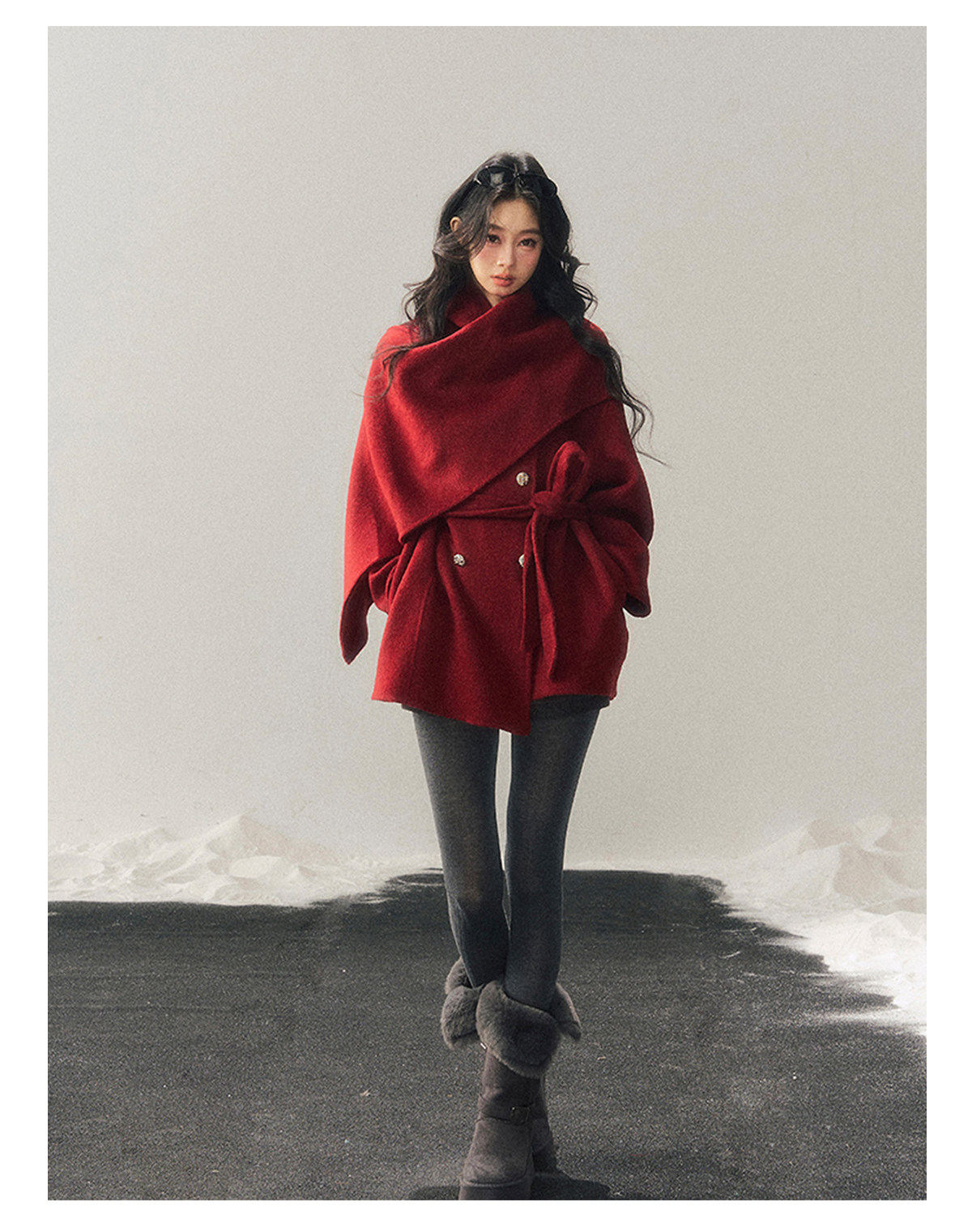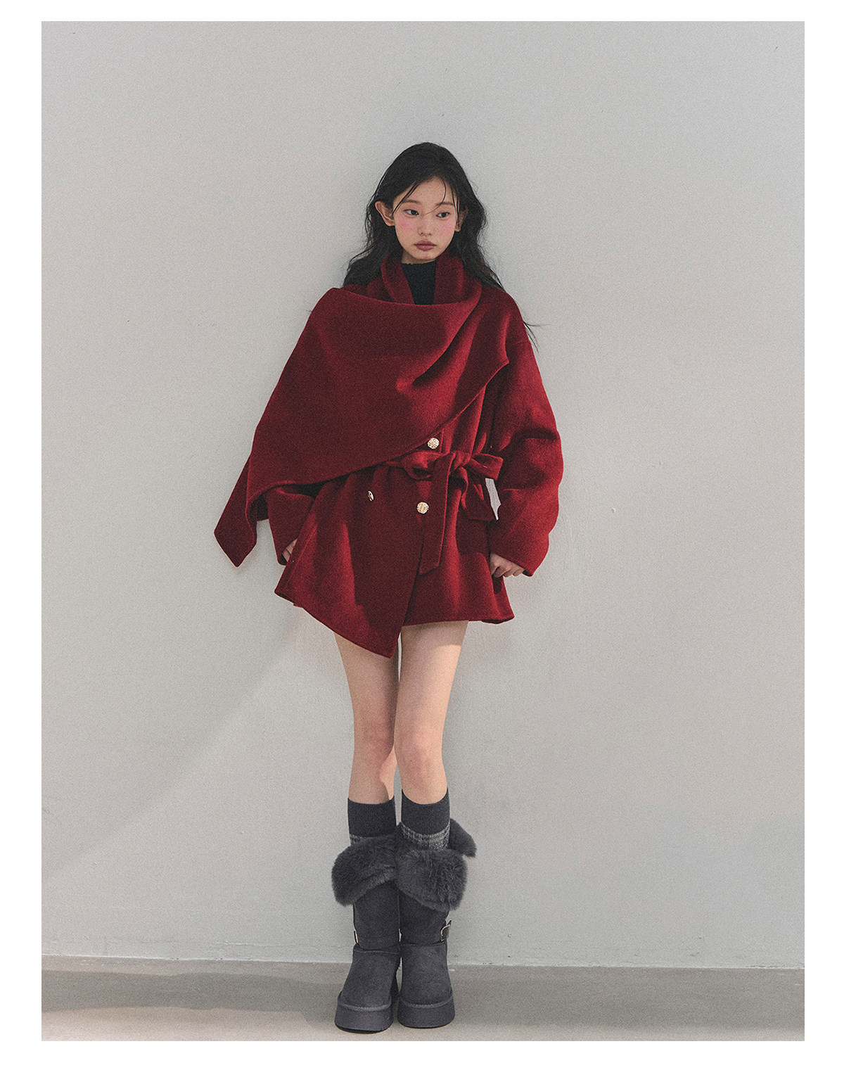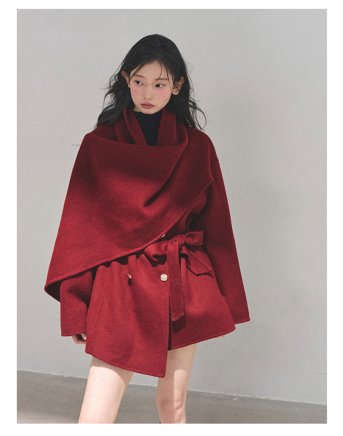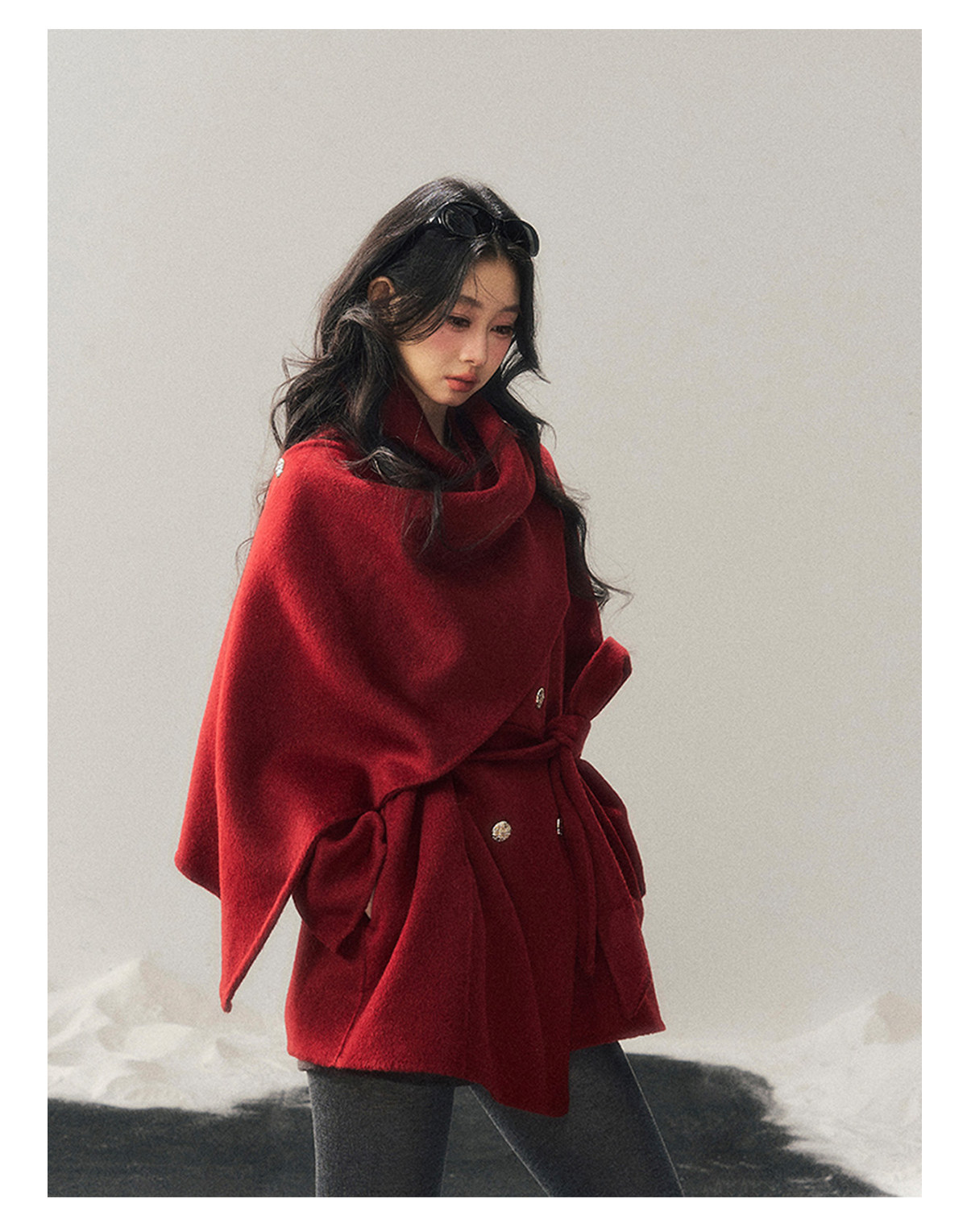 Aomalm Shao Ye Yan "Winter Balce"% French British Style Woolen Coat for Women, Winter Loose Double-Sided Woolen Coat