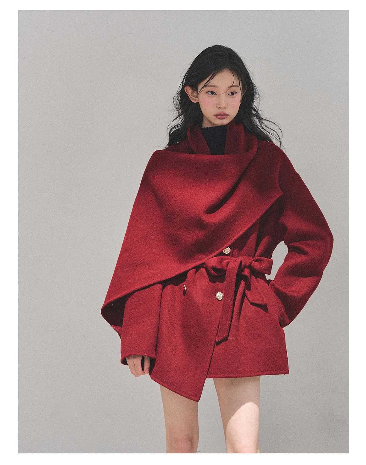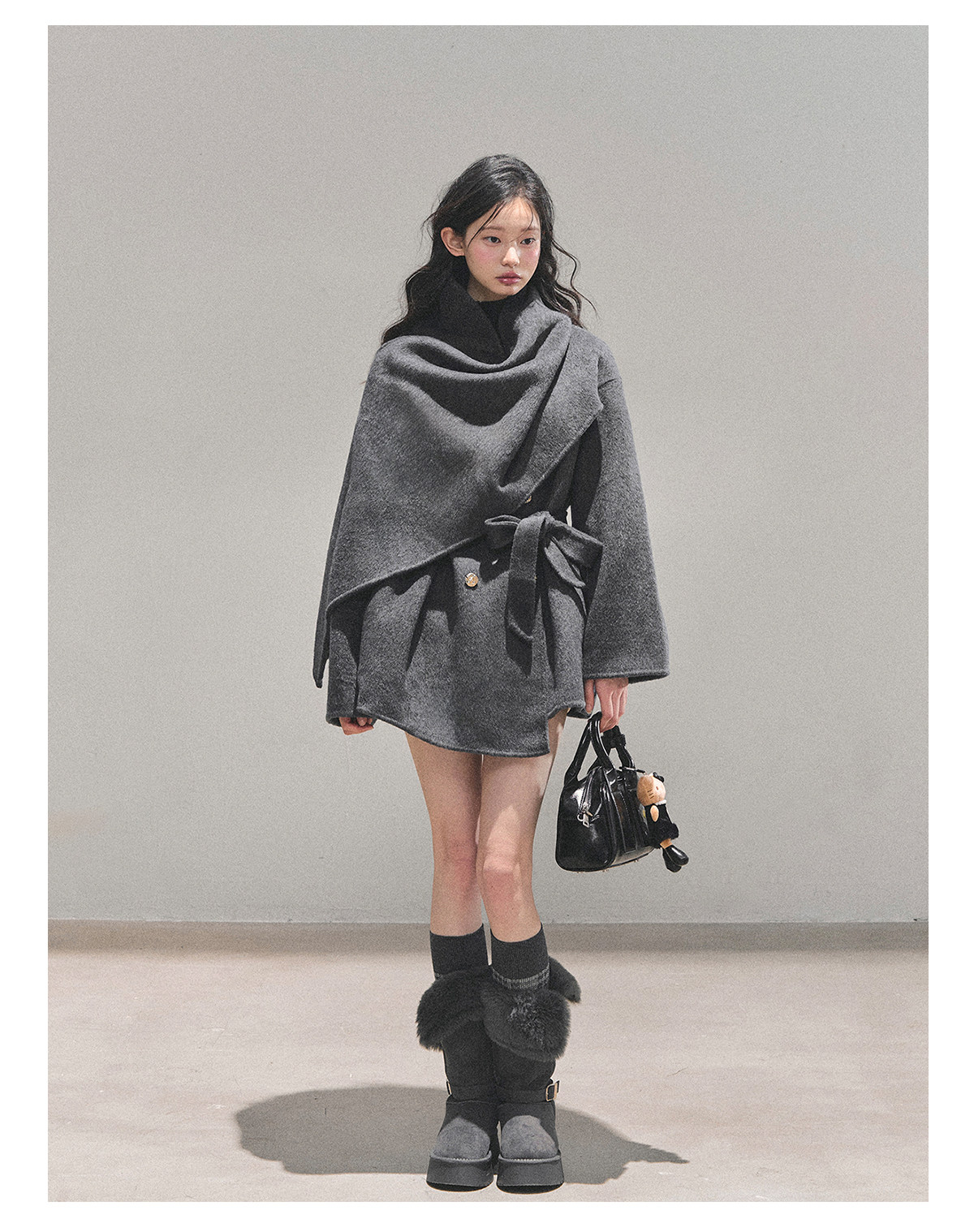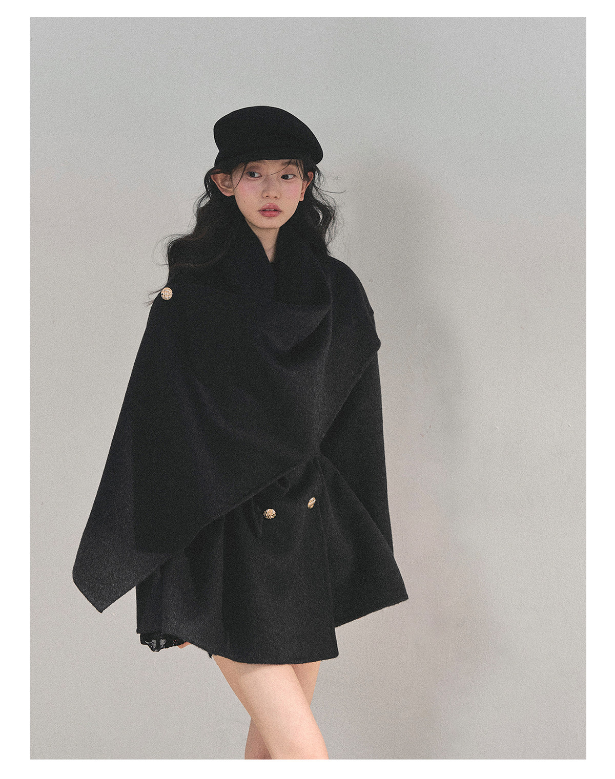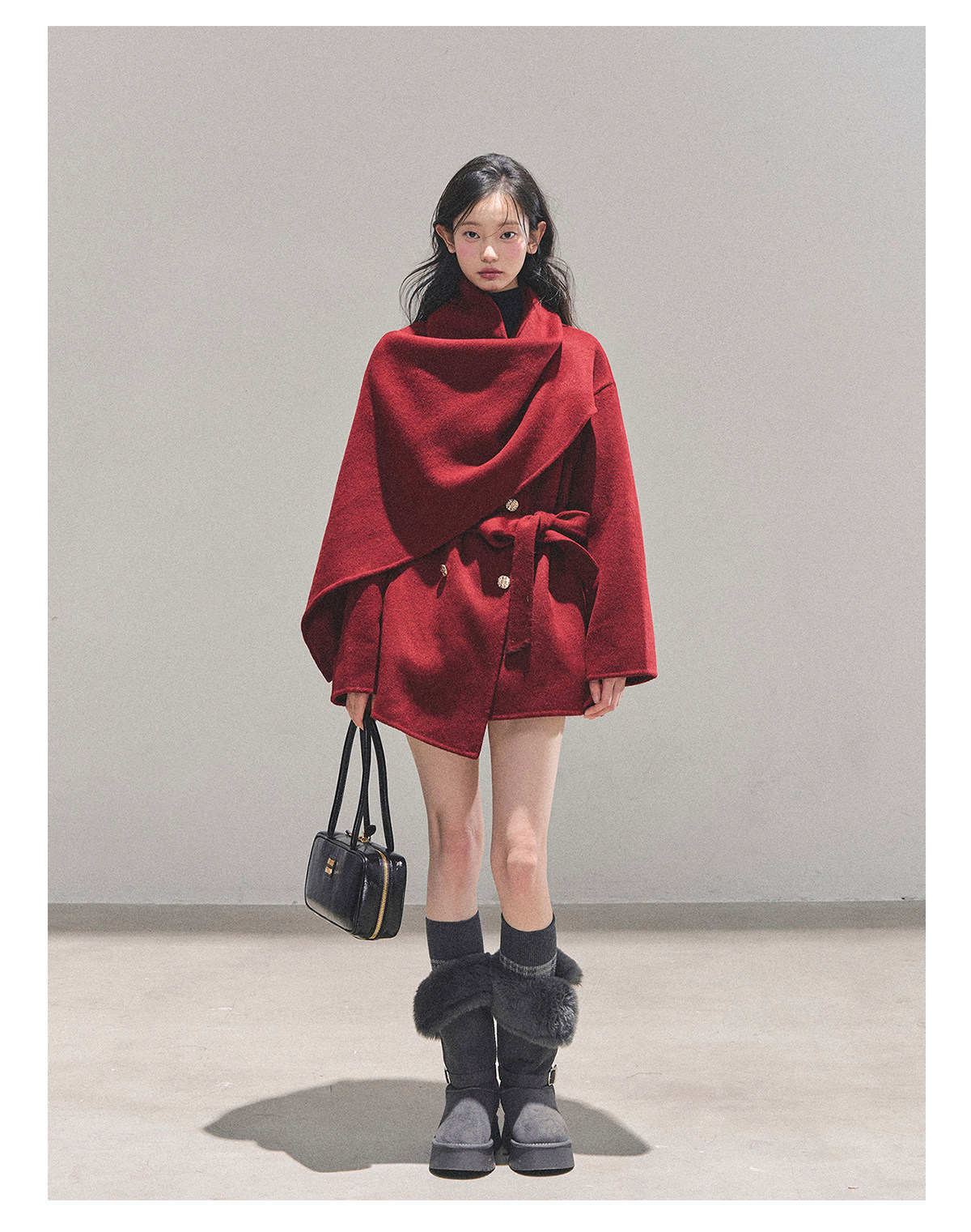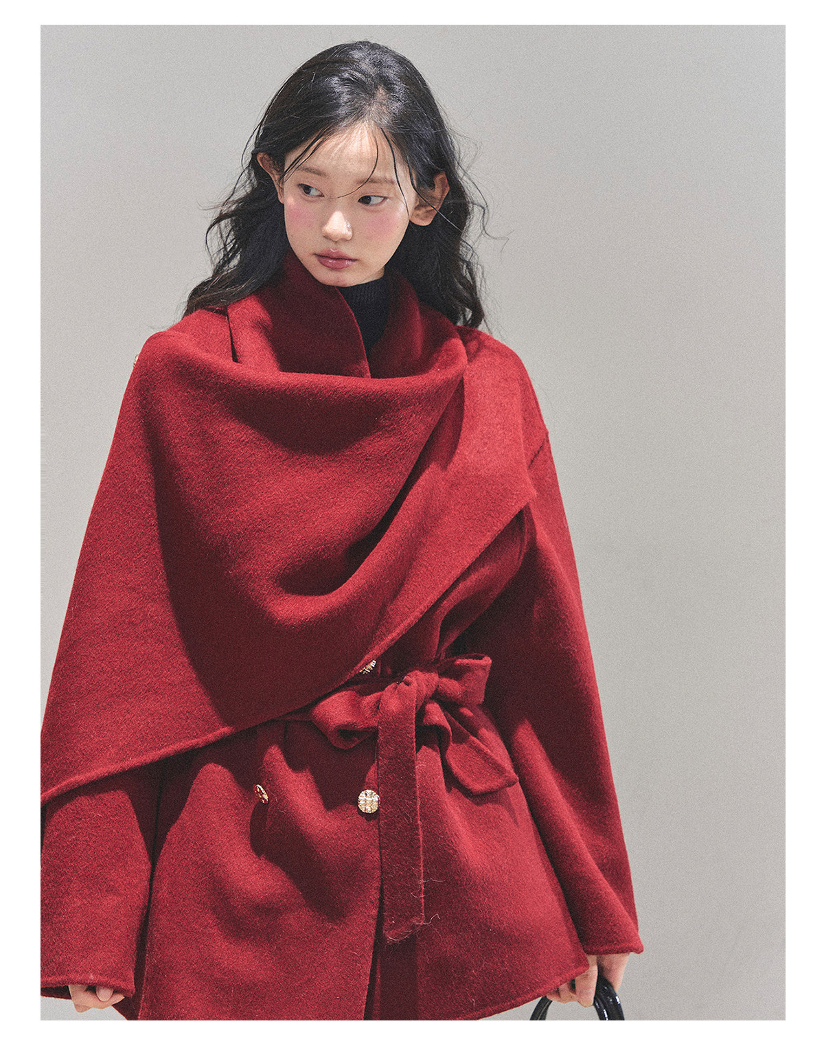 Aomalm Shao Ye Yan "Winter Balce"% French British Style Woolen Coat for Women, Winter Loose Double-Sided Woolen Coat