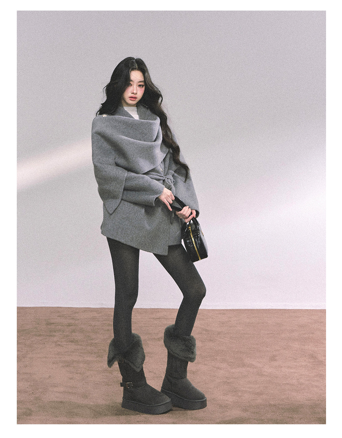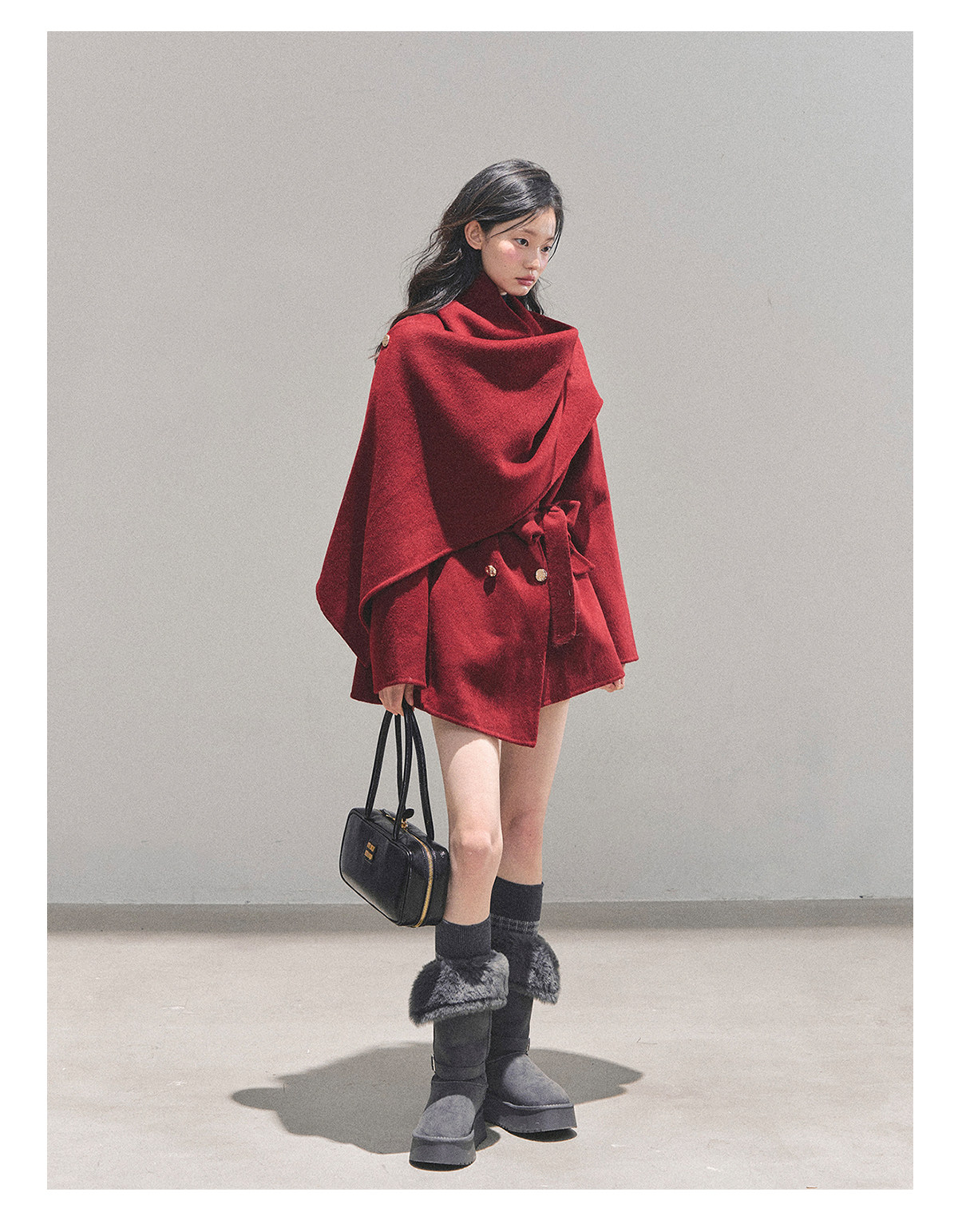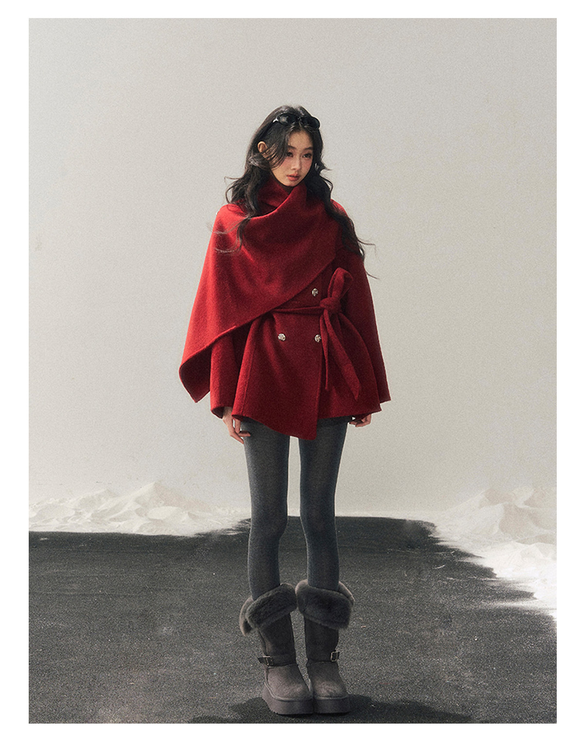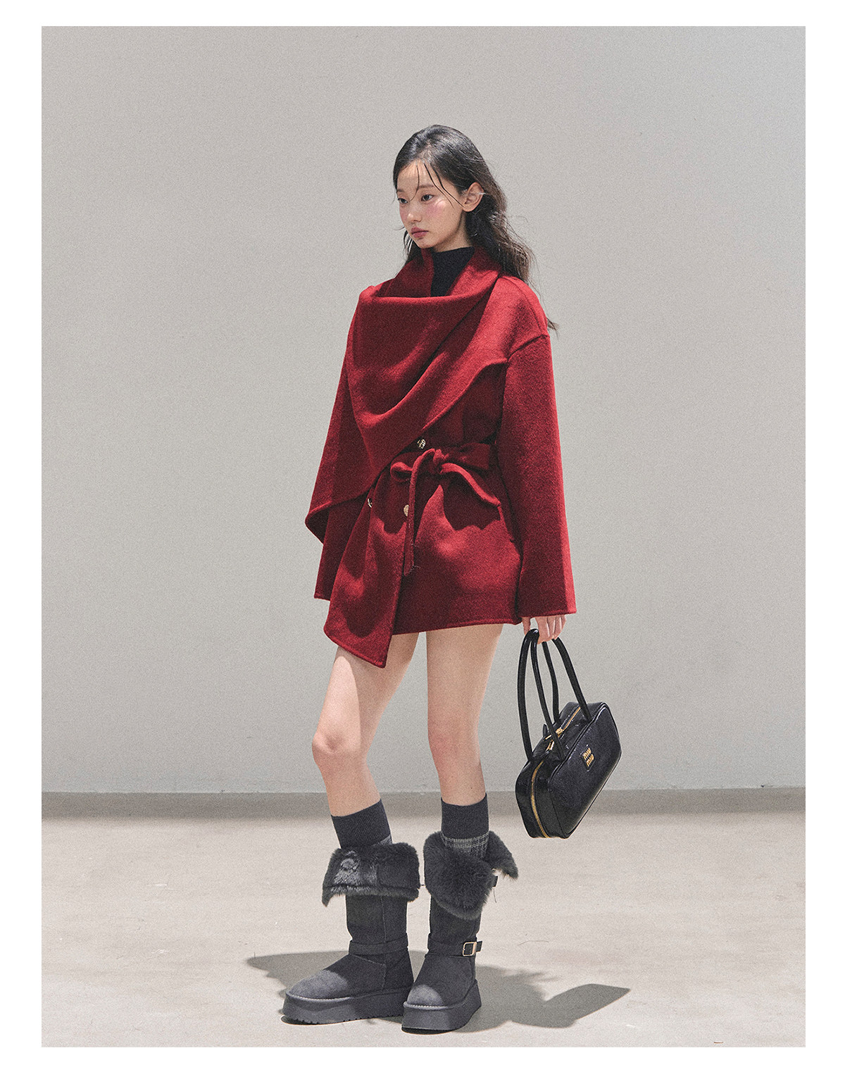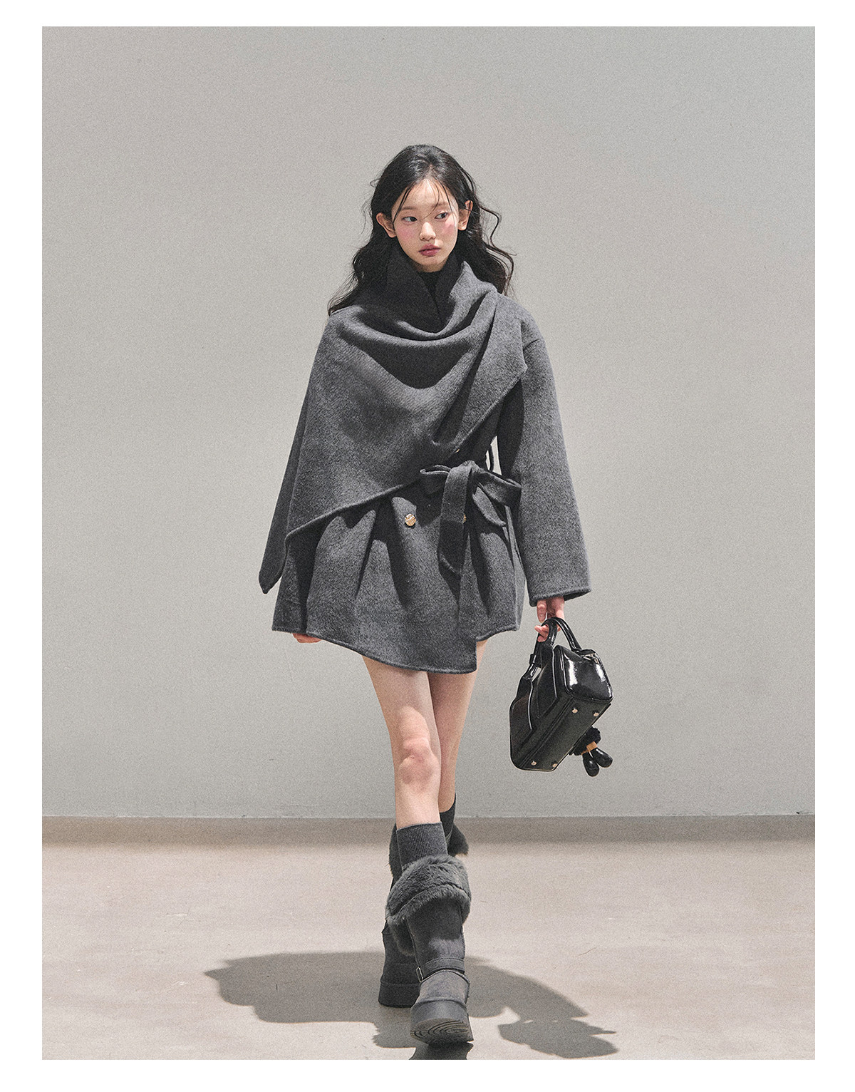 Aomalm Shao Ye Yan "Winter Balce"% French British Style Woolen Coat for Women, Winter Loose Double-Sided Woolen Coat