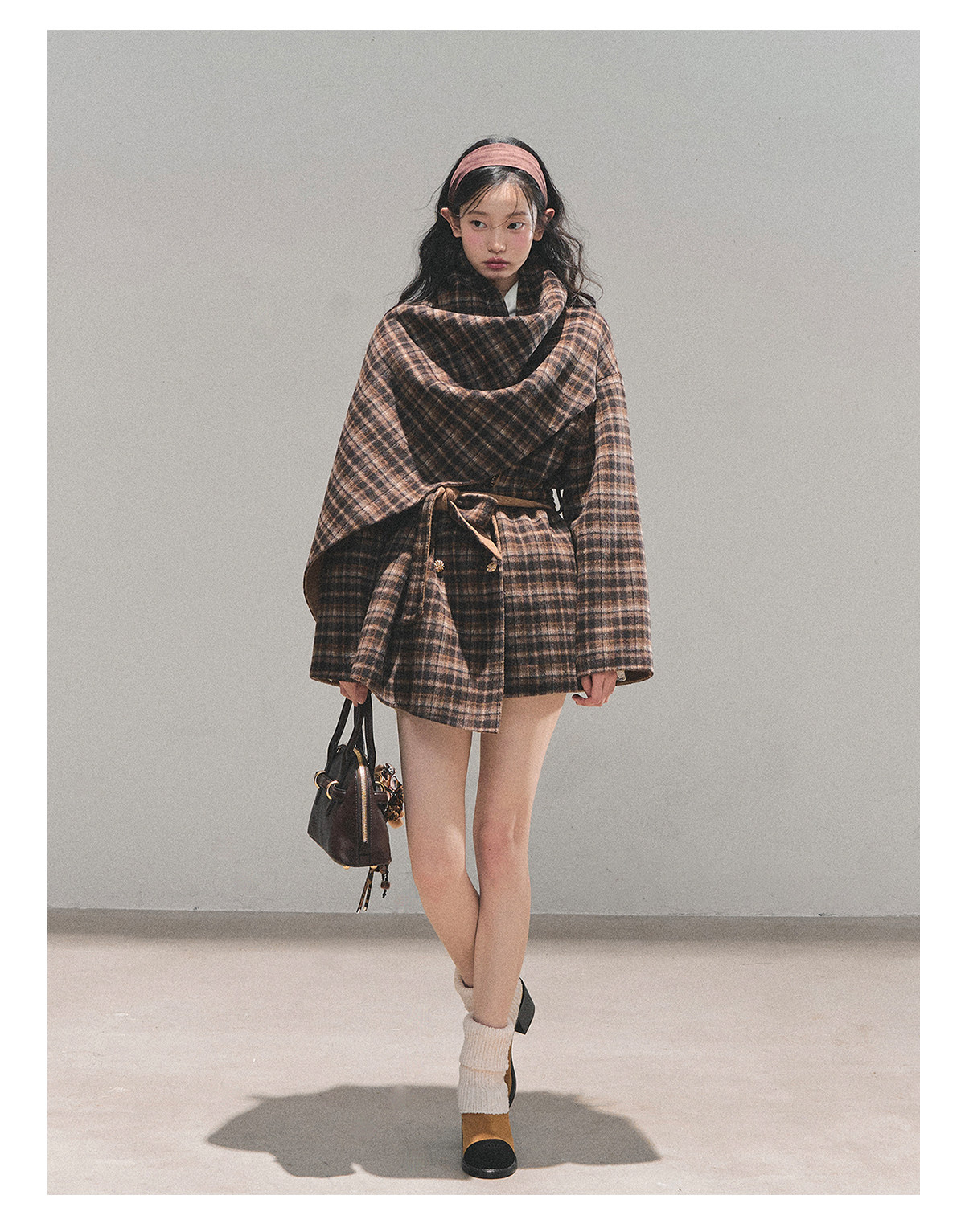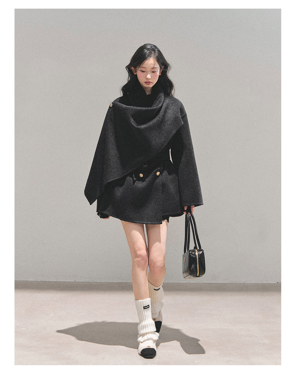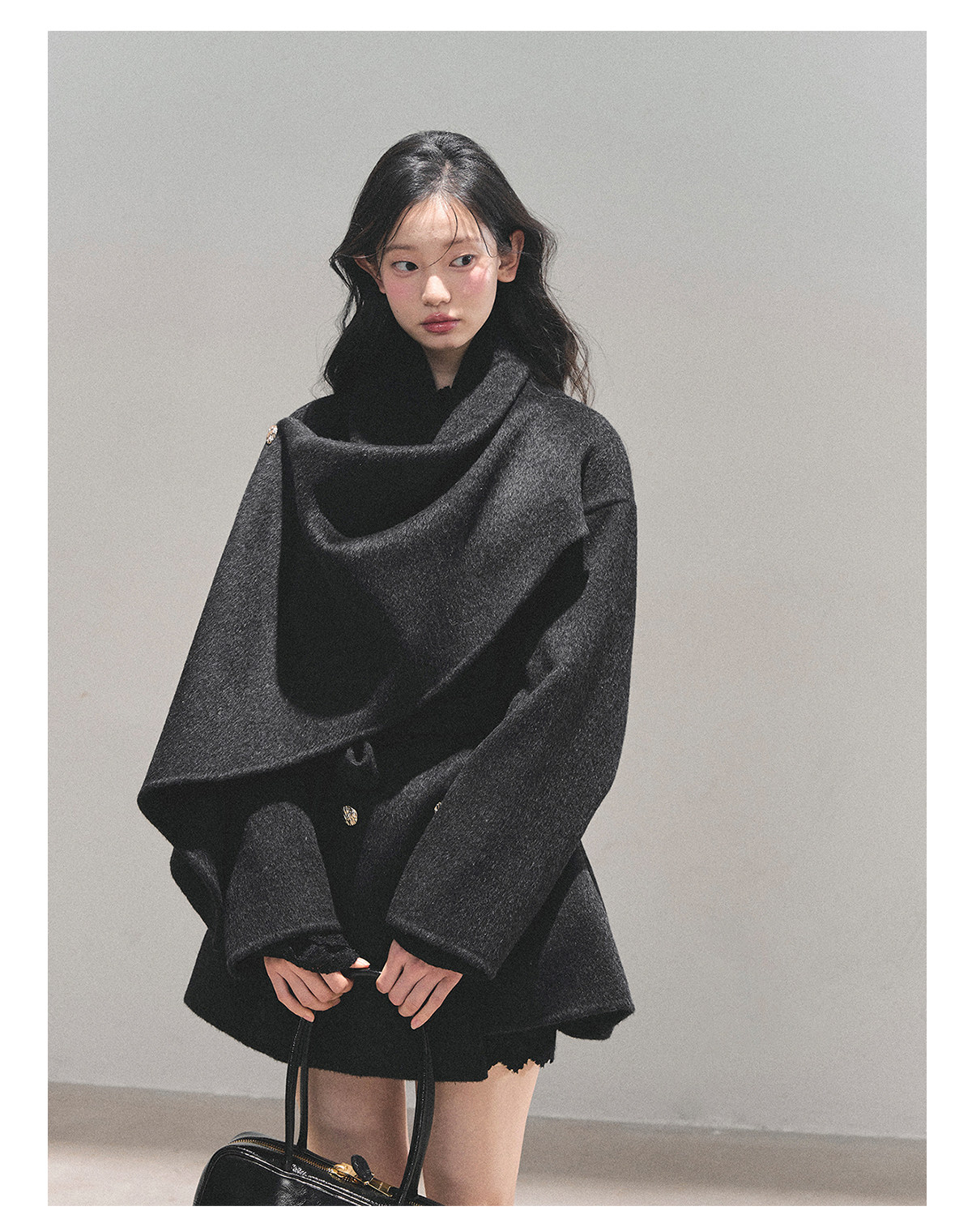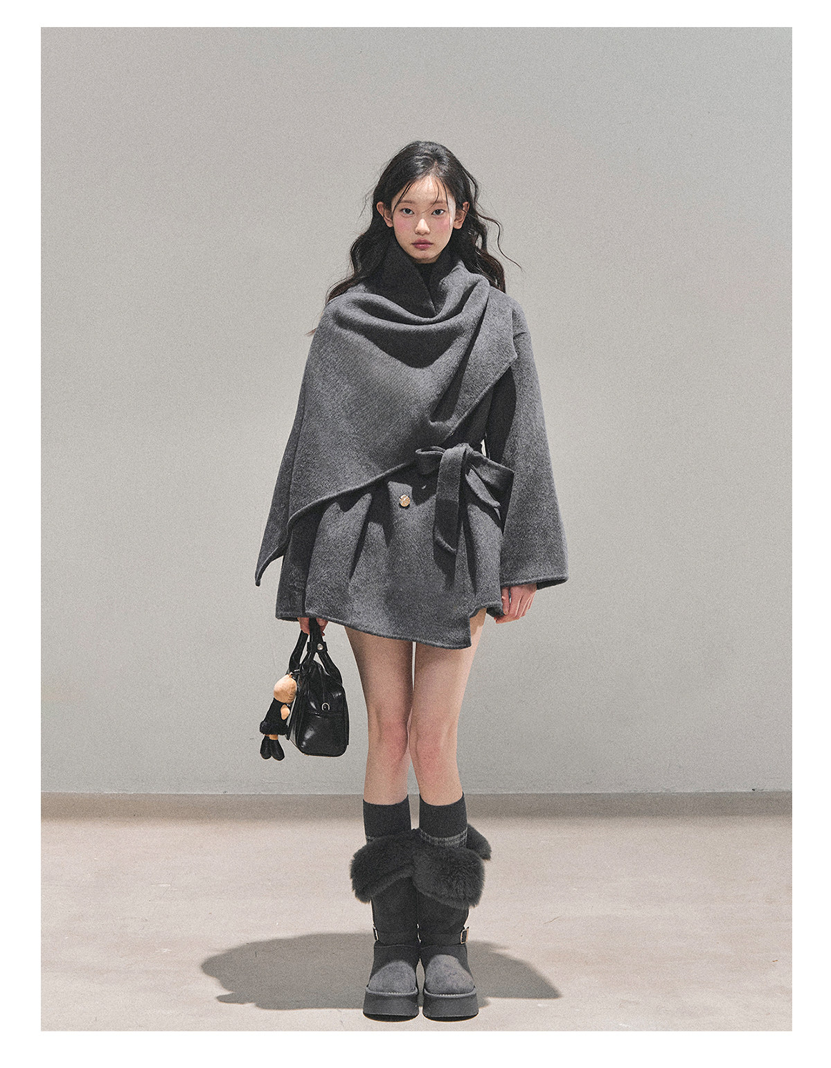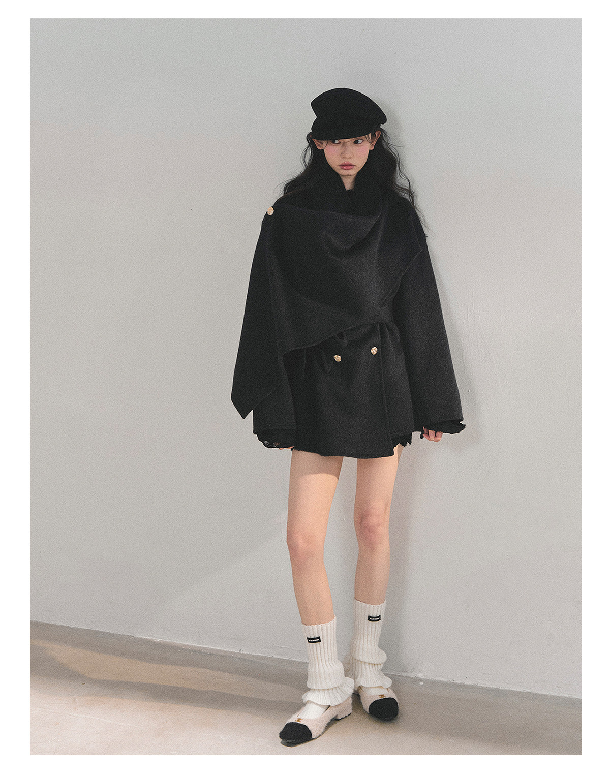 Aomalm Shao Ye Yan "Winter Balce"% French British Style Woolen Coat for Women, Winter Loose Double-Sided Woolen Coat