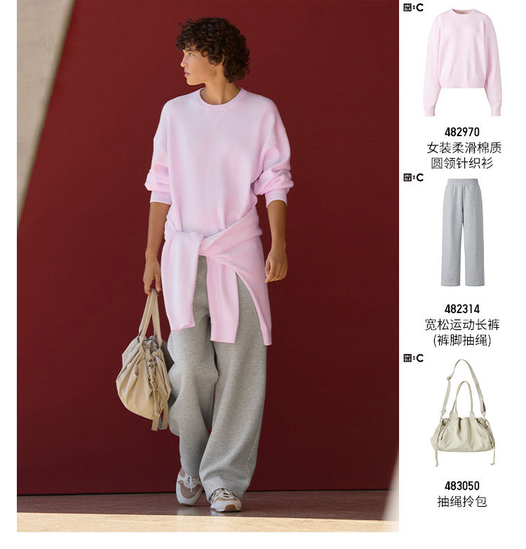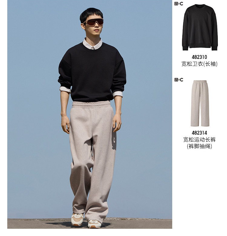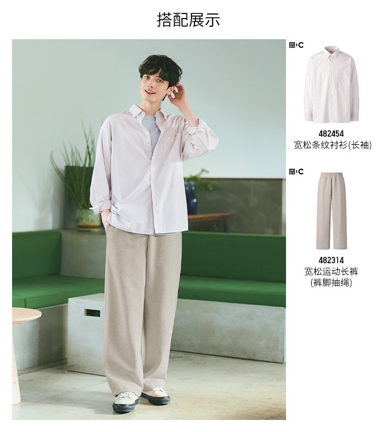 Regular Uniqlo Collaboration Style Unisex Loose-Fit Sports Pants with Drawstring Cuffs 482314