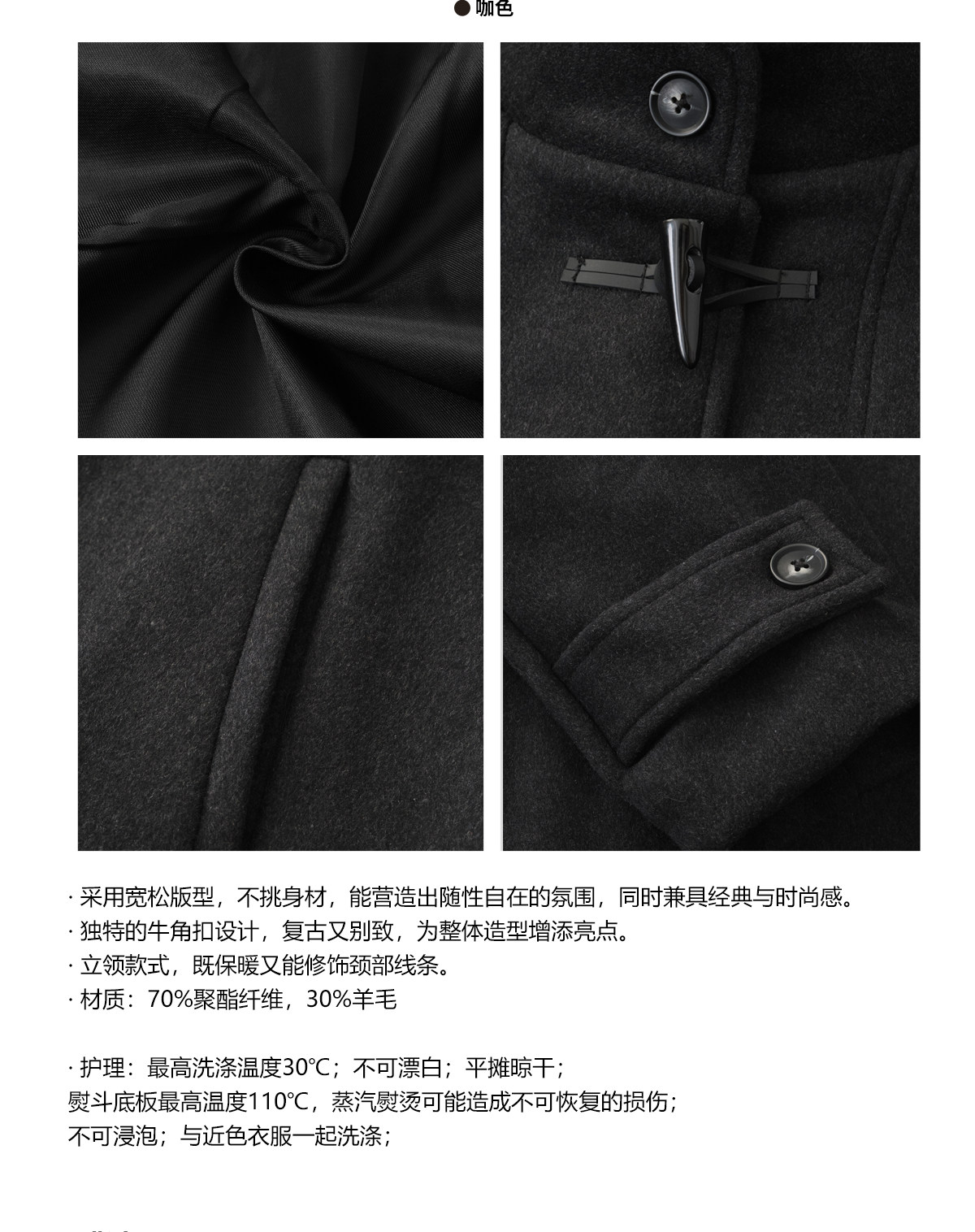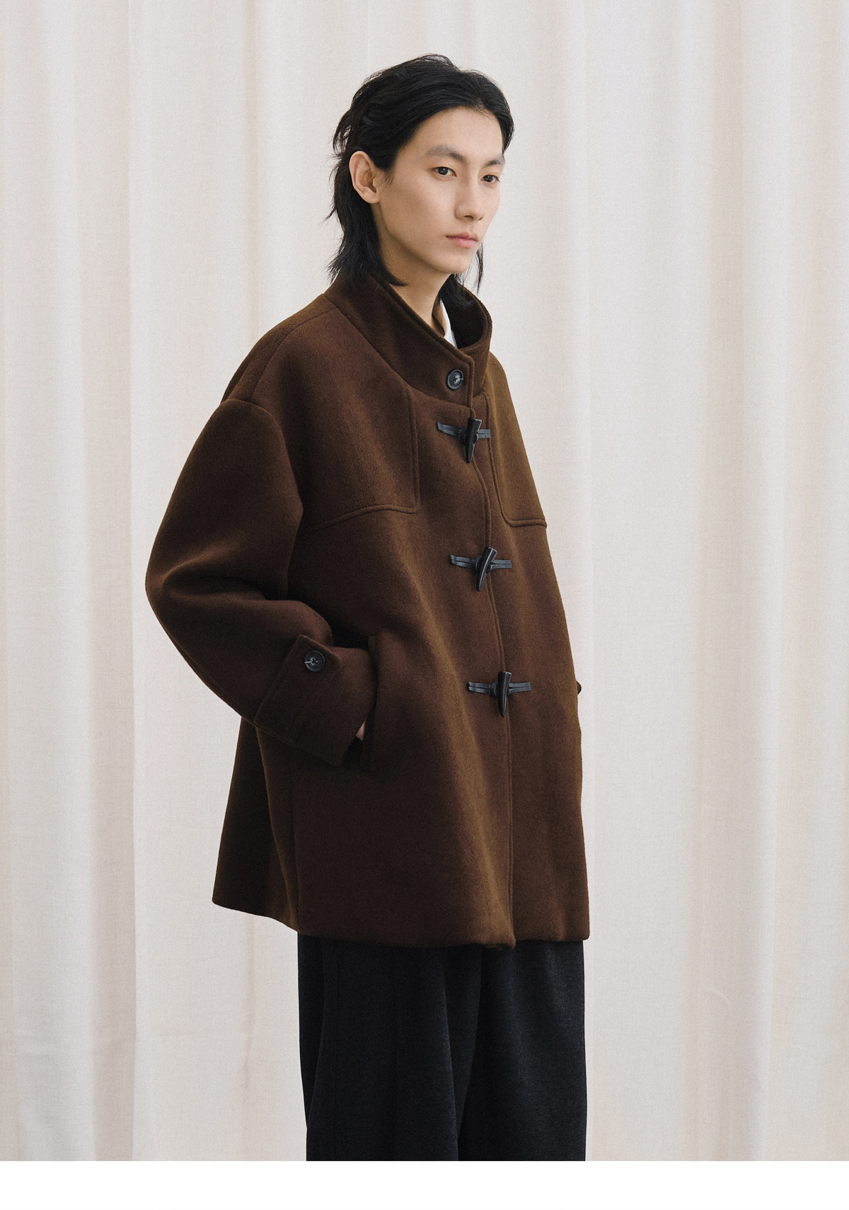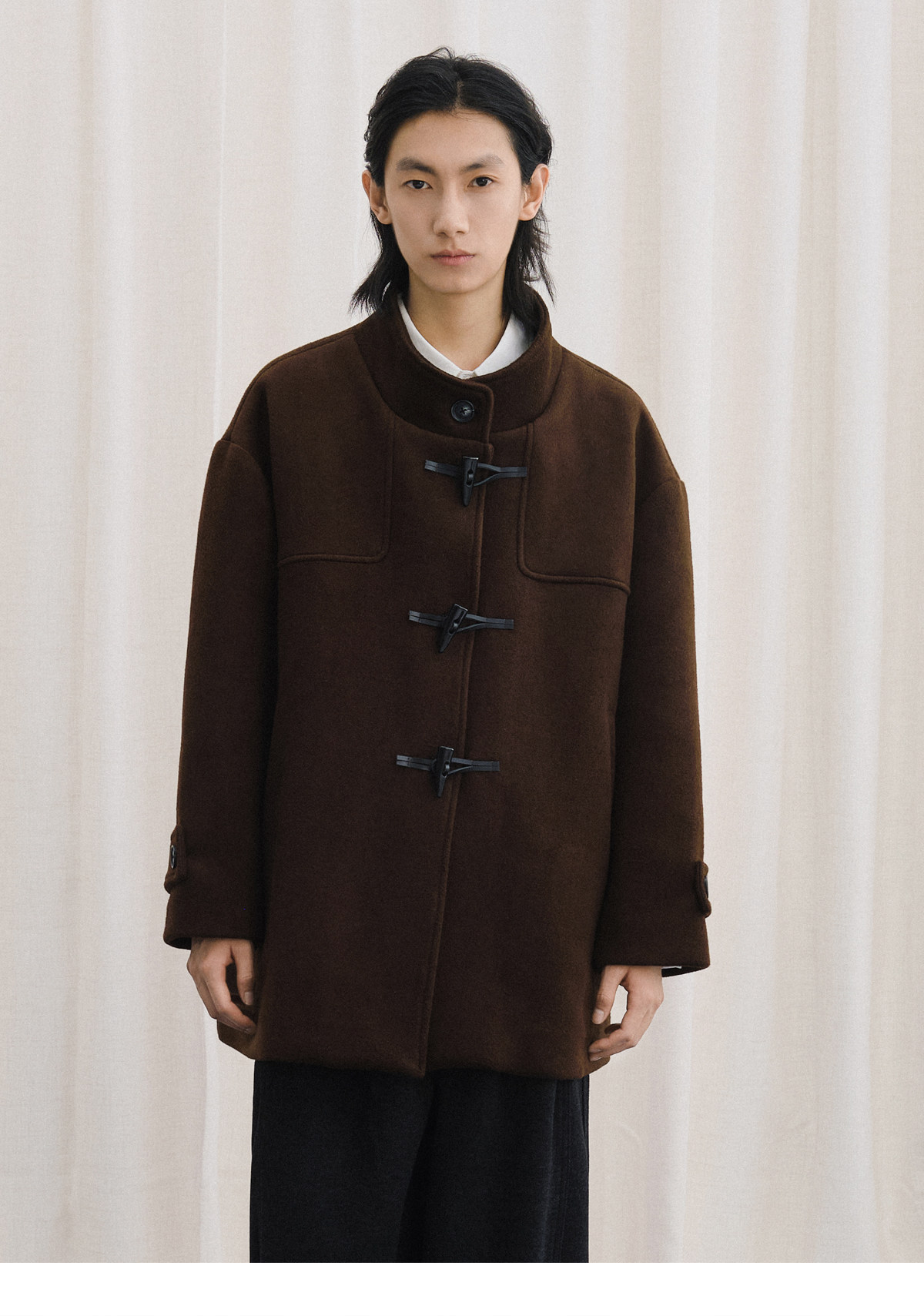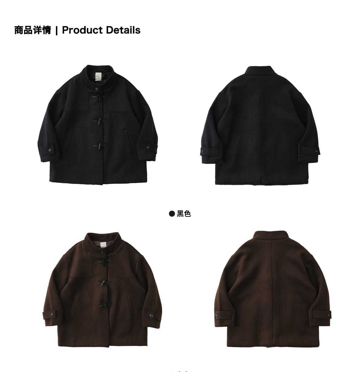 Livingtown Retro Japanese-Style Autumn and Winter Toggle Button Stand Collar Woolen Coat Loose Warm Woolen Overcoat