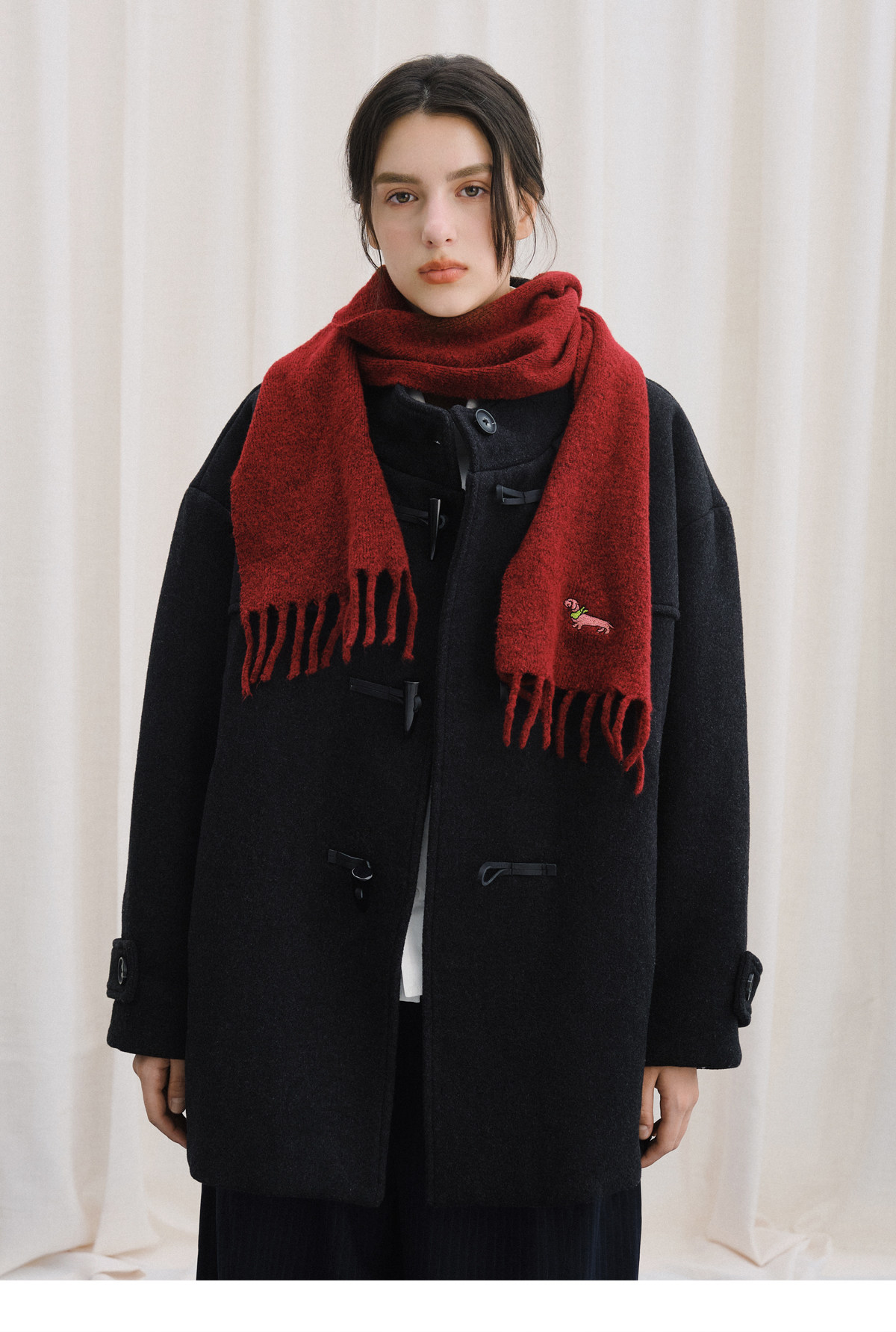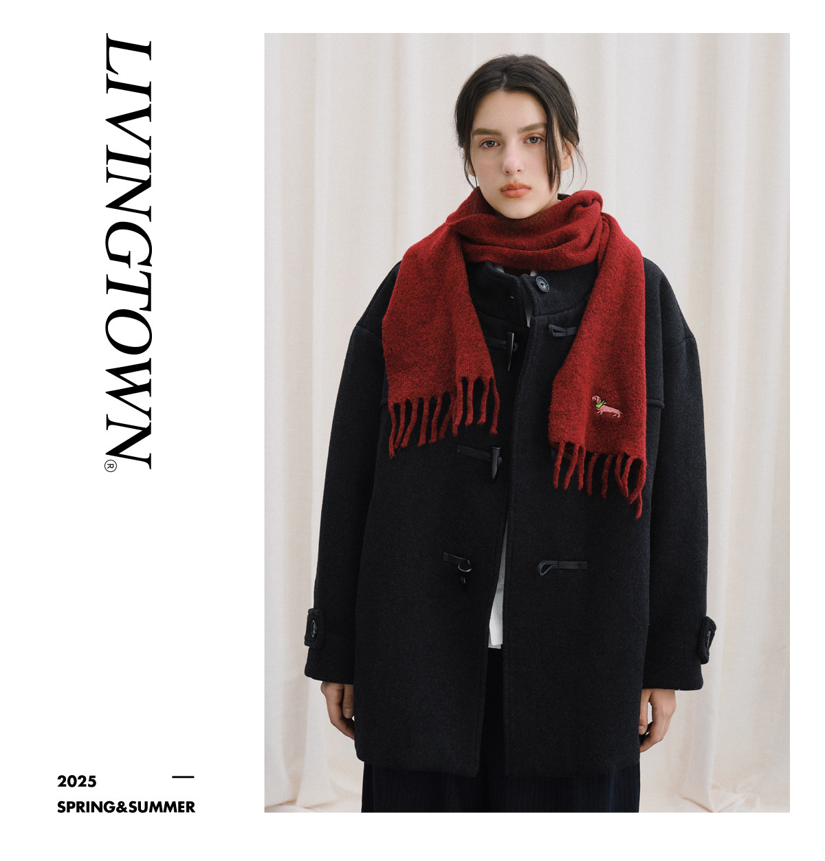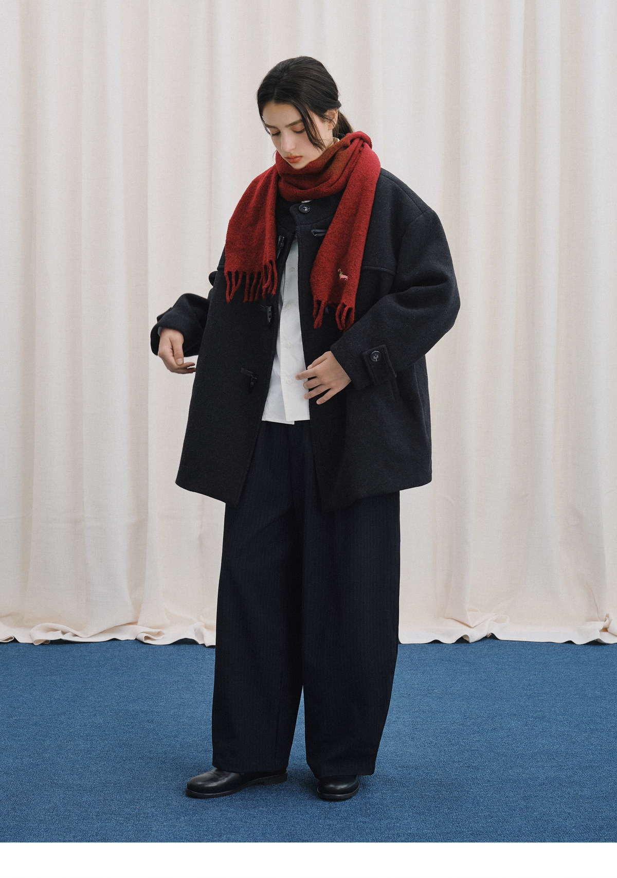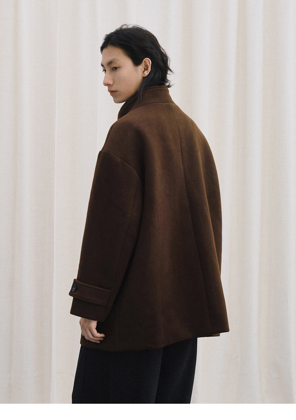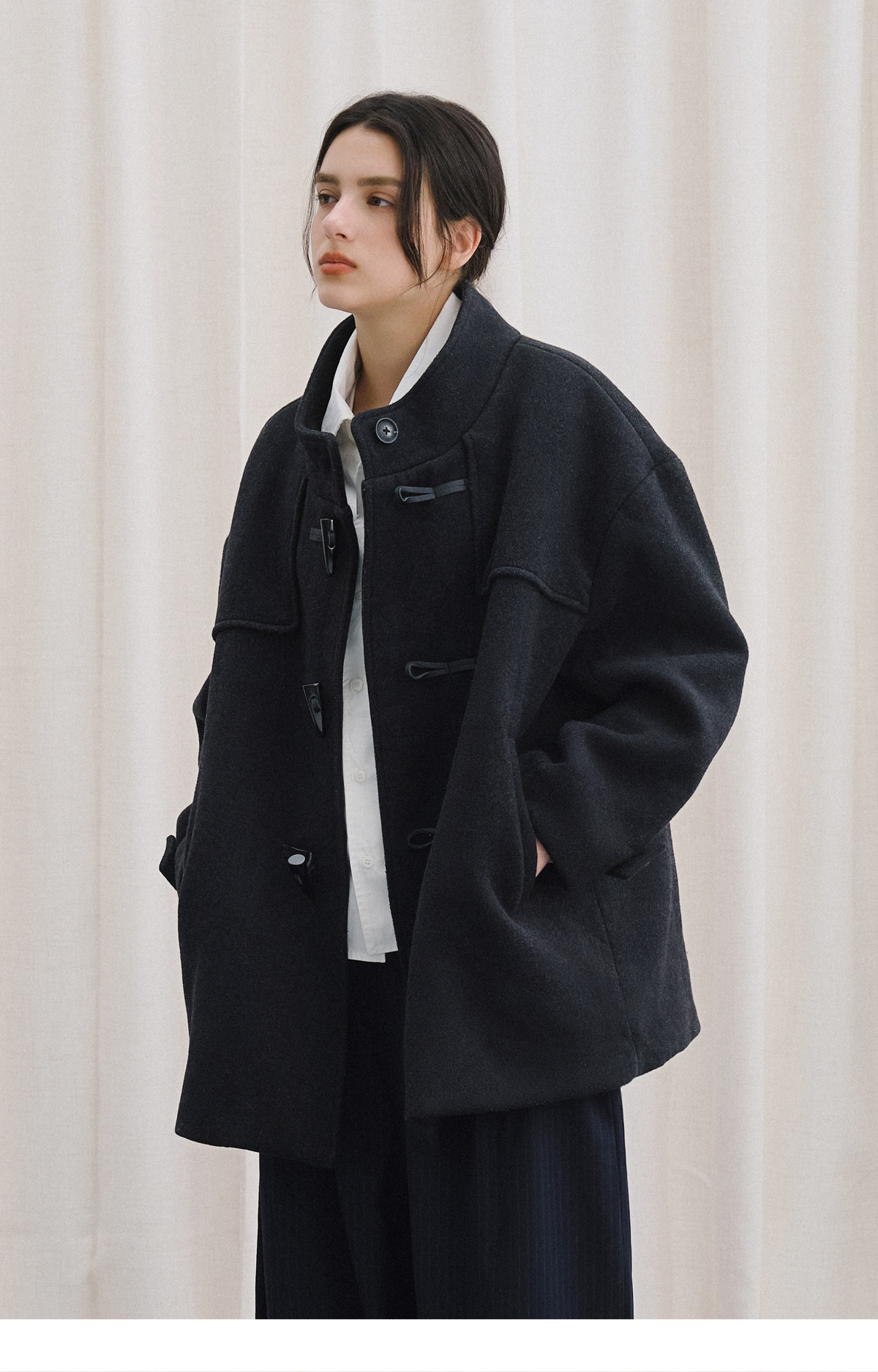 Livingtown Retro Japanese-Style Autumn and Winter Toggle Button Stand Collar Woolen Coat Loose Warm Woolen Overcoat