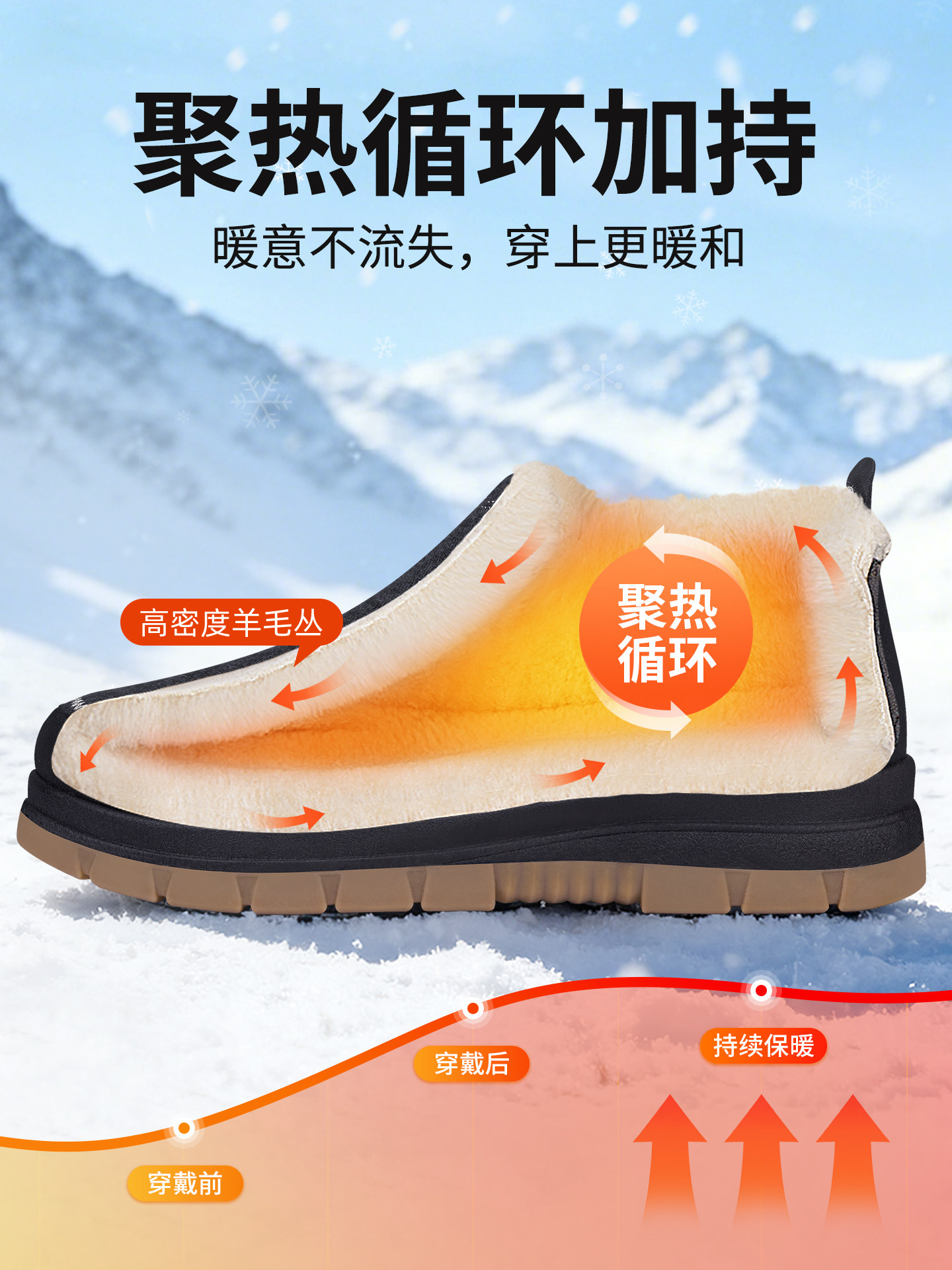 Old Beijing Cloth Shoes, New Winter Model for Men, Fleece-Lined and Thickened with Wool, Warm Cotton Shoes, Non-Slip, Suitable for Middle-Aged and Elderly Fathers