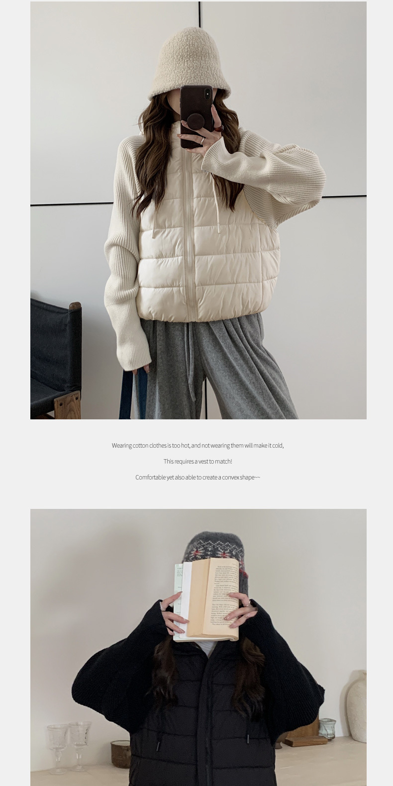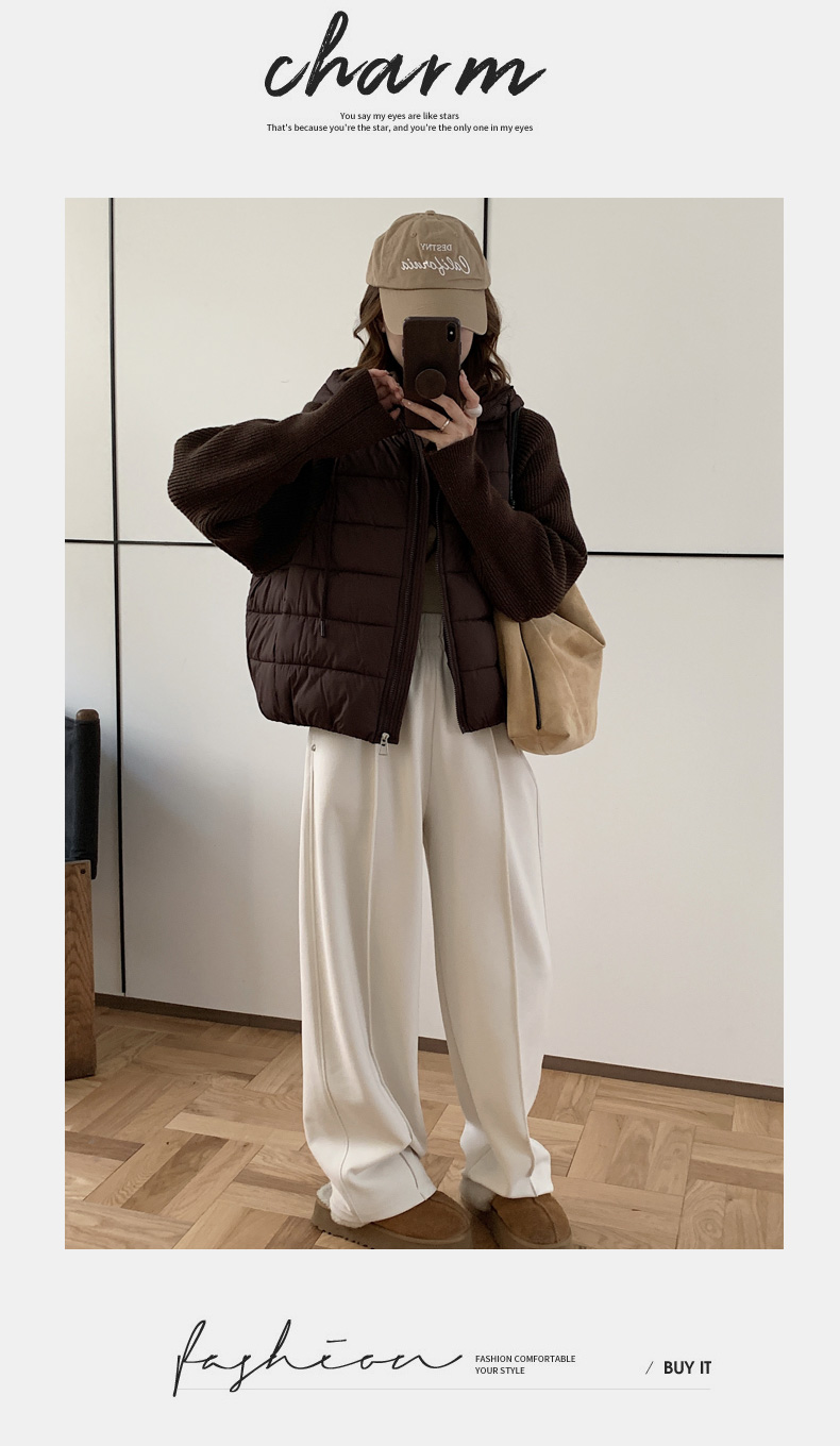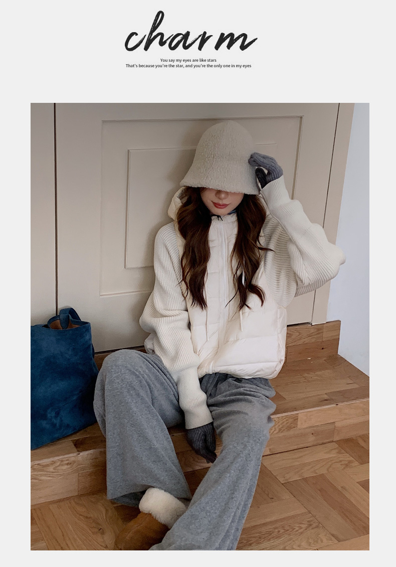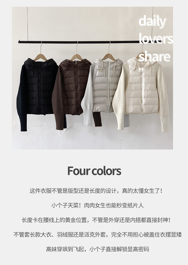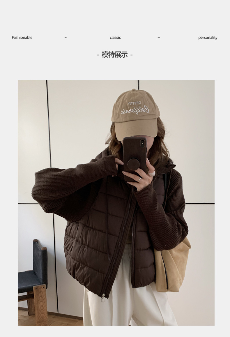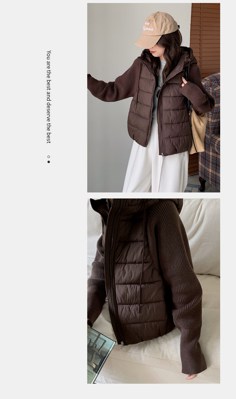 Lightweight Knitted Patchwork Cotton Jacket for Women, 2025 Winter New Korean Style Faux Two-Piece Cotton Coat, Warm Cotton-Padded Jacket