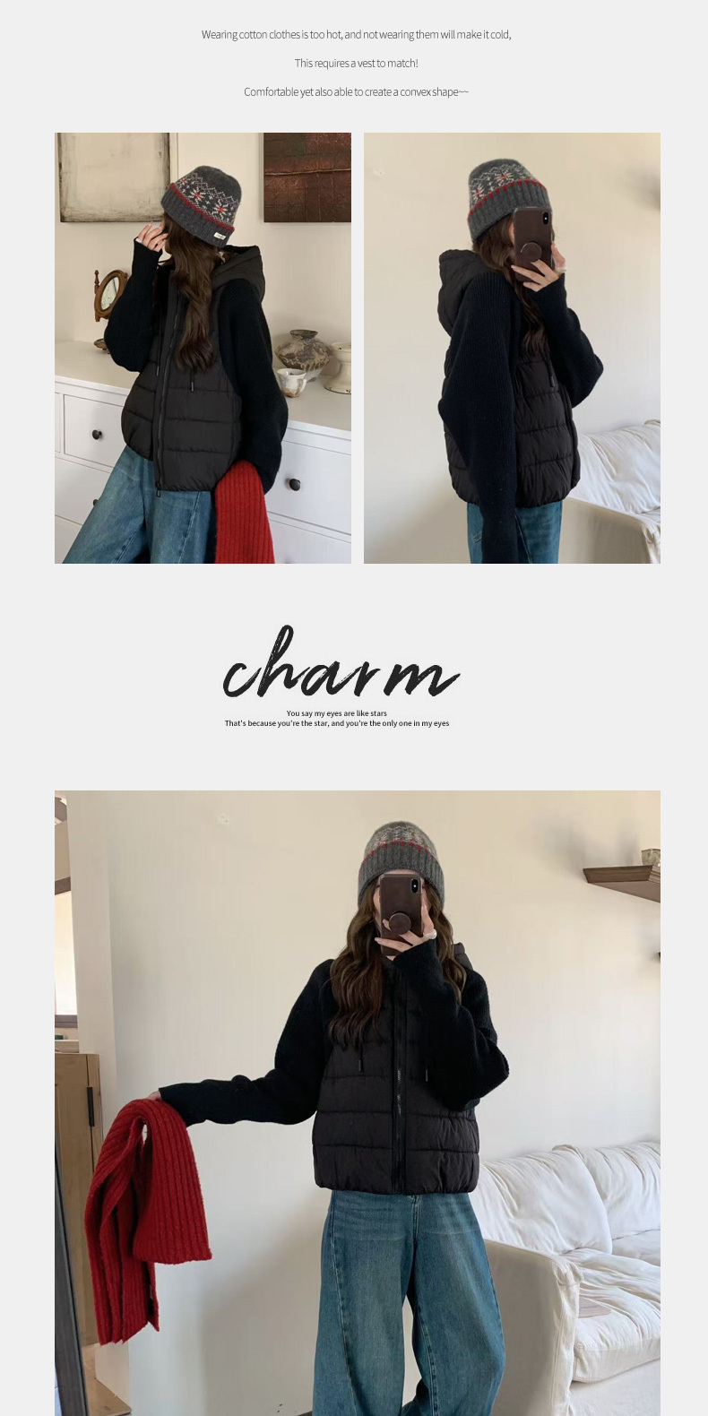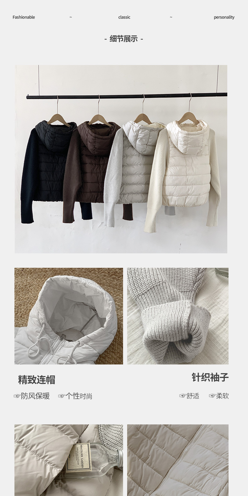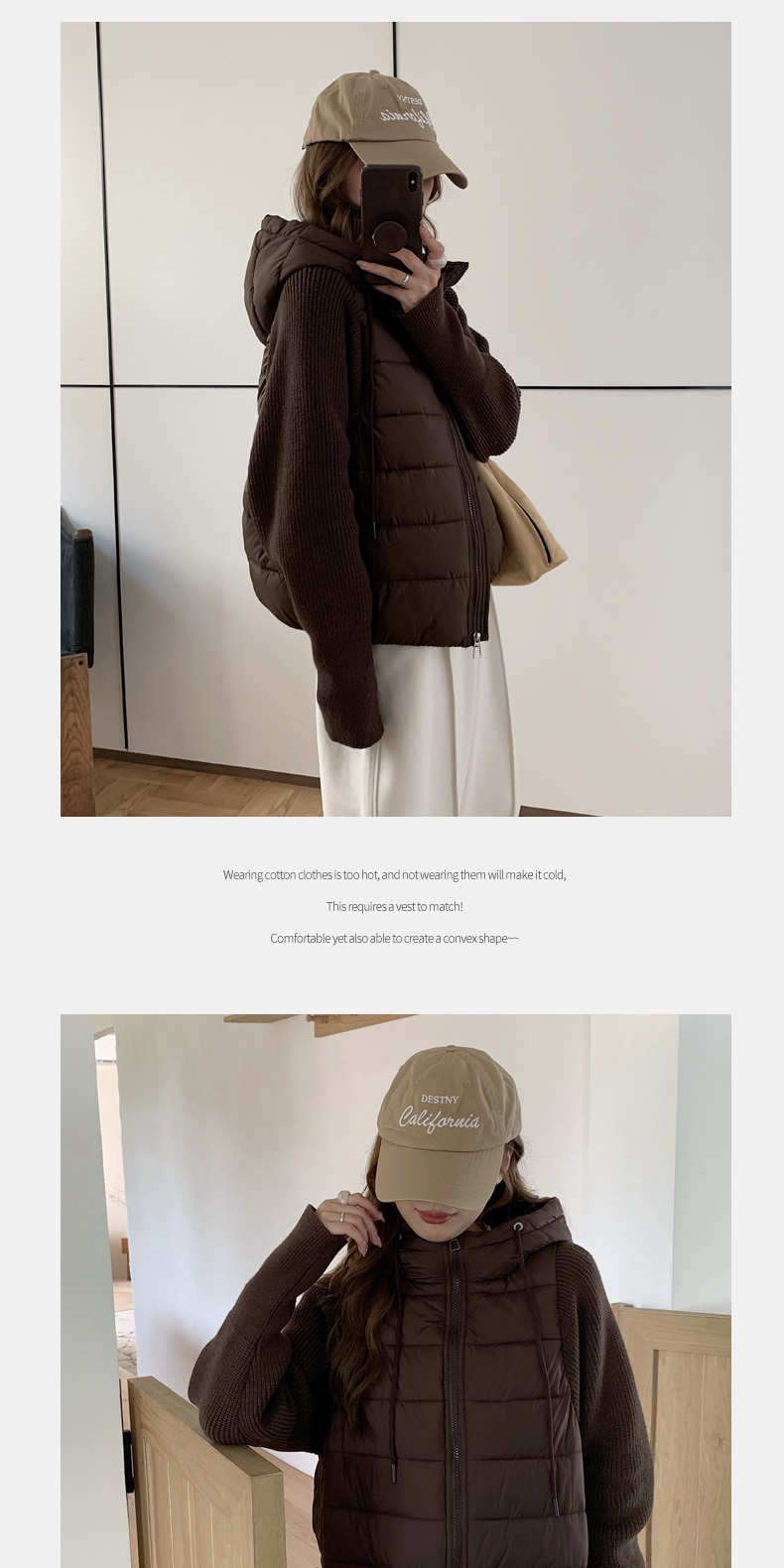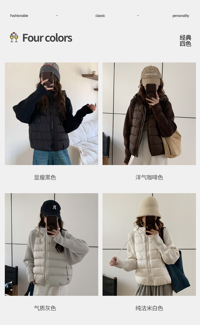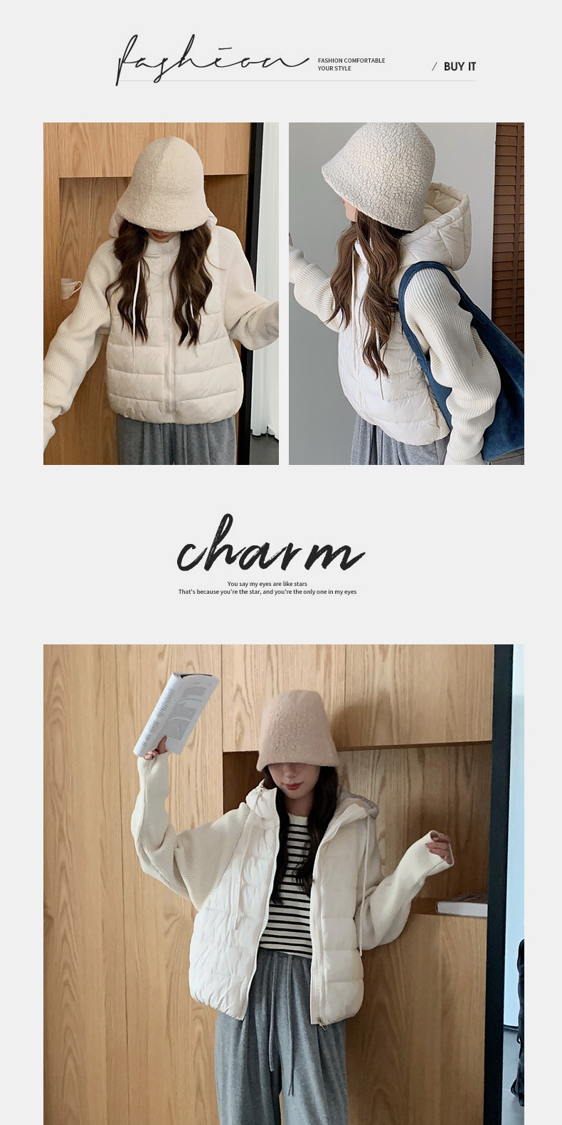 Lightweight Knitted Patchwork Cotton Jacket for Women, 2025 Winter New Korean Style Faux Two-Piece Cotton Coat, Warm Cotton-Padded Jacket