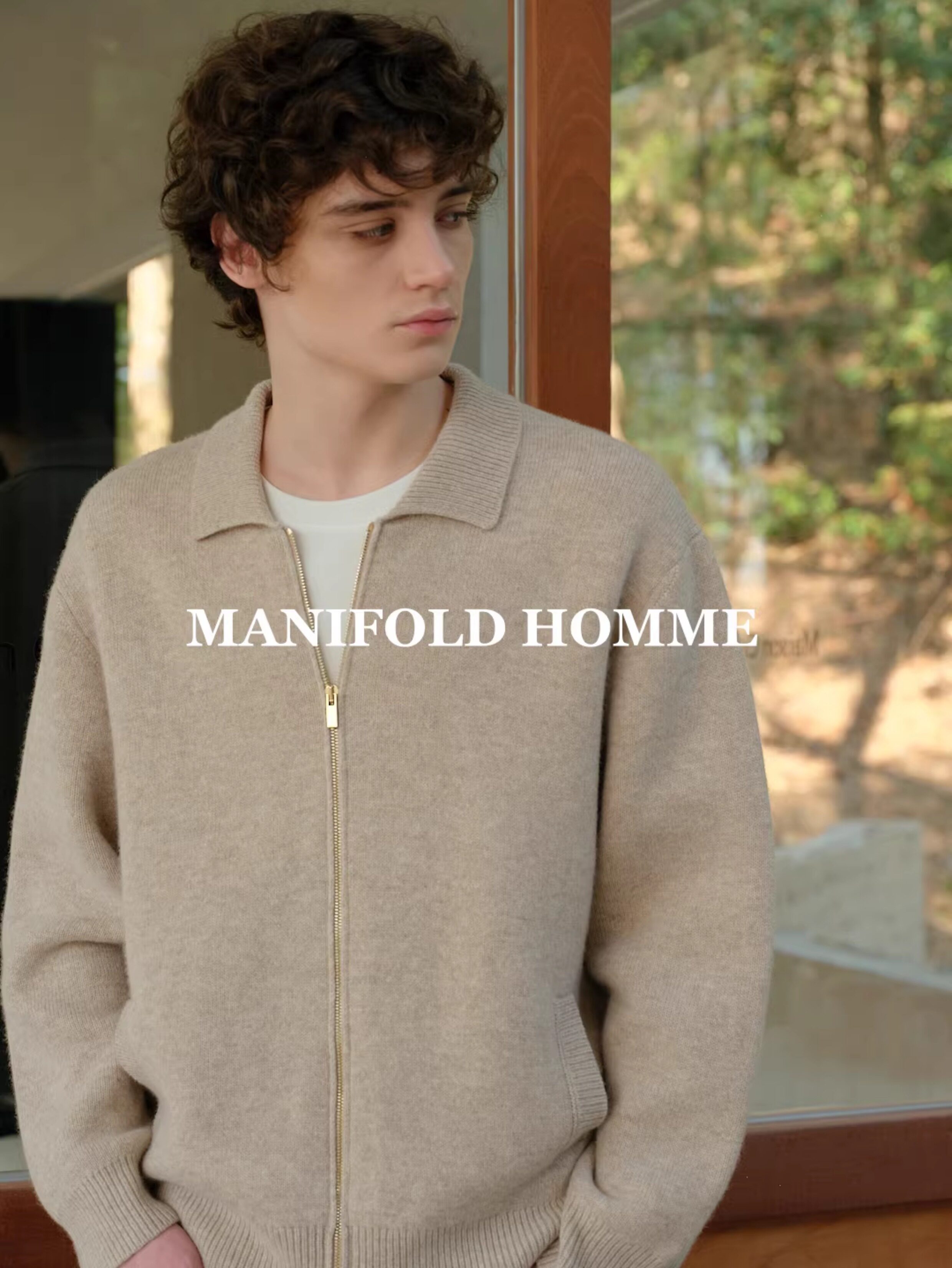 Manifold|Extra-Fine Merino Pure Wool Cardigan, Quiet Luxury Lapel Double-Zipper Knit Sweater Jacket