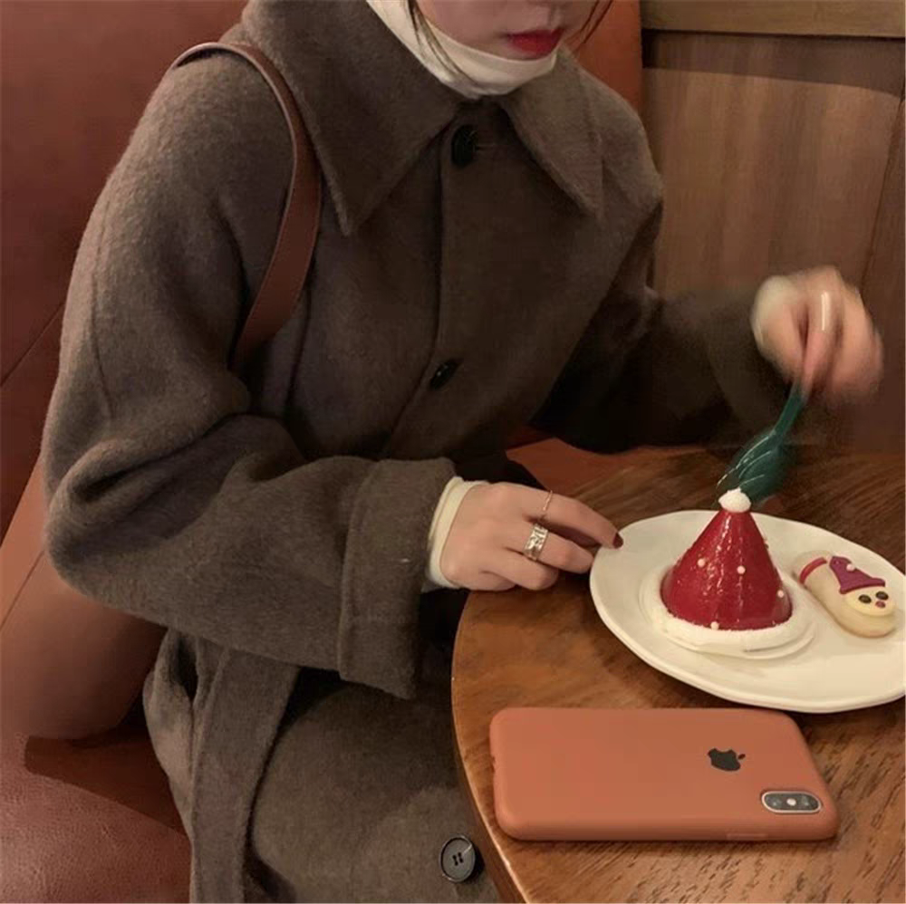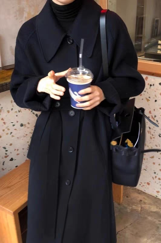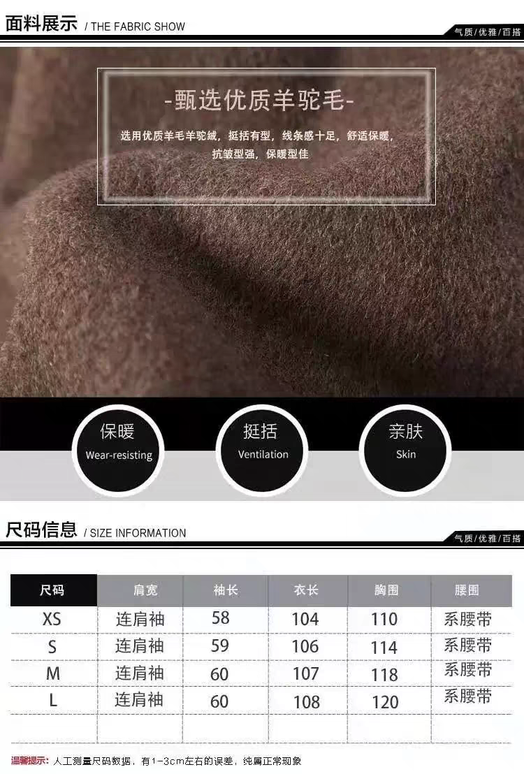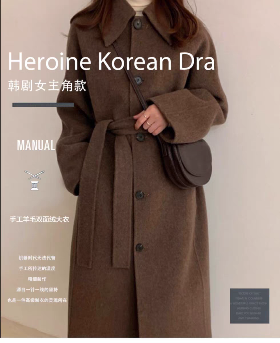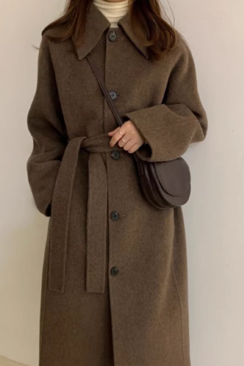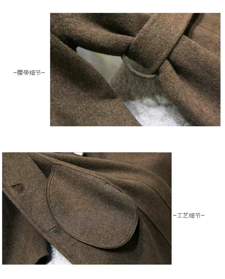 2025 Korean Style Belt Autumn and Winter Mocha Brown New Double-Sided Cashmere Woolen Petite Coat Women's High-End Coat
