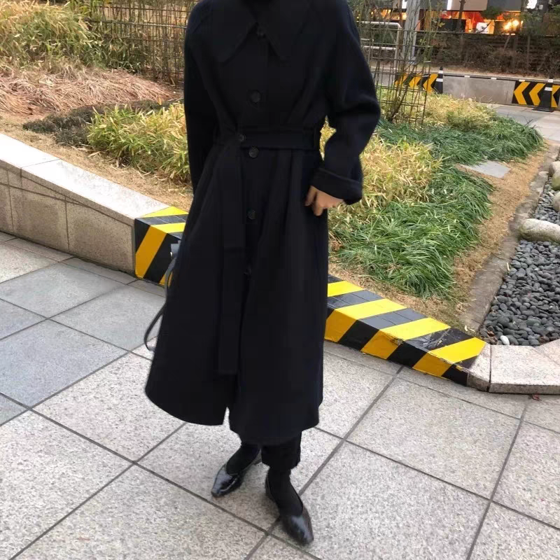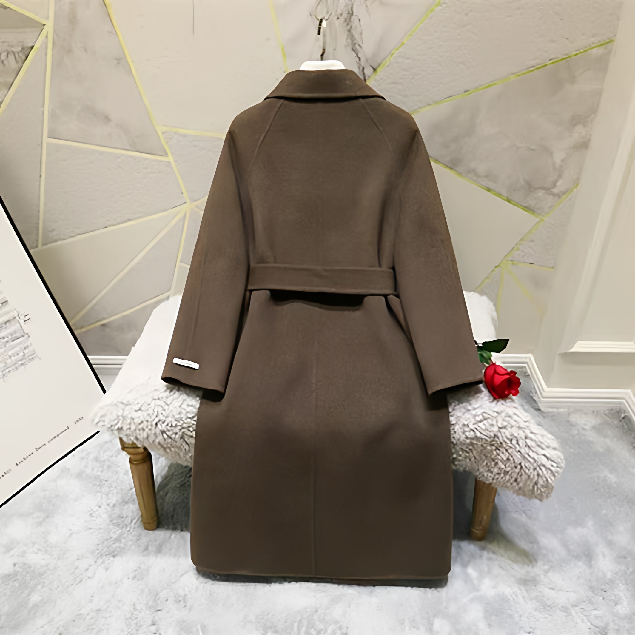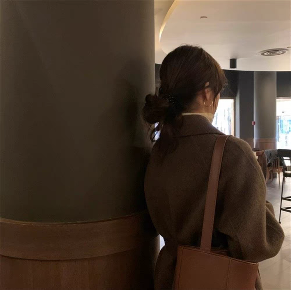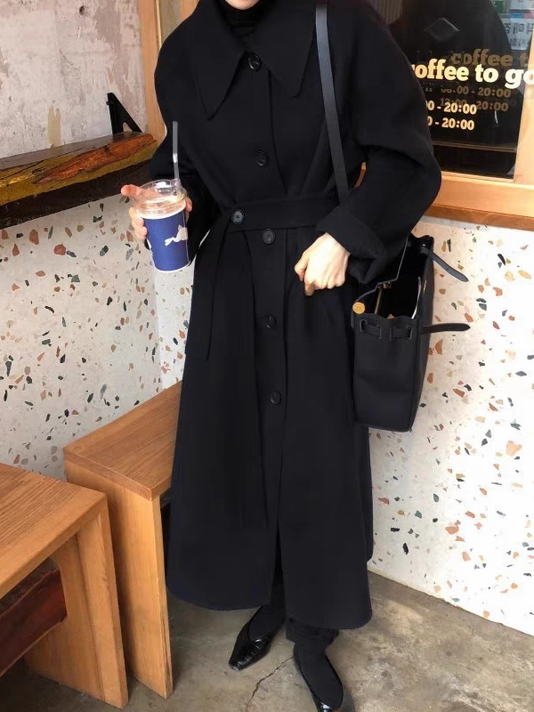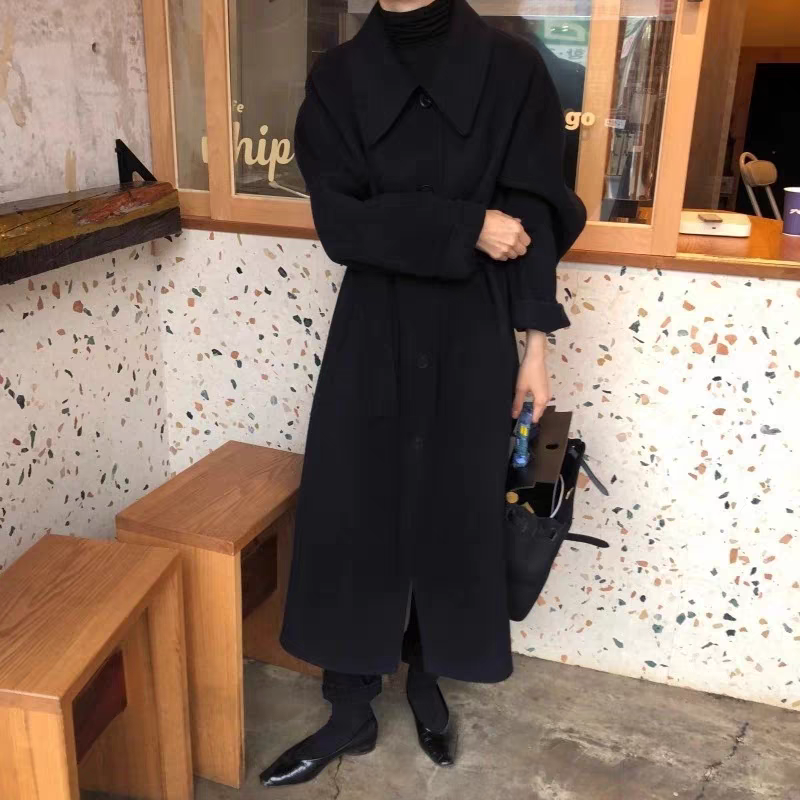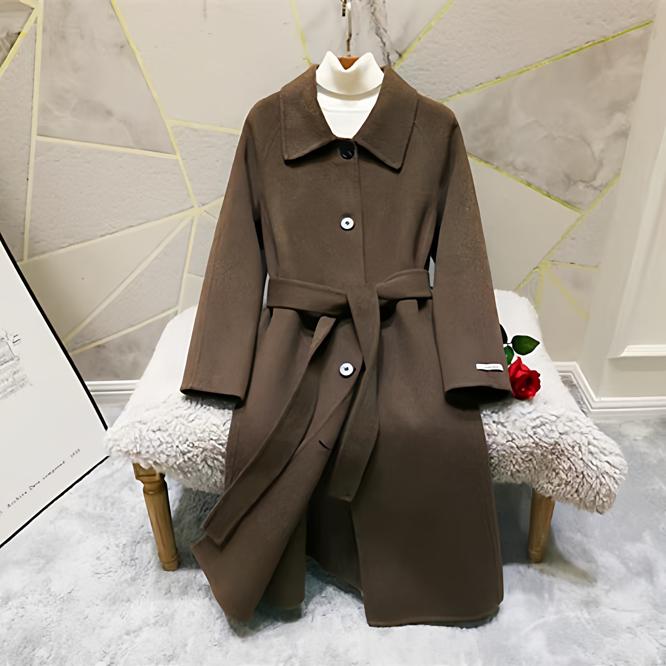 2025 Korean Style Belt Autumn and Winter Mocha Brown New Double-Sided Cashmere Woolen Petite Coat Women's High-End Coat