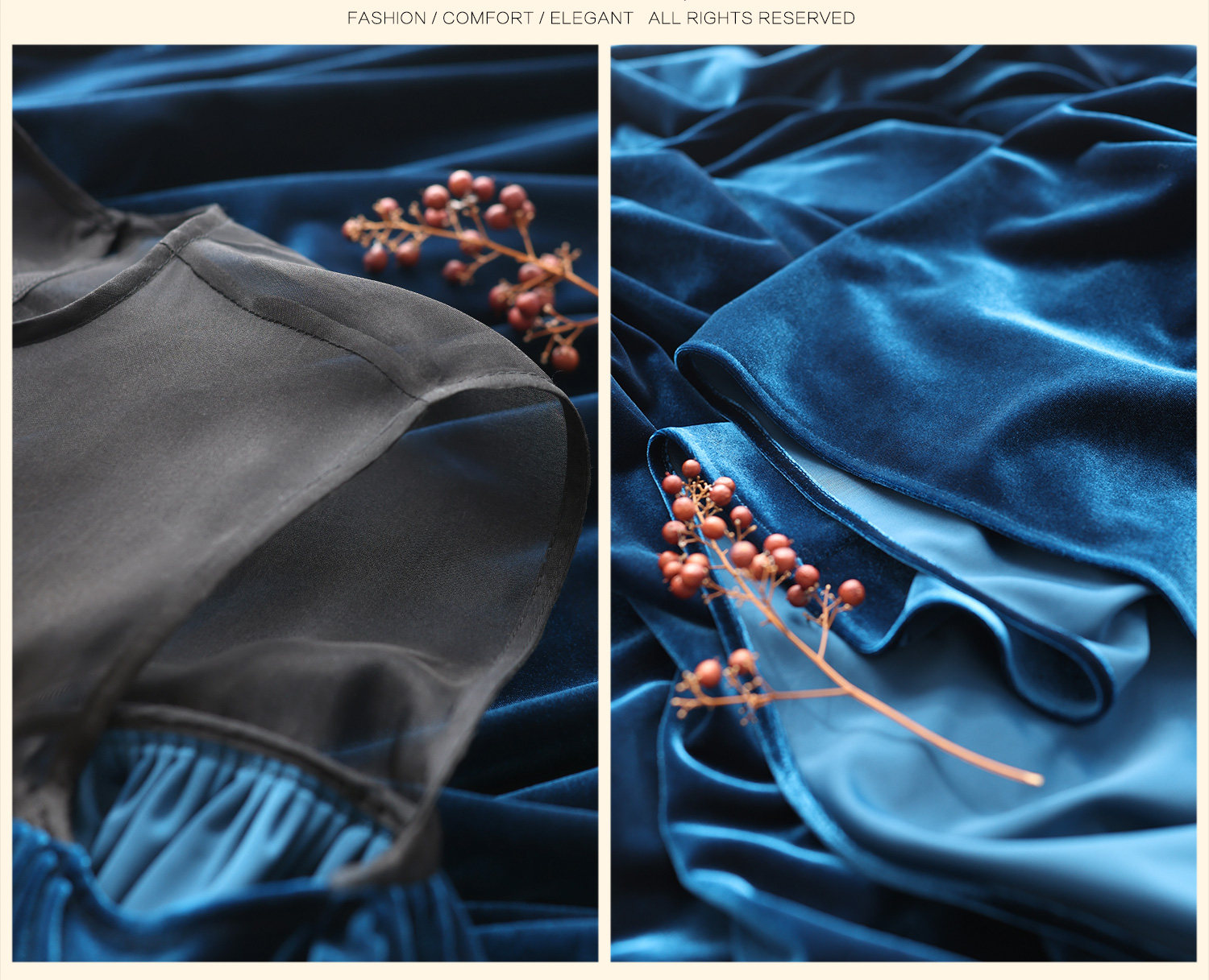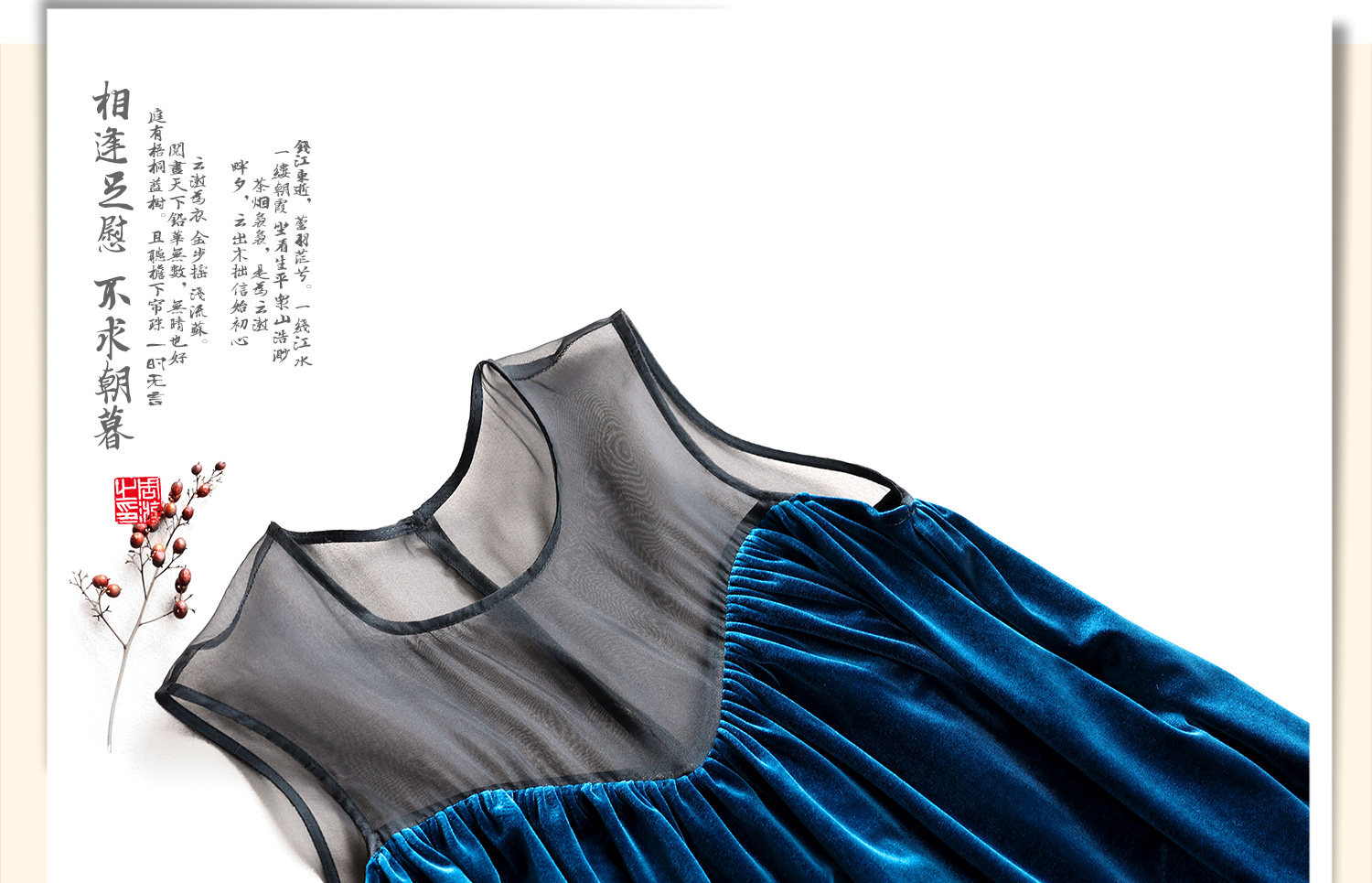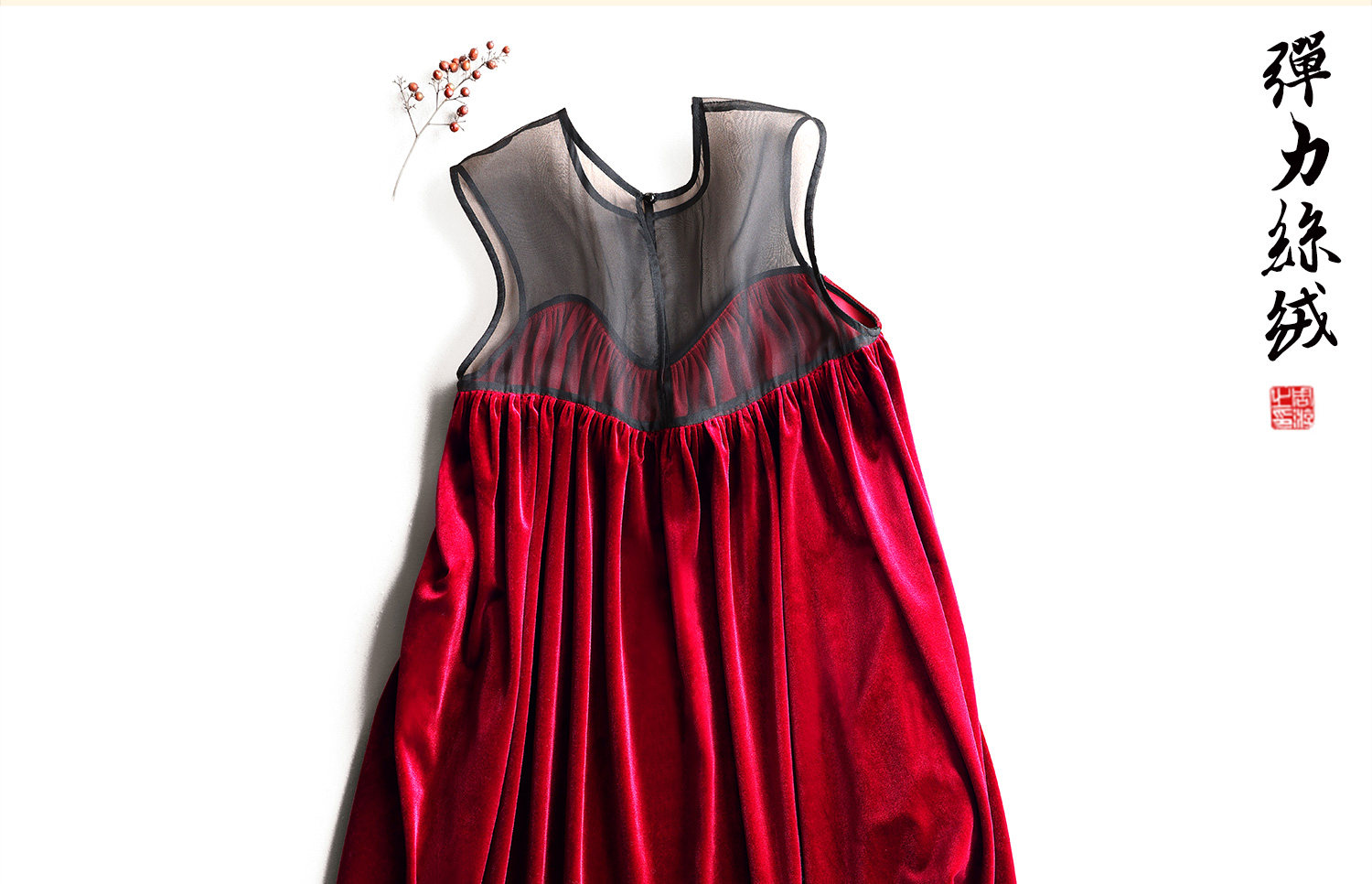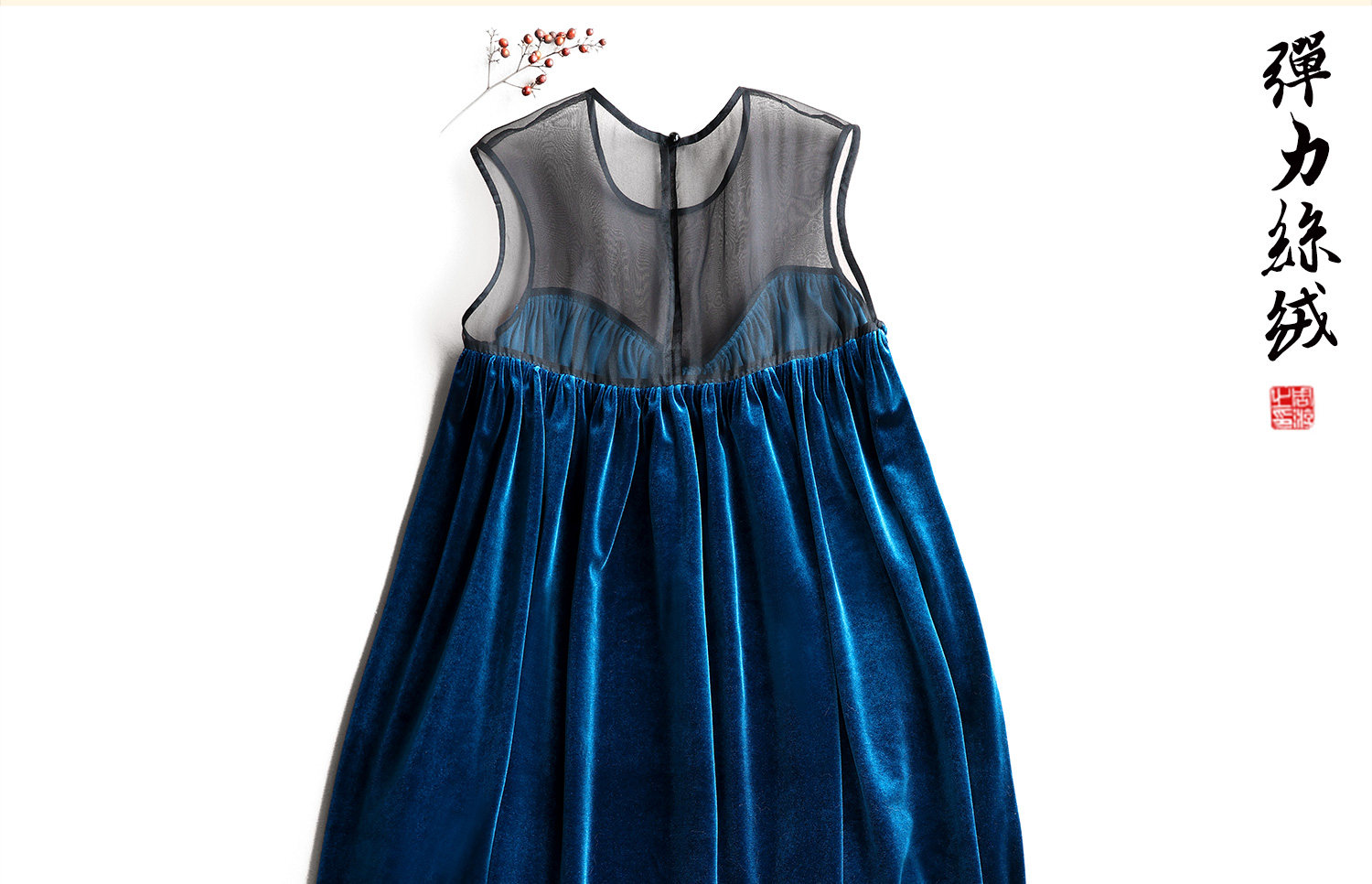 Yunshu Original Elastic Velvet Silk Organza Splicing Casual Elegant Loose Round Neck Long Dress for Autumn and Winter