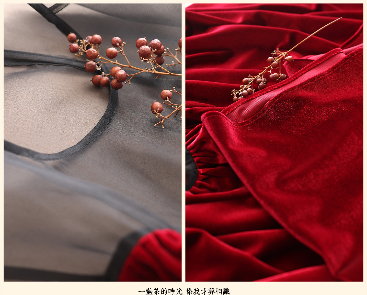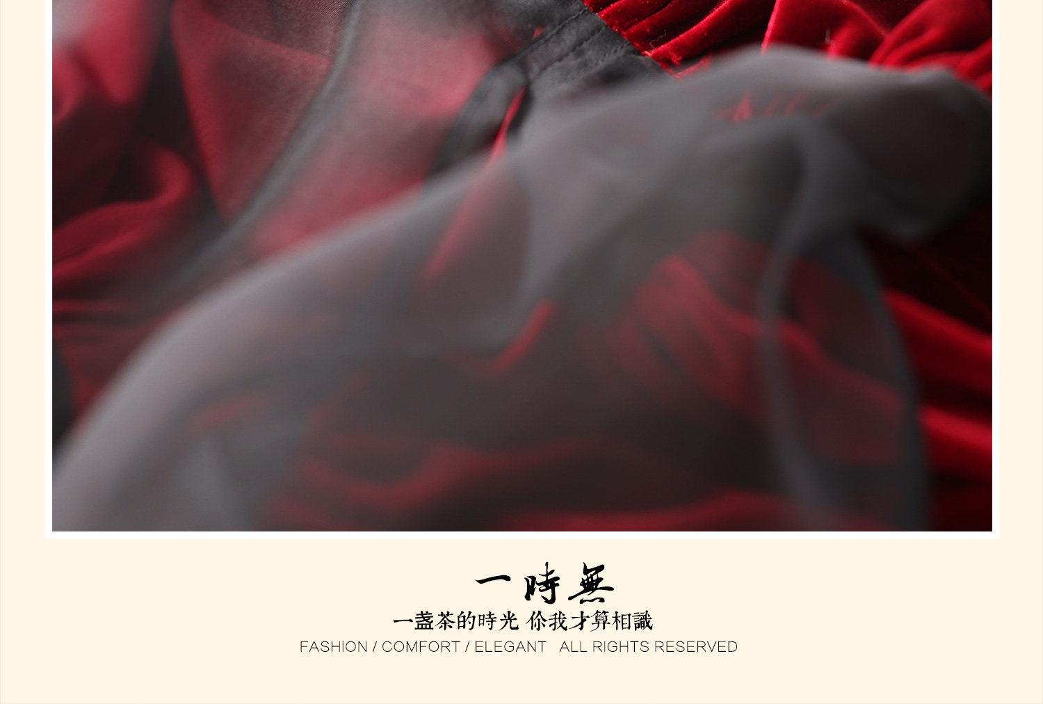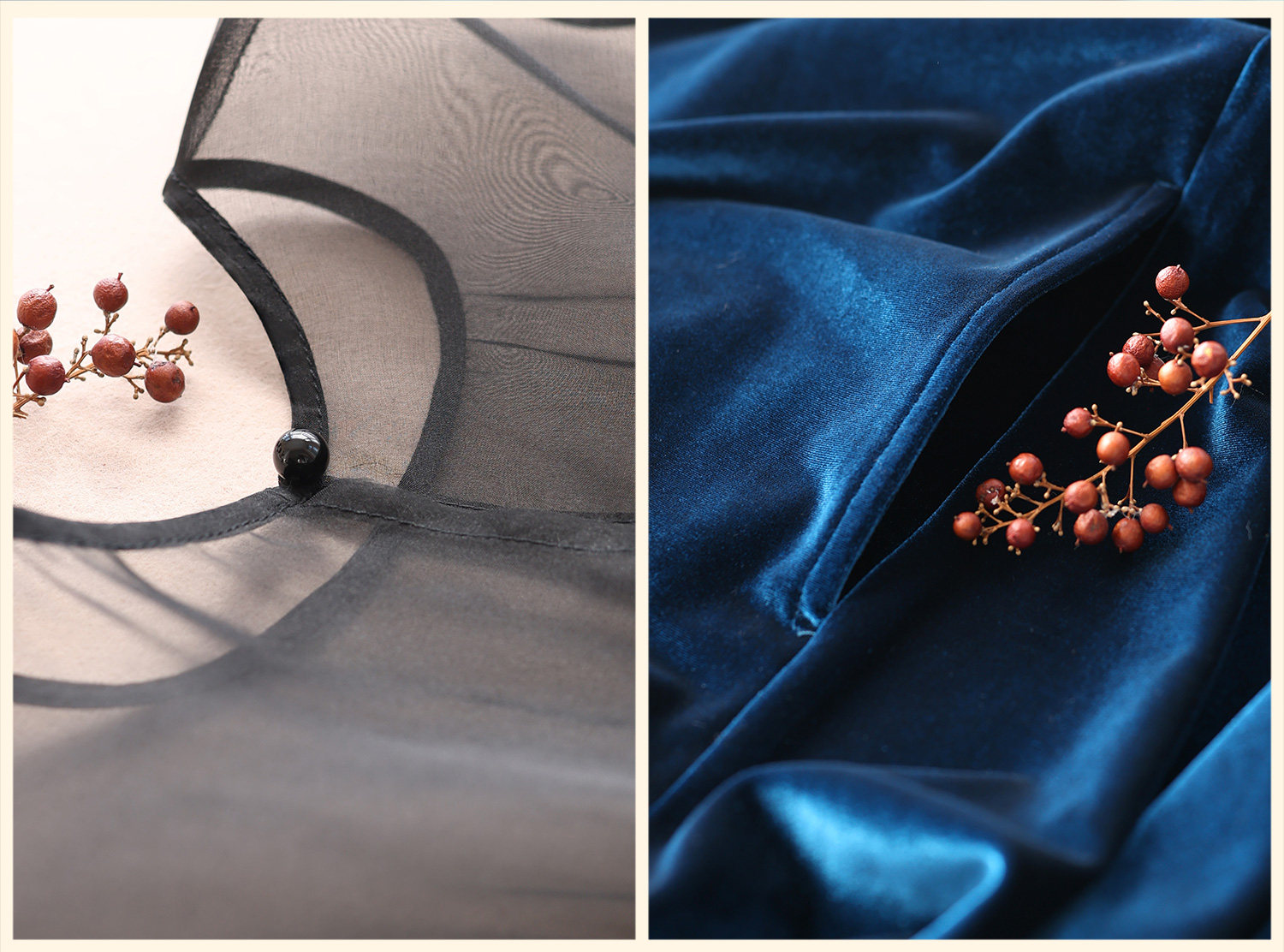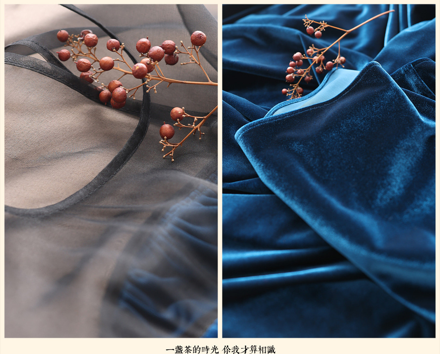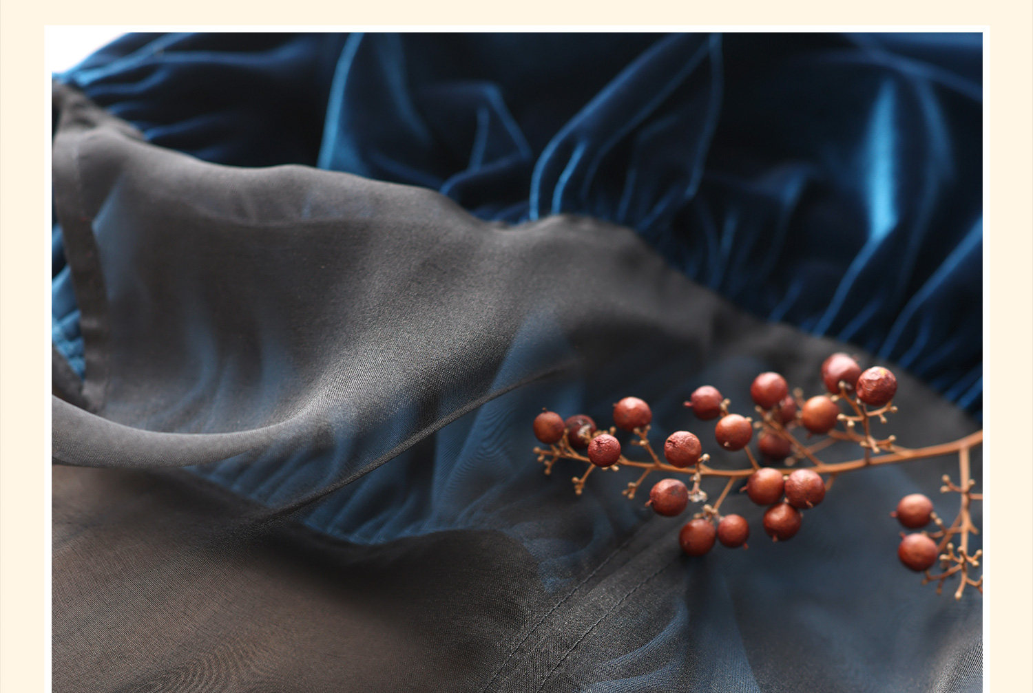 Yunshu Original Elastic Velvet Silk Organza Splicing Casual Elegant Loose Round Neck Long Dress for Autumn and Winter