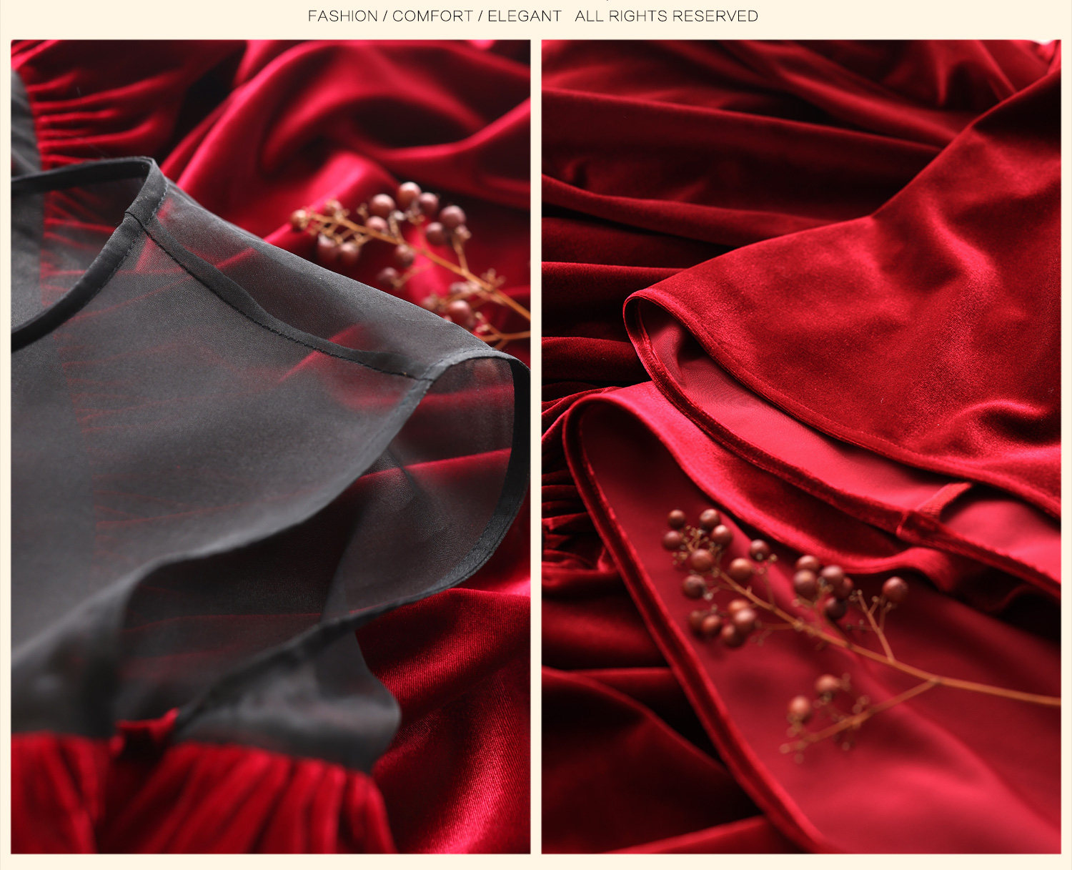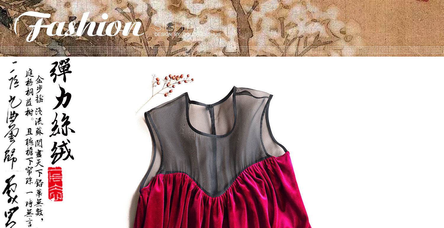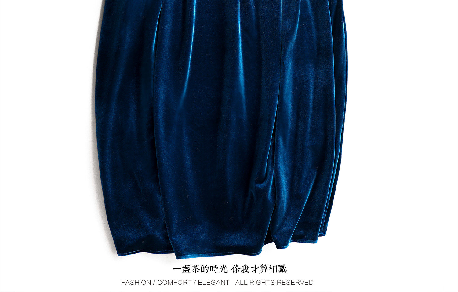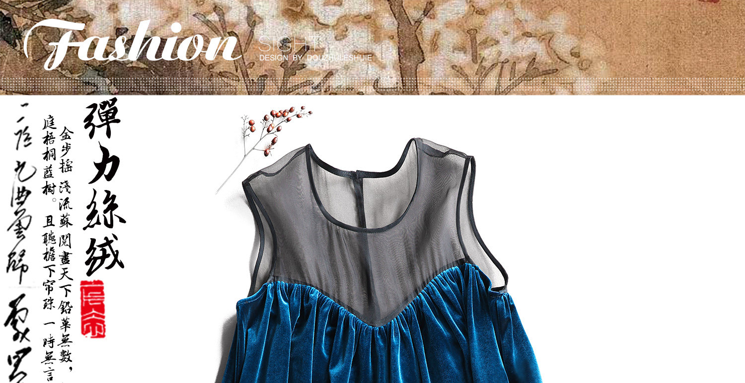 Yunshu Original Elastic Velvet Silk Organza Splicing Casual Elegant Loose Round Neck Long Dress for Autumn and Winter