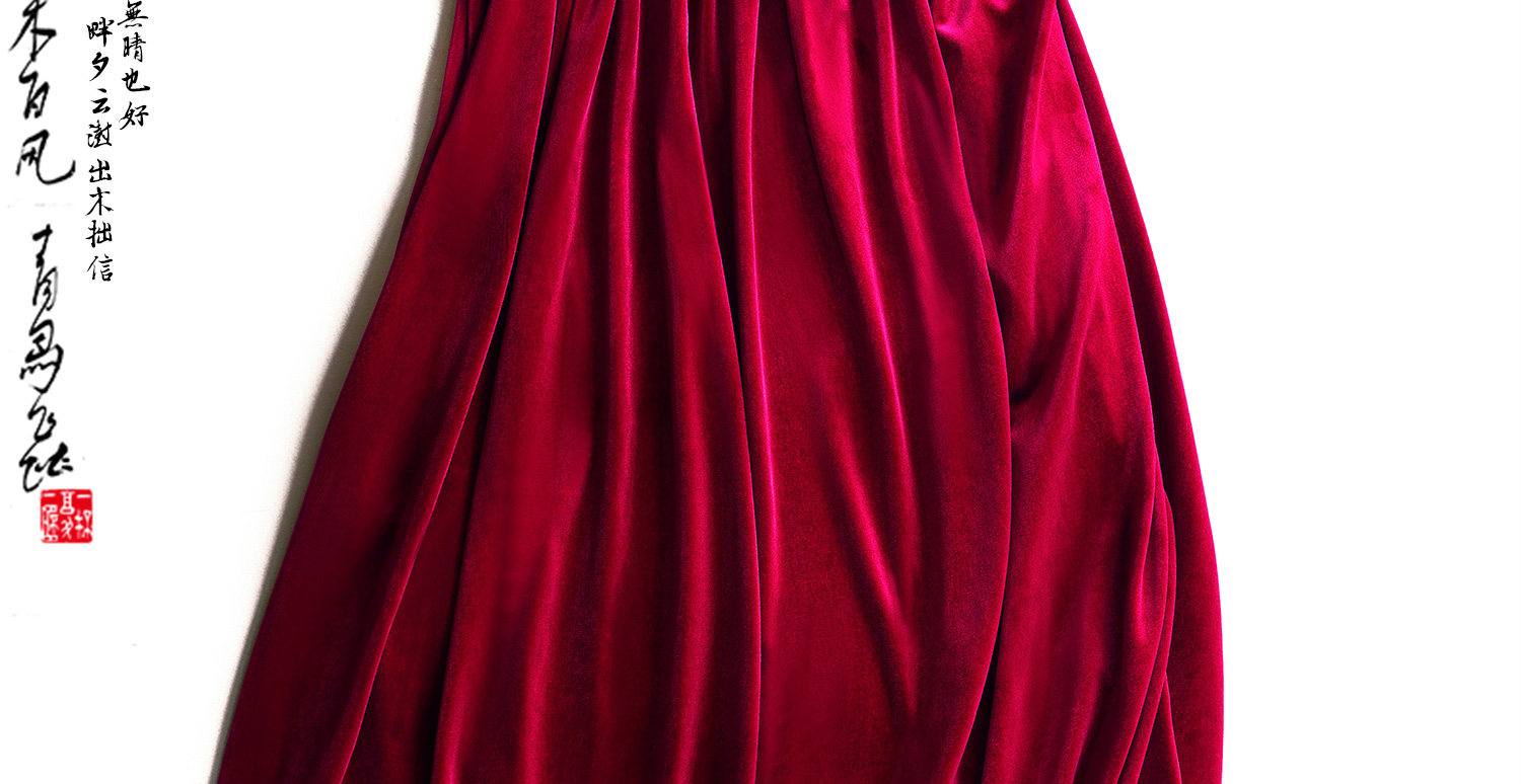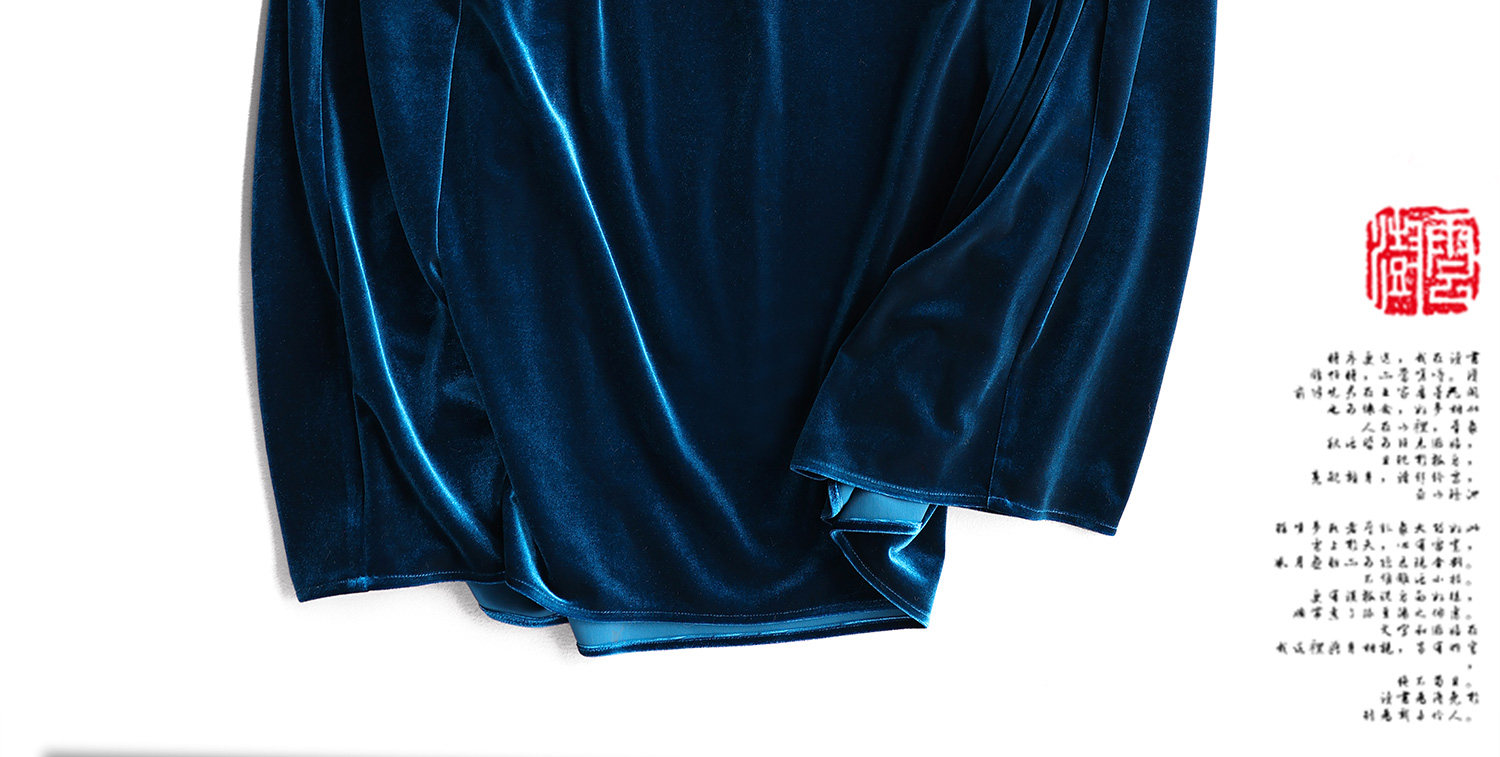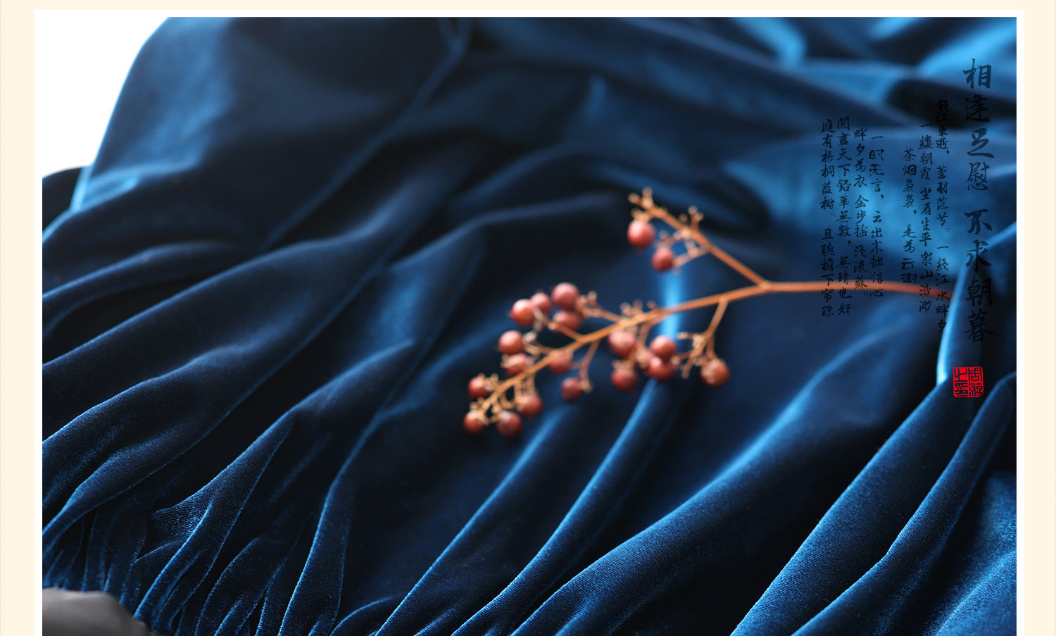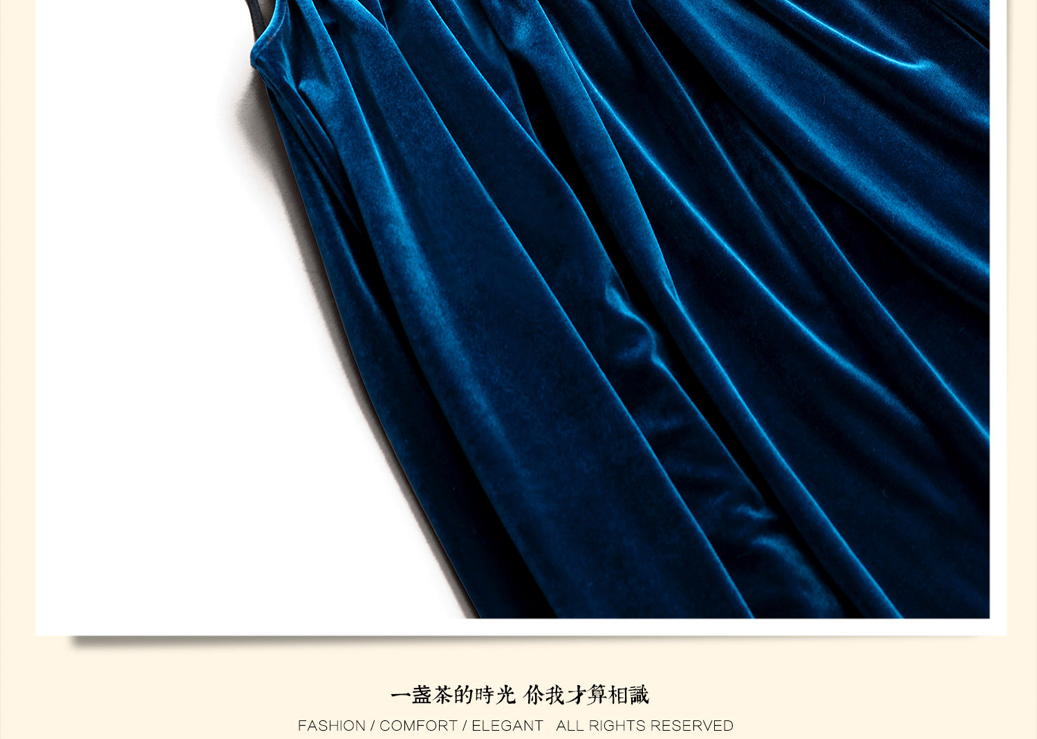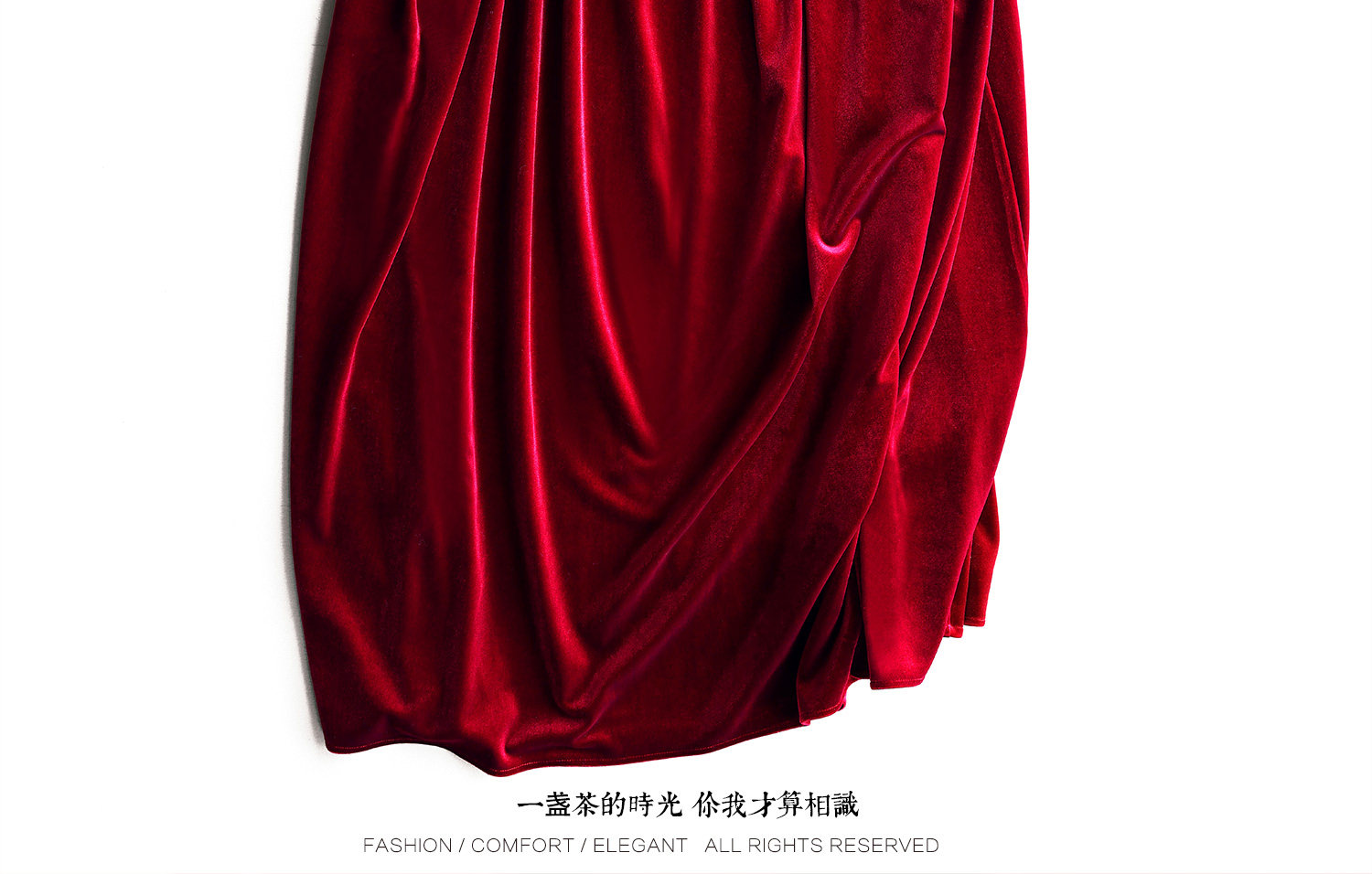 Yunshu Original Elastic Velvet Silk Organza Splicing Casual Elegant Loose Round Neck Long Dress for Autumn and Winter