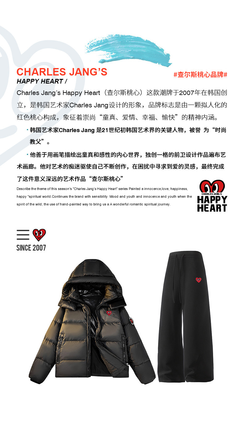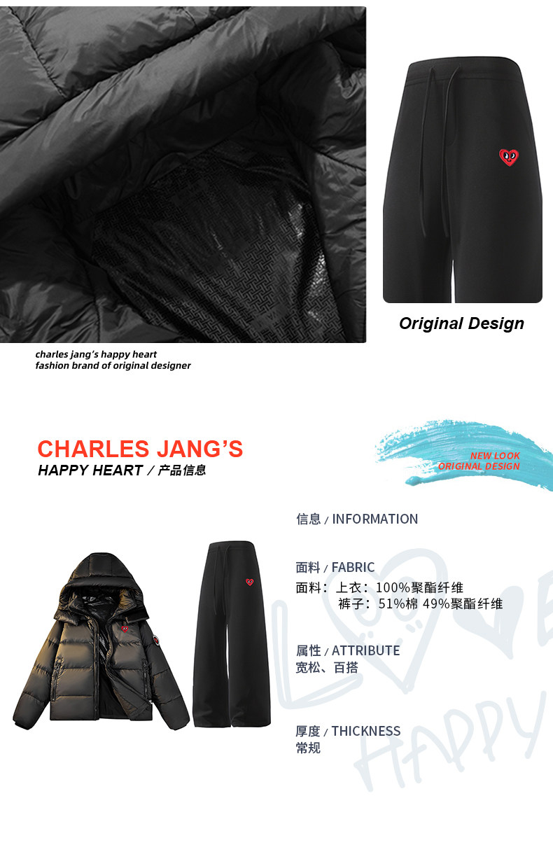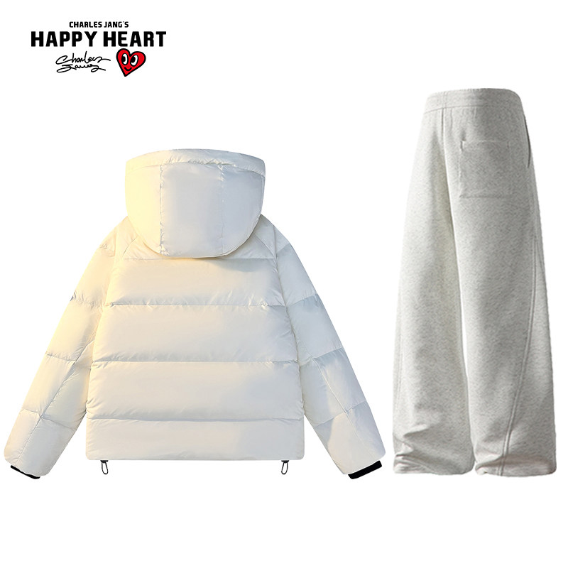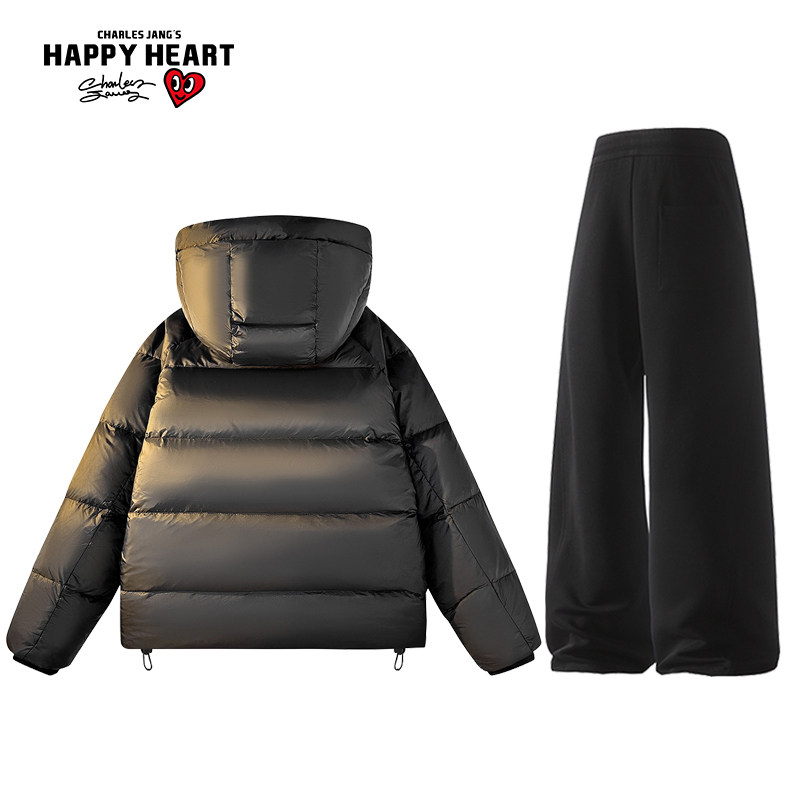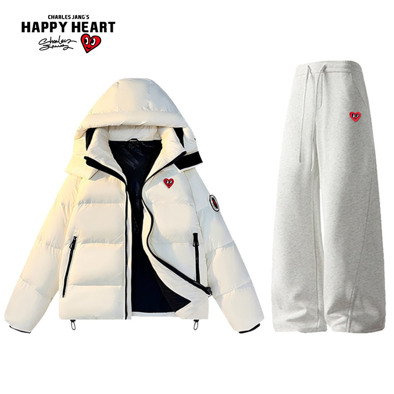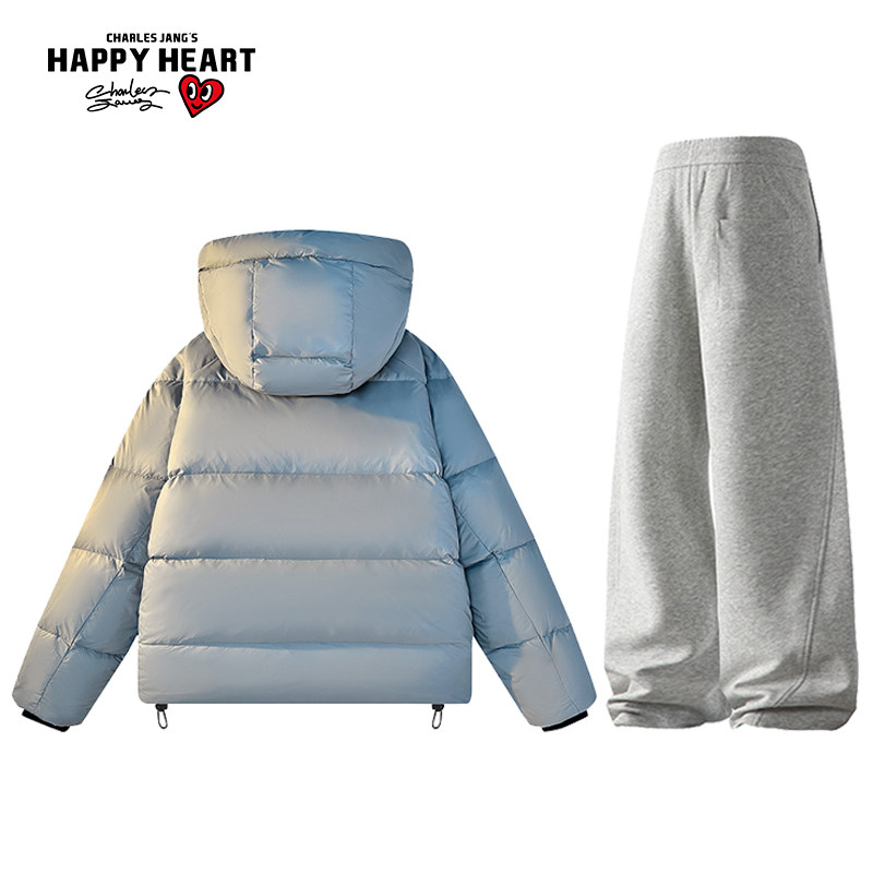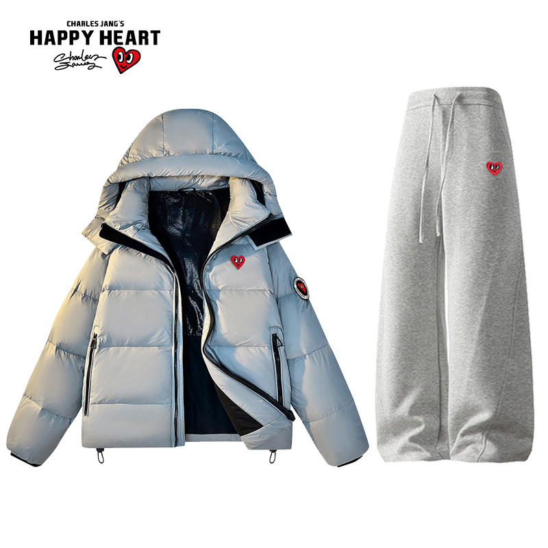 Charles Peach Heart 90 Duck down Graphene Thickened Hooded down Jacket Couple Set Drawstring Casual Pants Two-Piece Set