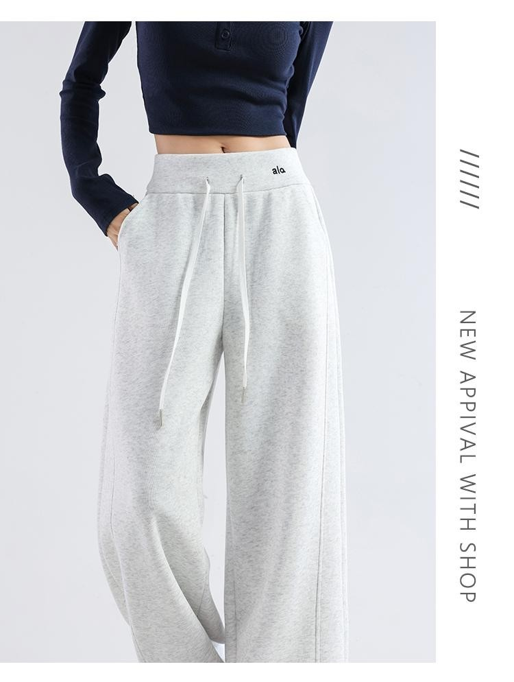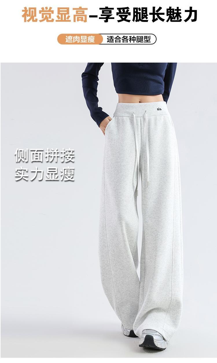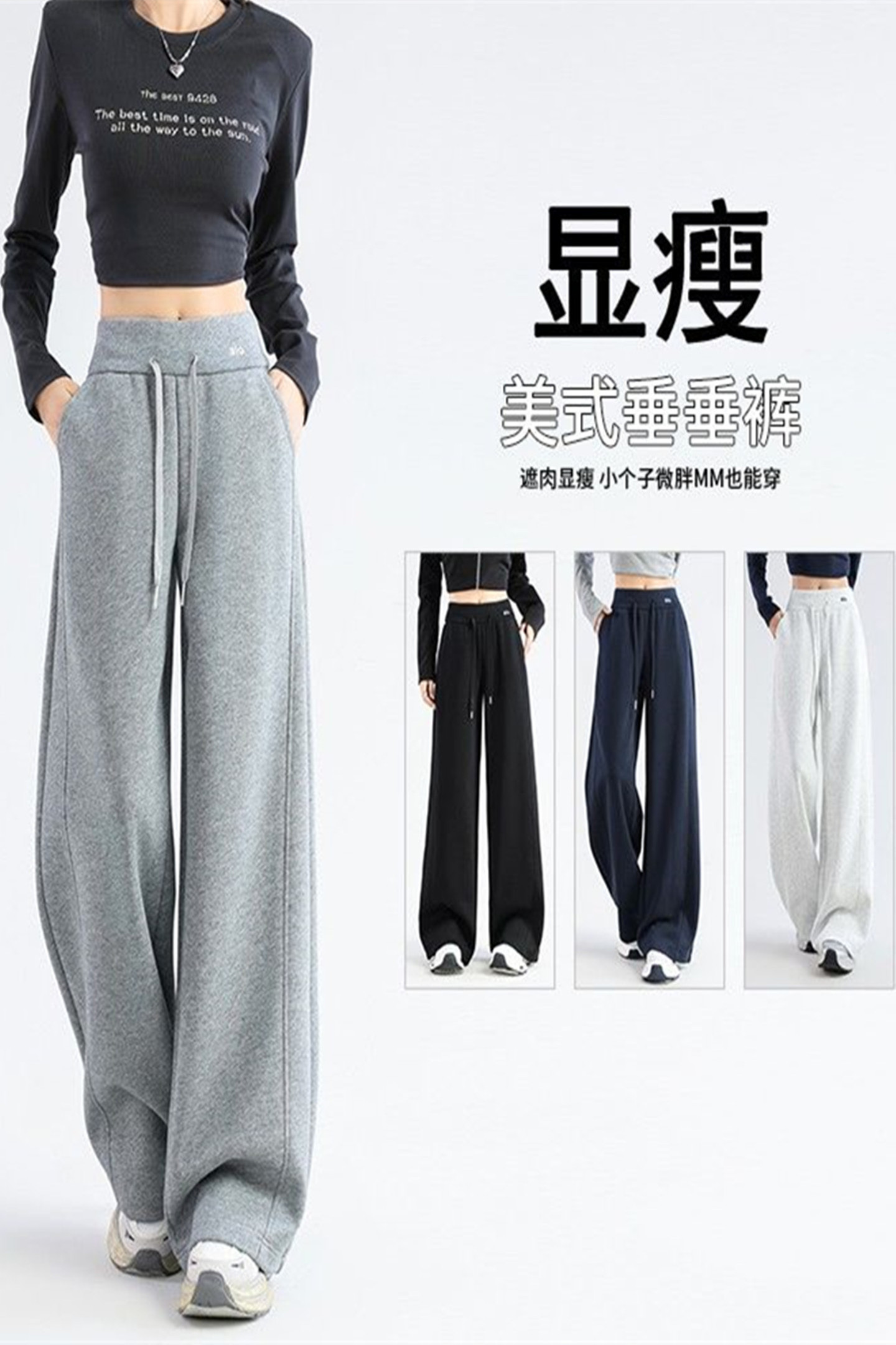 Linhuan White-Gray Sweatpants for Women, Autumn and Winter Straight-Leg Petite Casual Joggers, Slim-Fit High-Waisted Long Pants, Banana Wide-Leg Pants