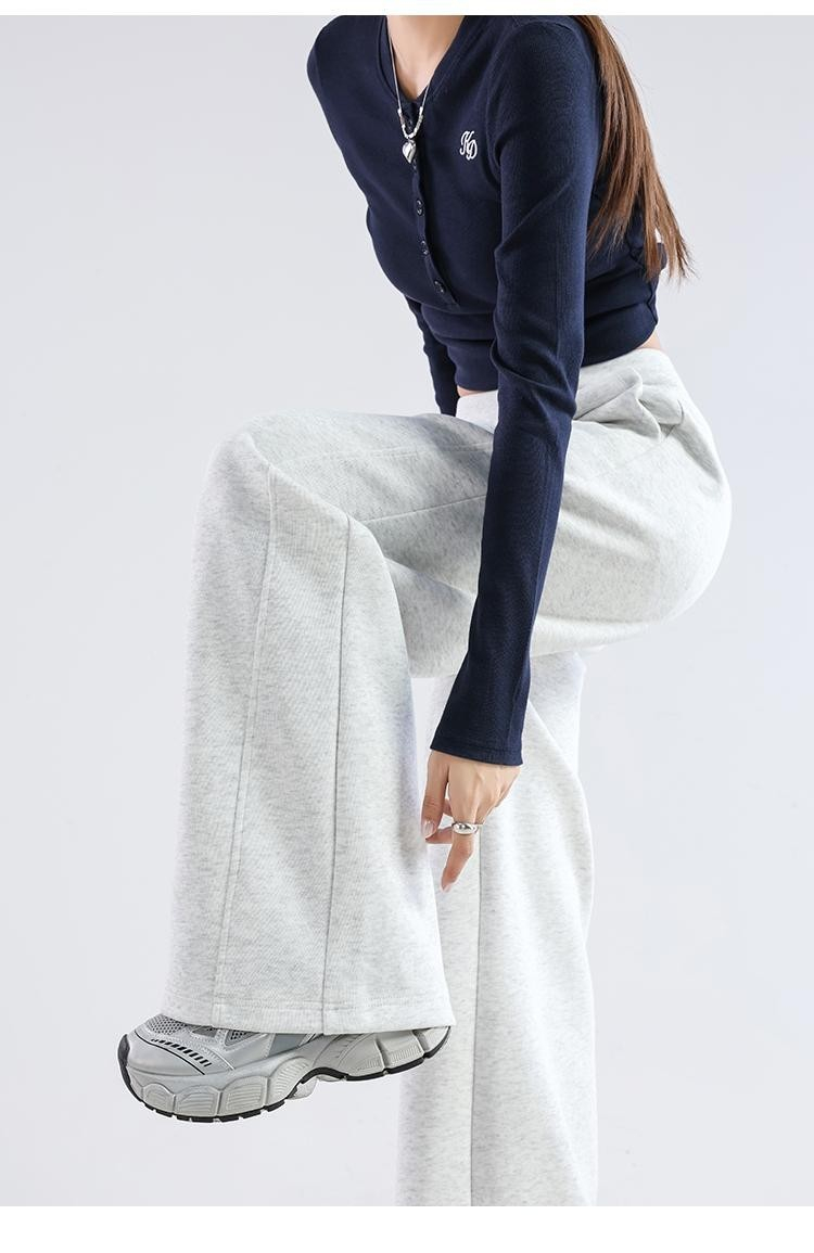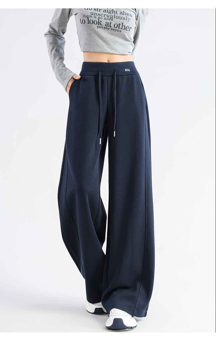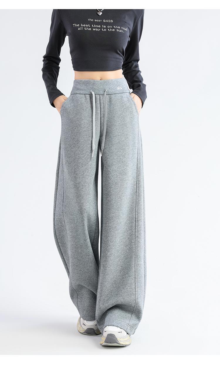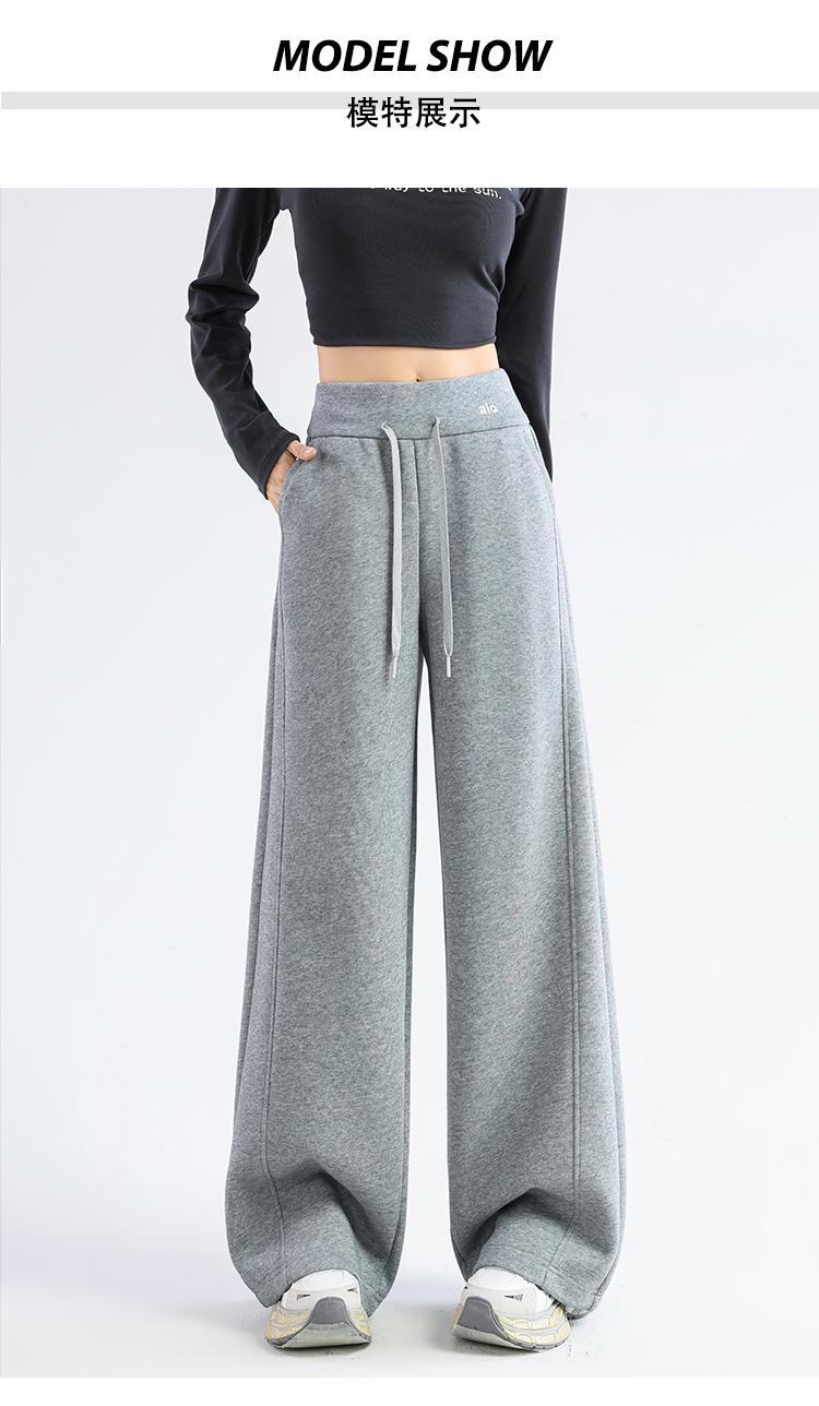 Linhuan White-Gray Sweatpants for Women, Autumn and Winter Straight-Leg Petite Casual Joggers, Slim-Fit High-Waisted Long Pants, Banana Wide-Leg Pants