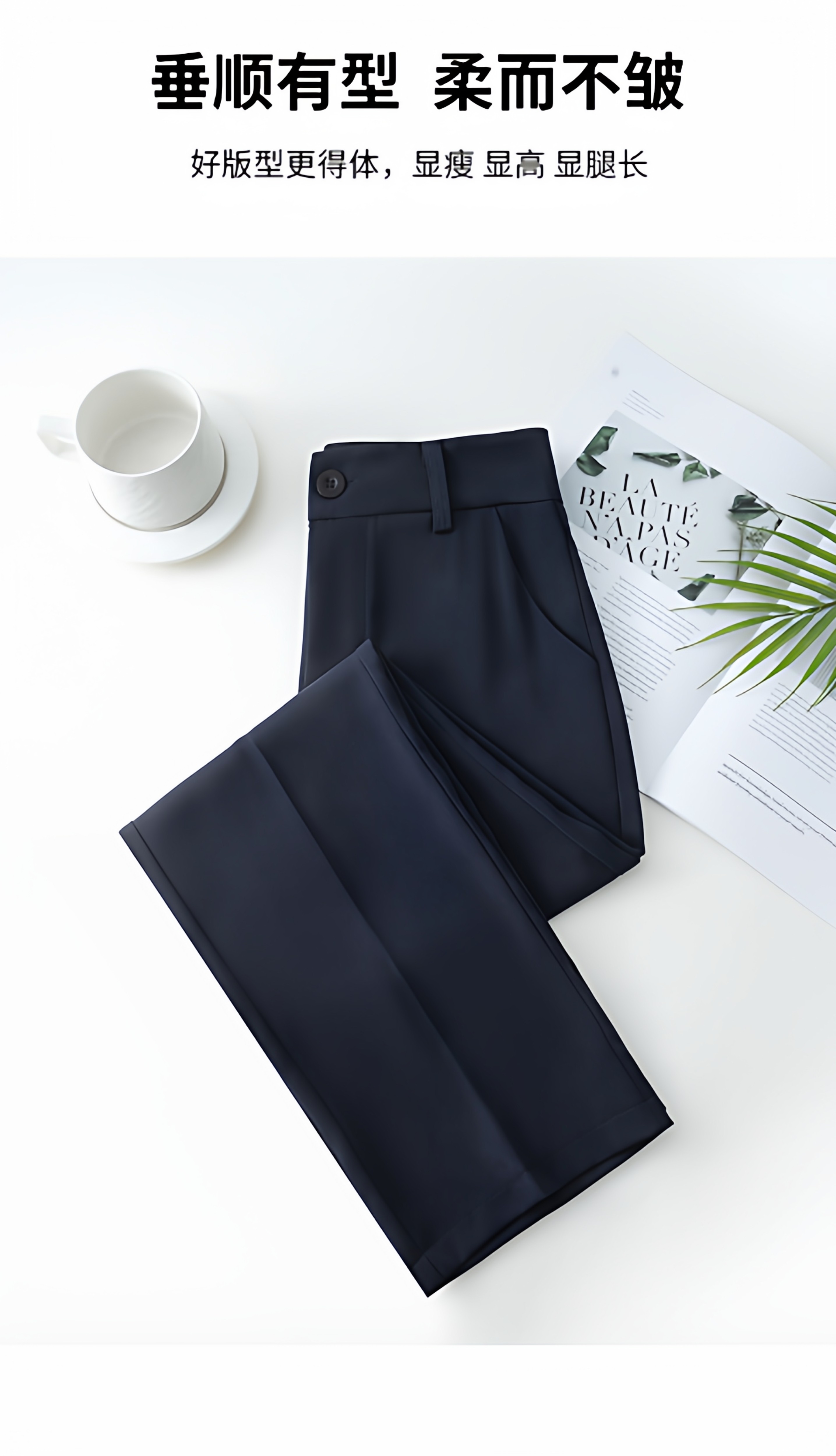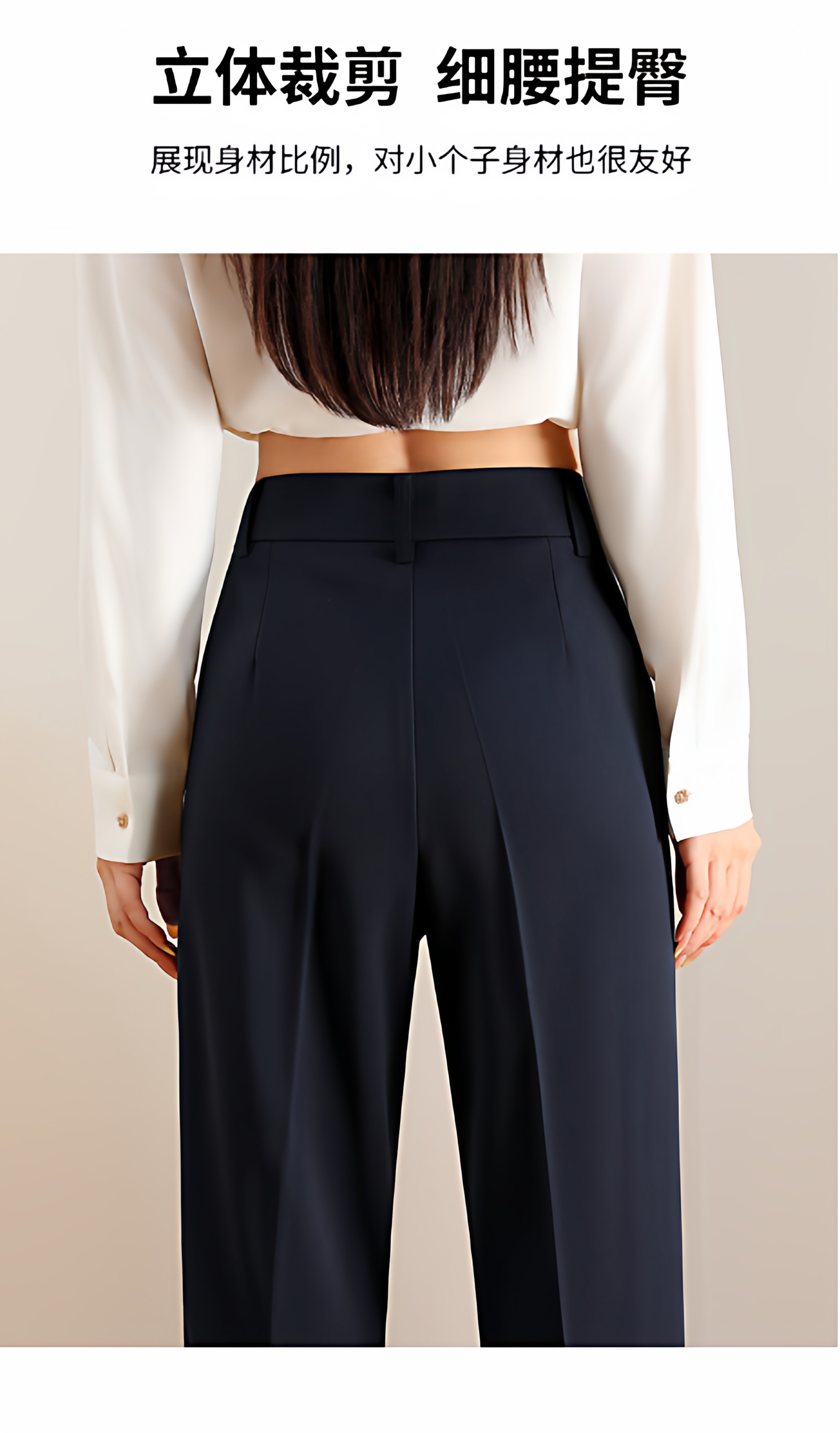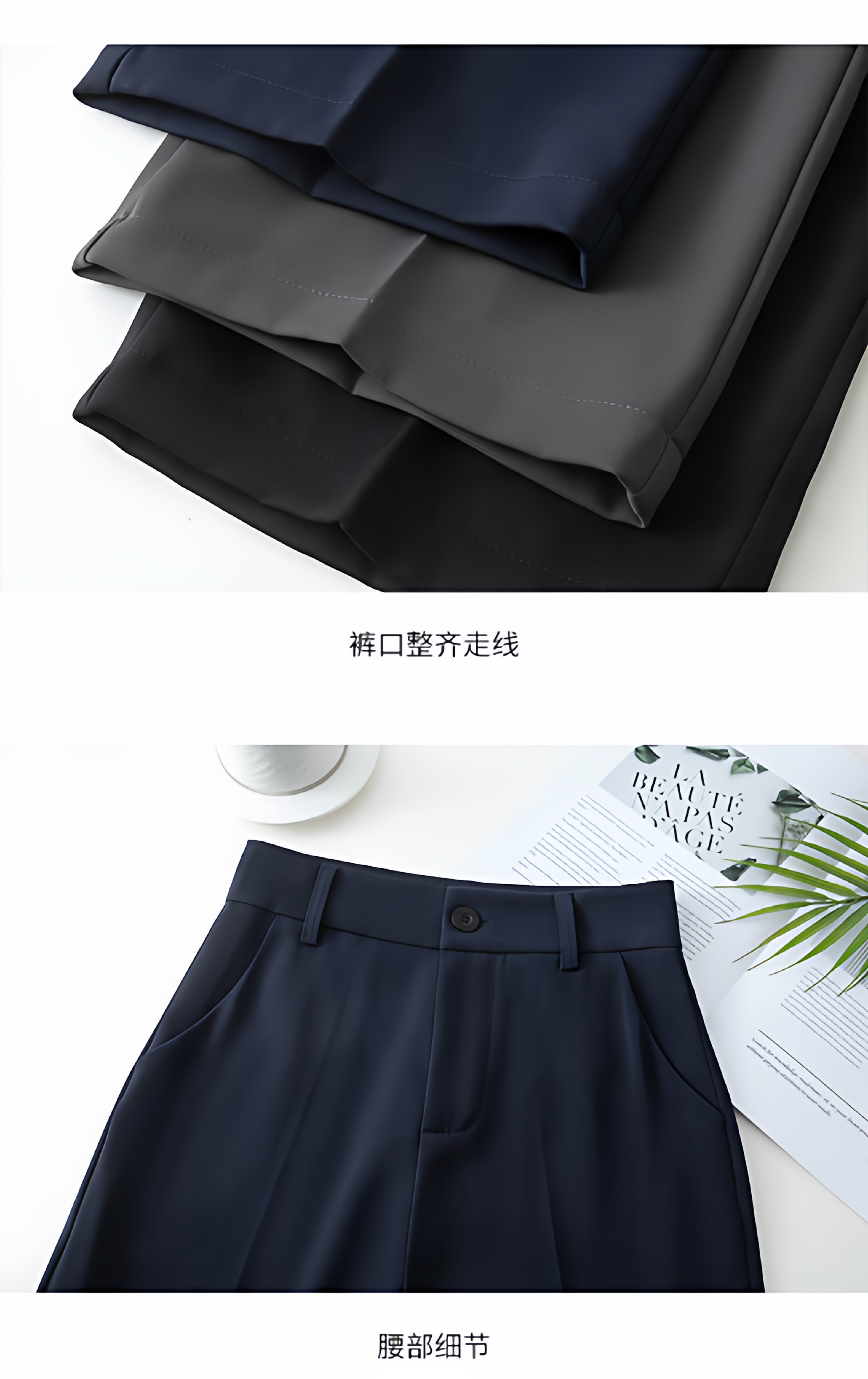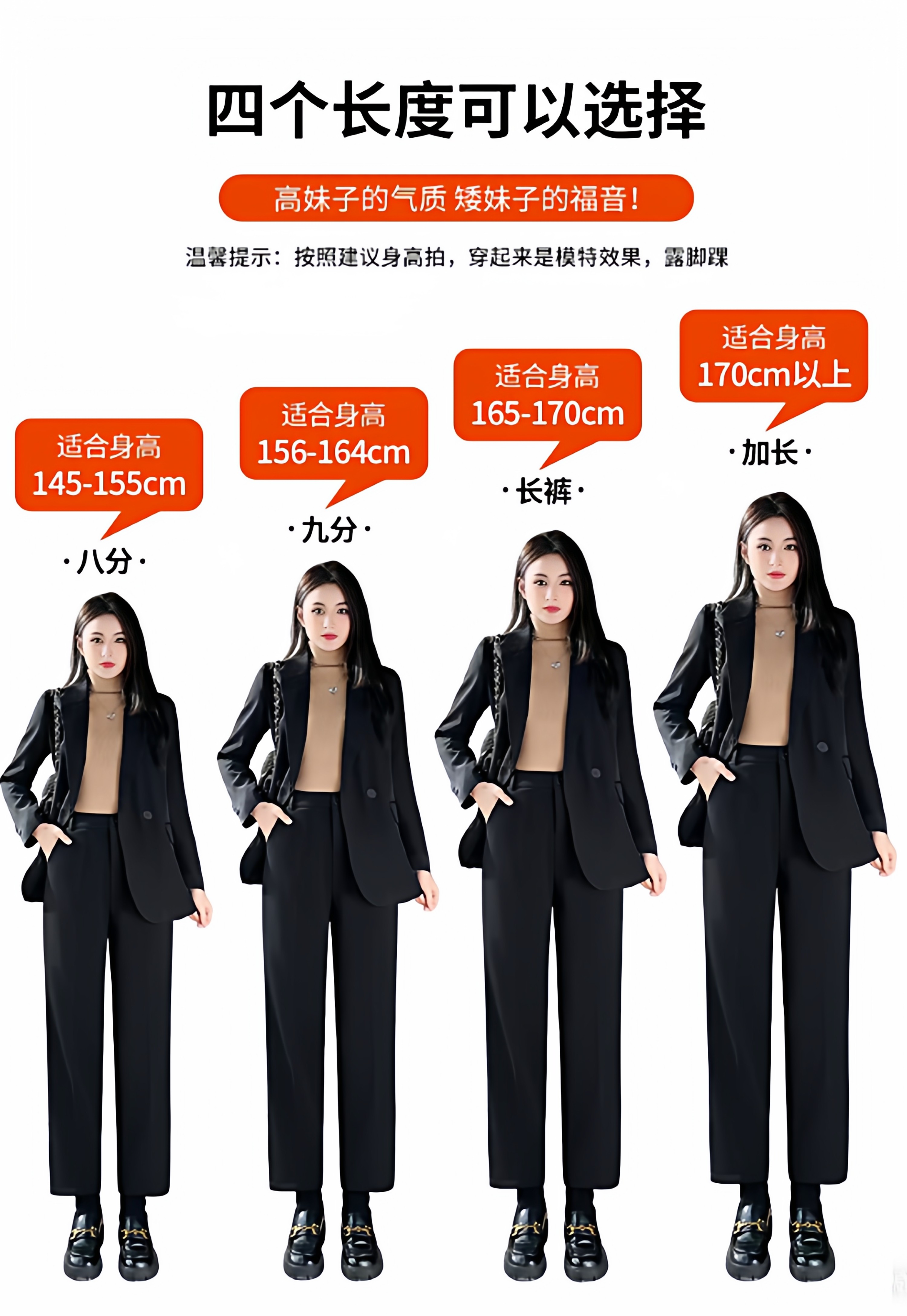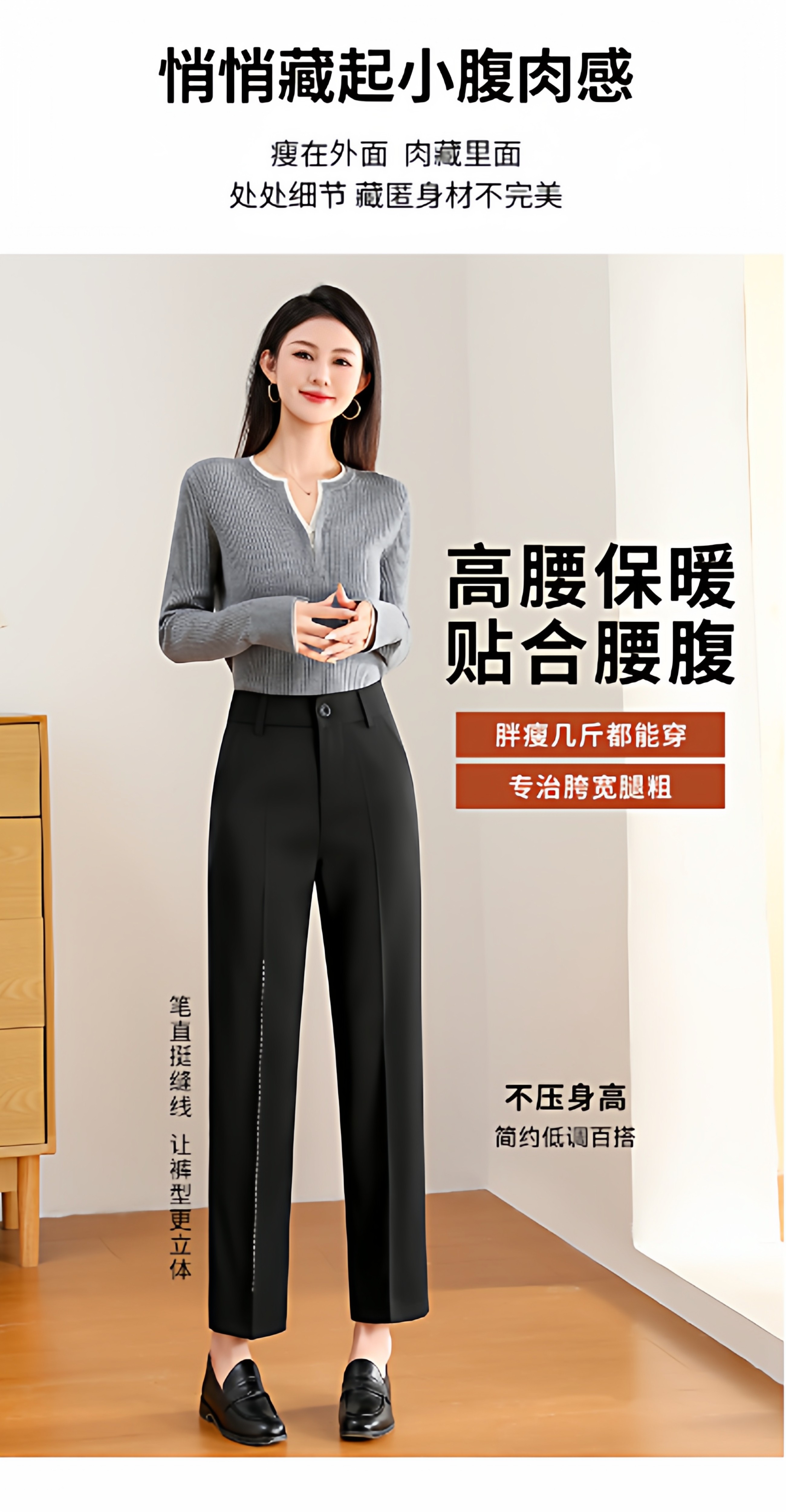 Navy Blue Fleece-Lined Straight-Leg Suit Pants for Women, 2025 Winter New Style, High-Waisted, Loose, Drapey, Thickened Casual Cigarette Pants