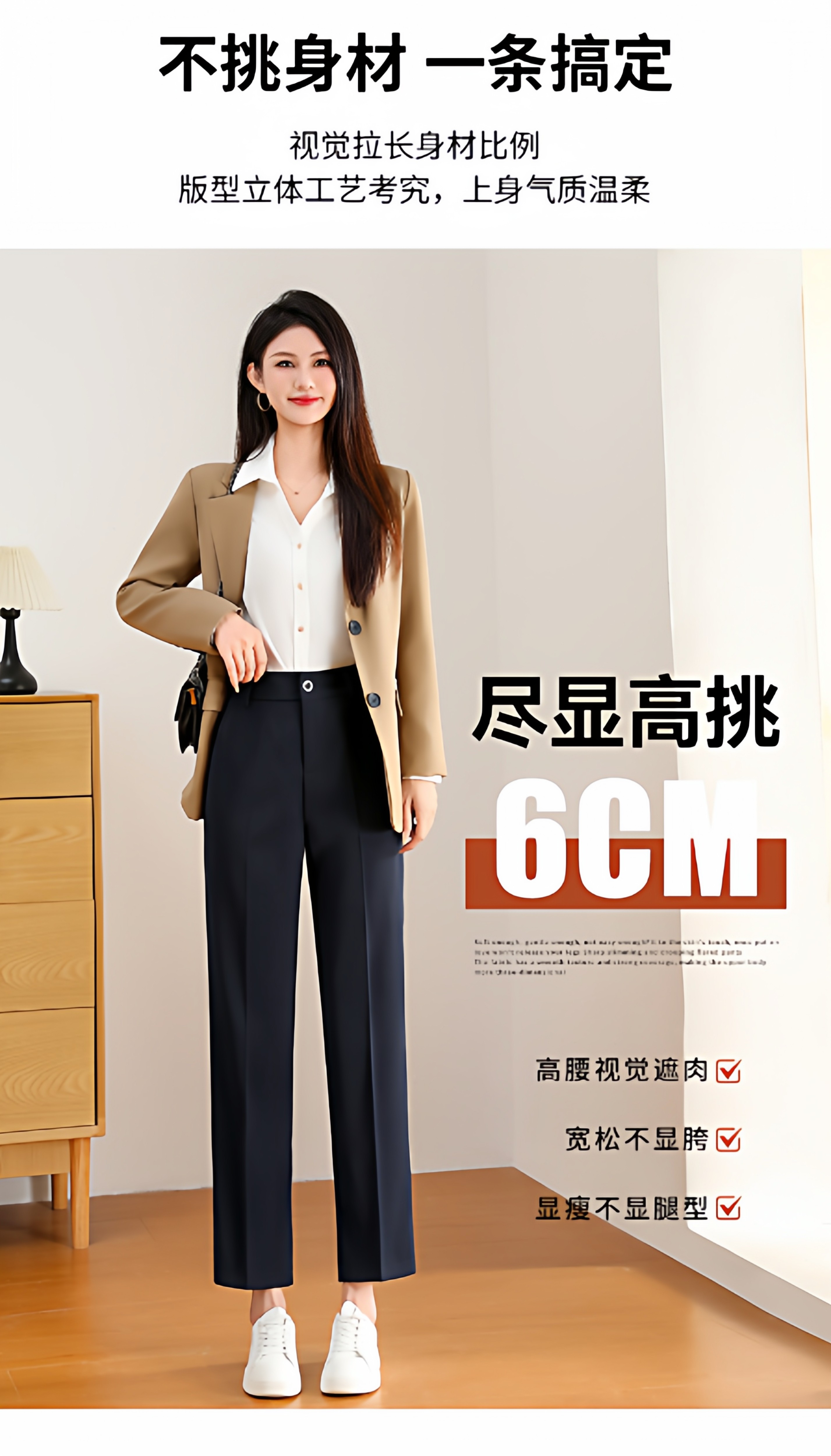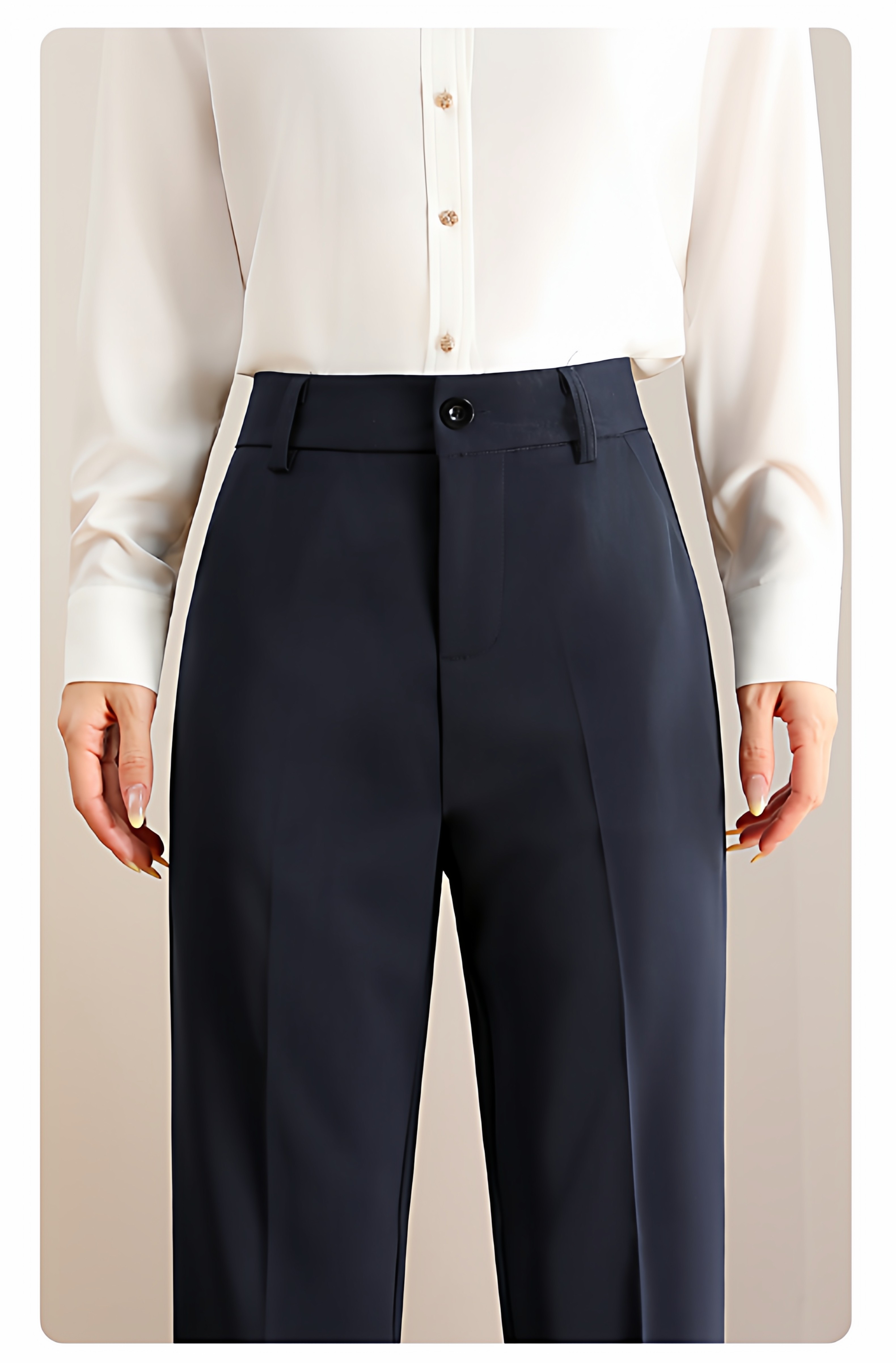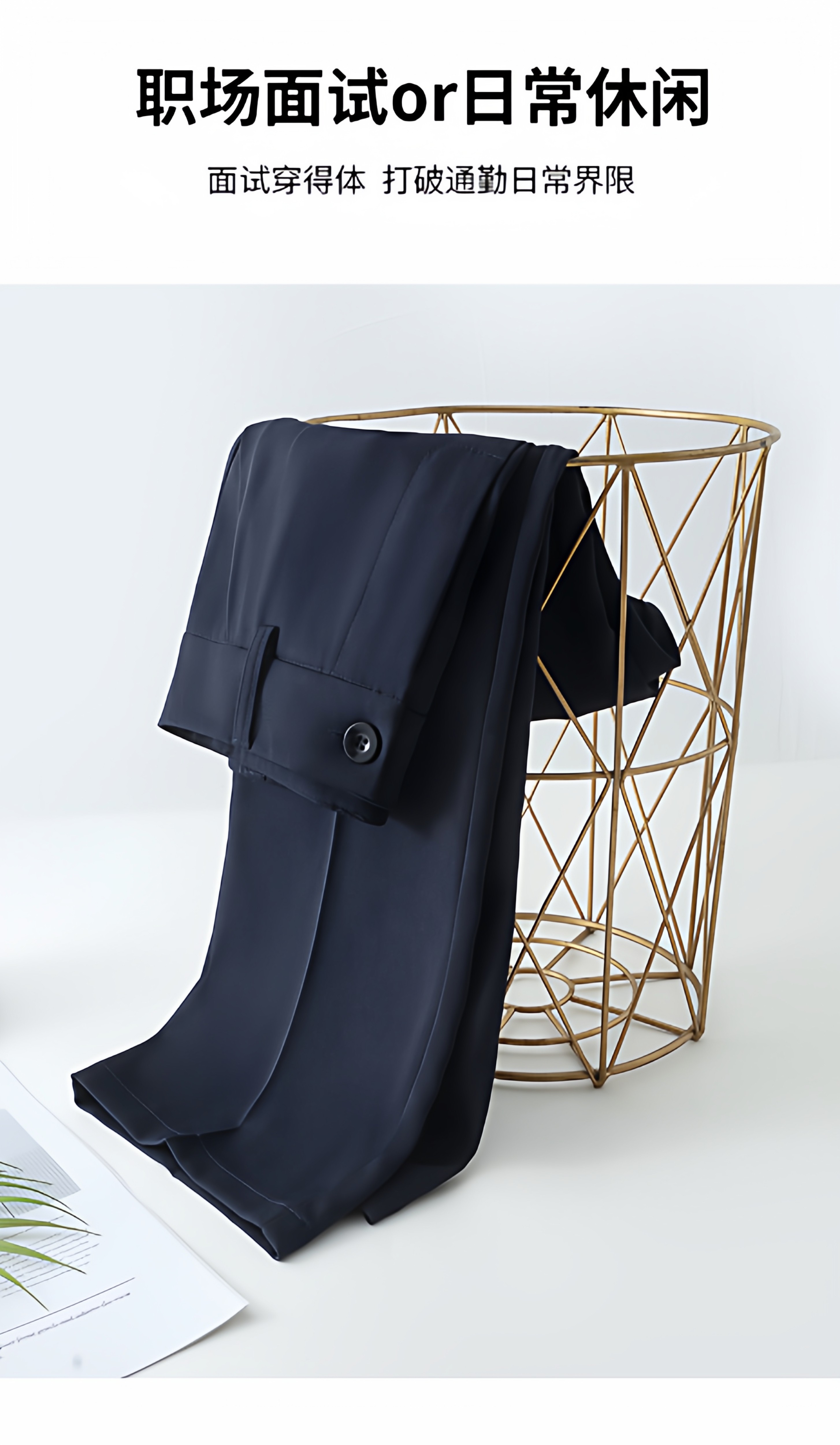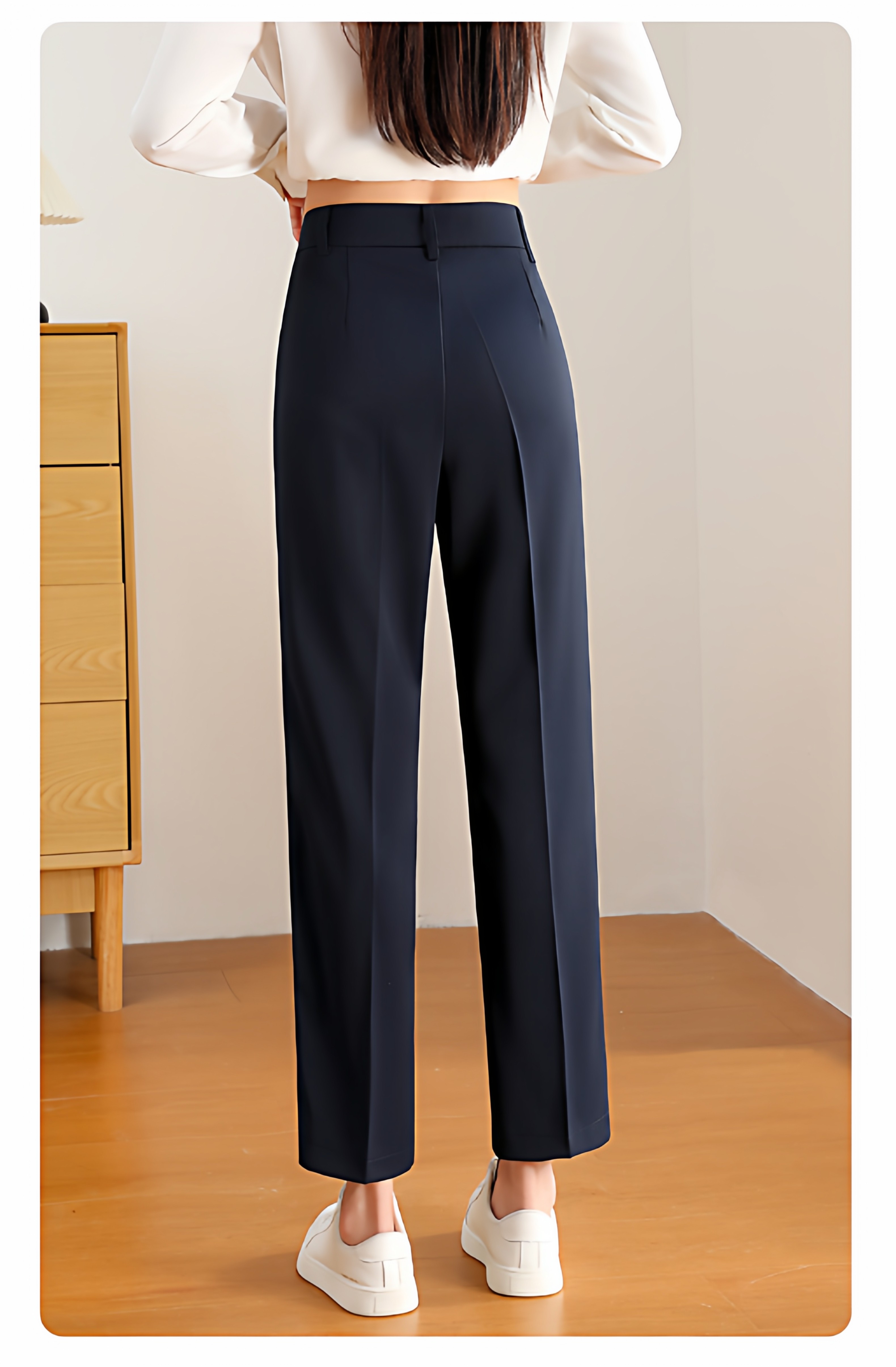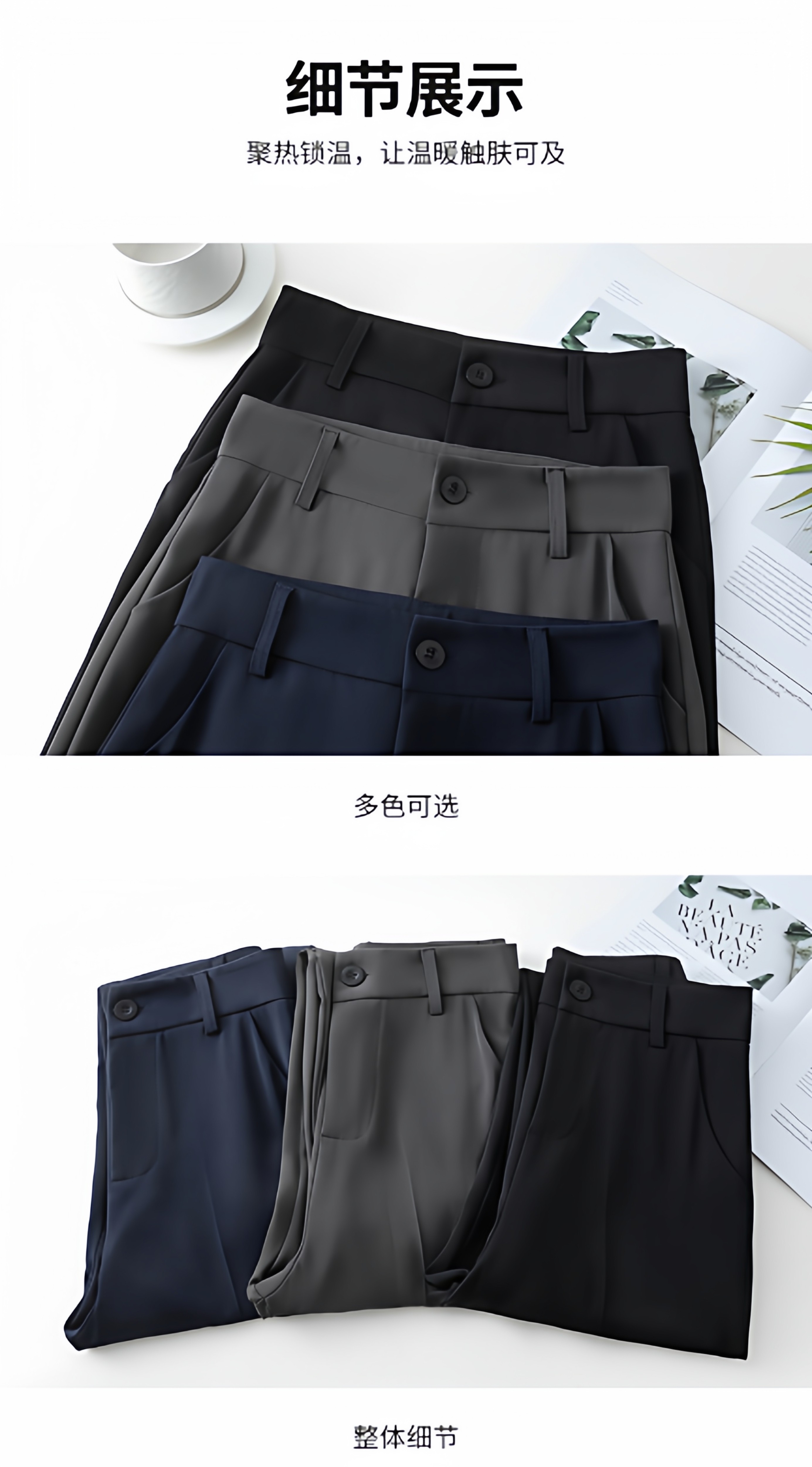 Navy Blue Fleece-Lined Straight-Leg Suit Pants for Women, 2025 Winter New Style, High-Waisted, Loose, Drapey, Thickened Casual Cigarette Pants