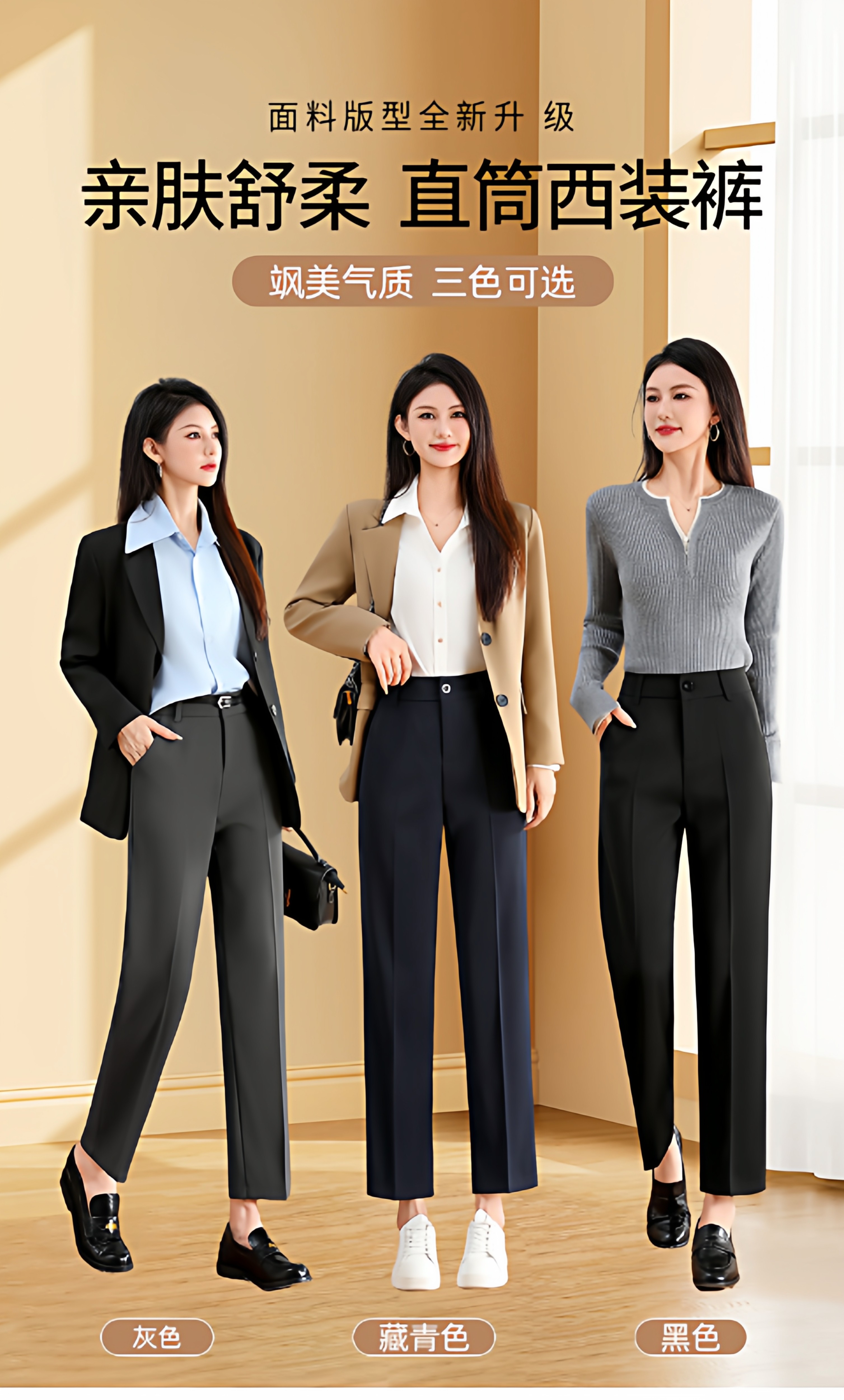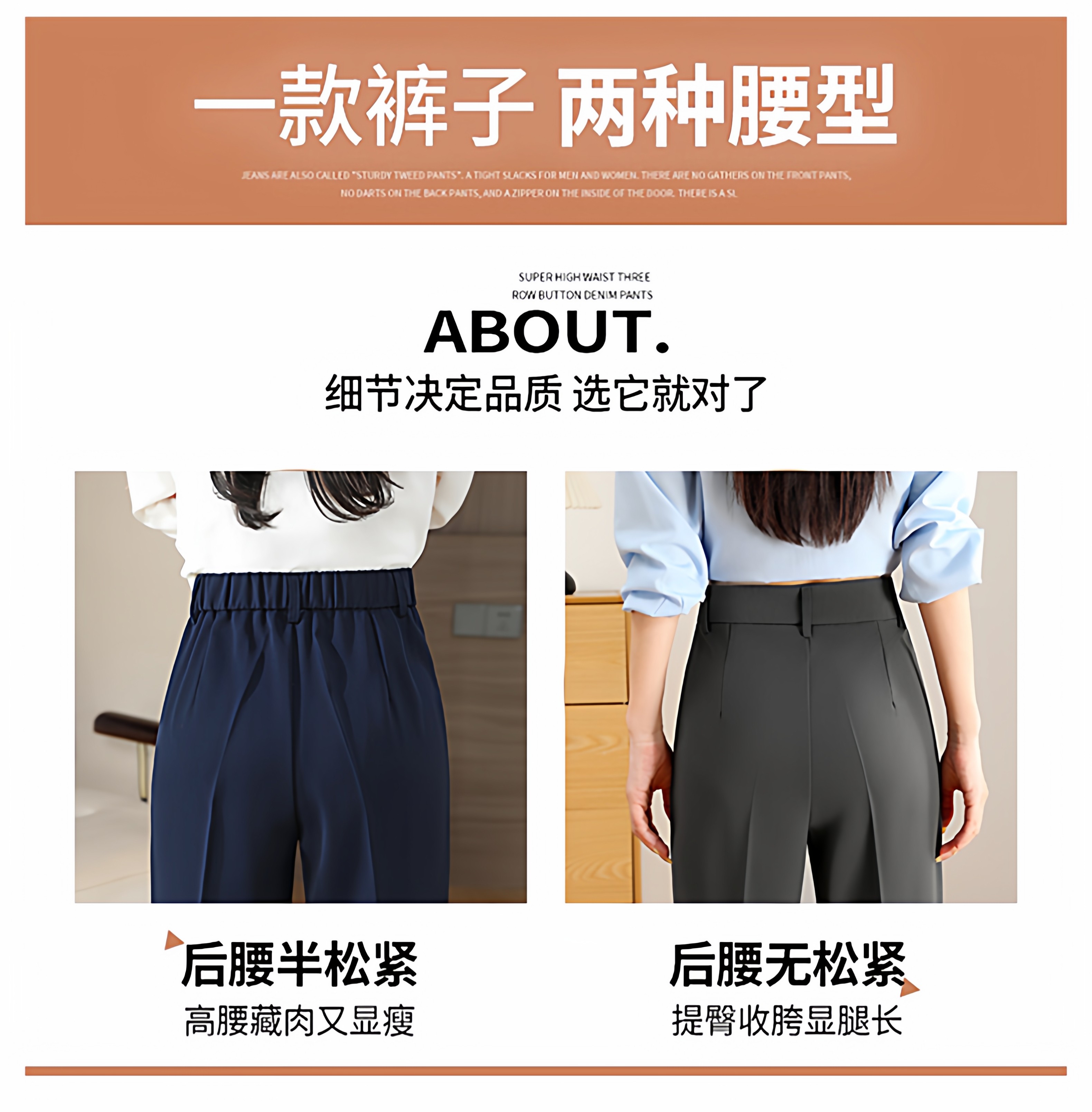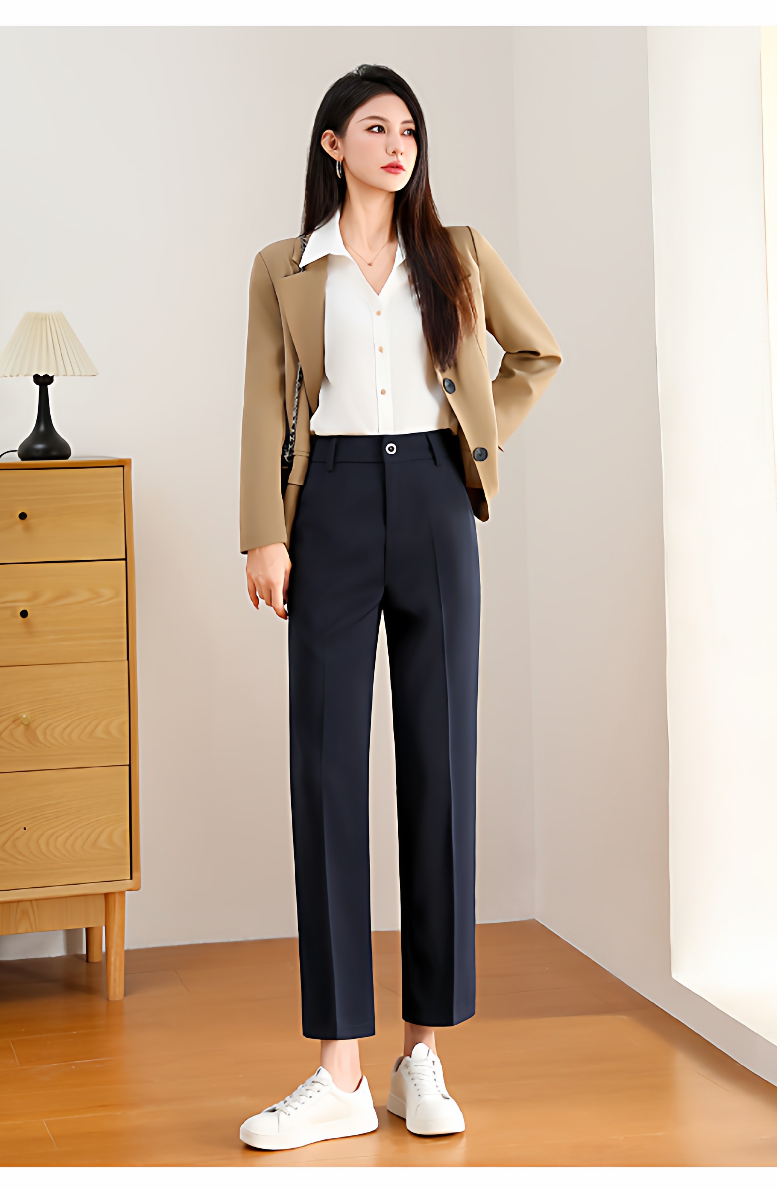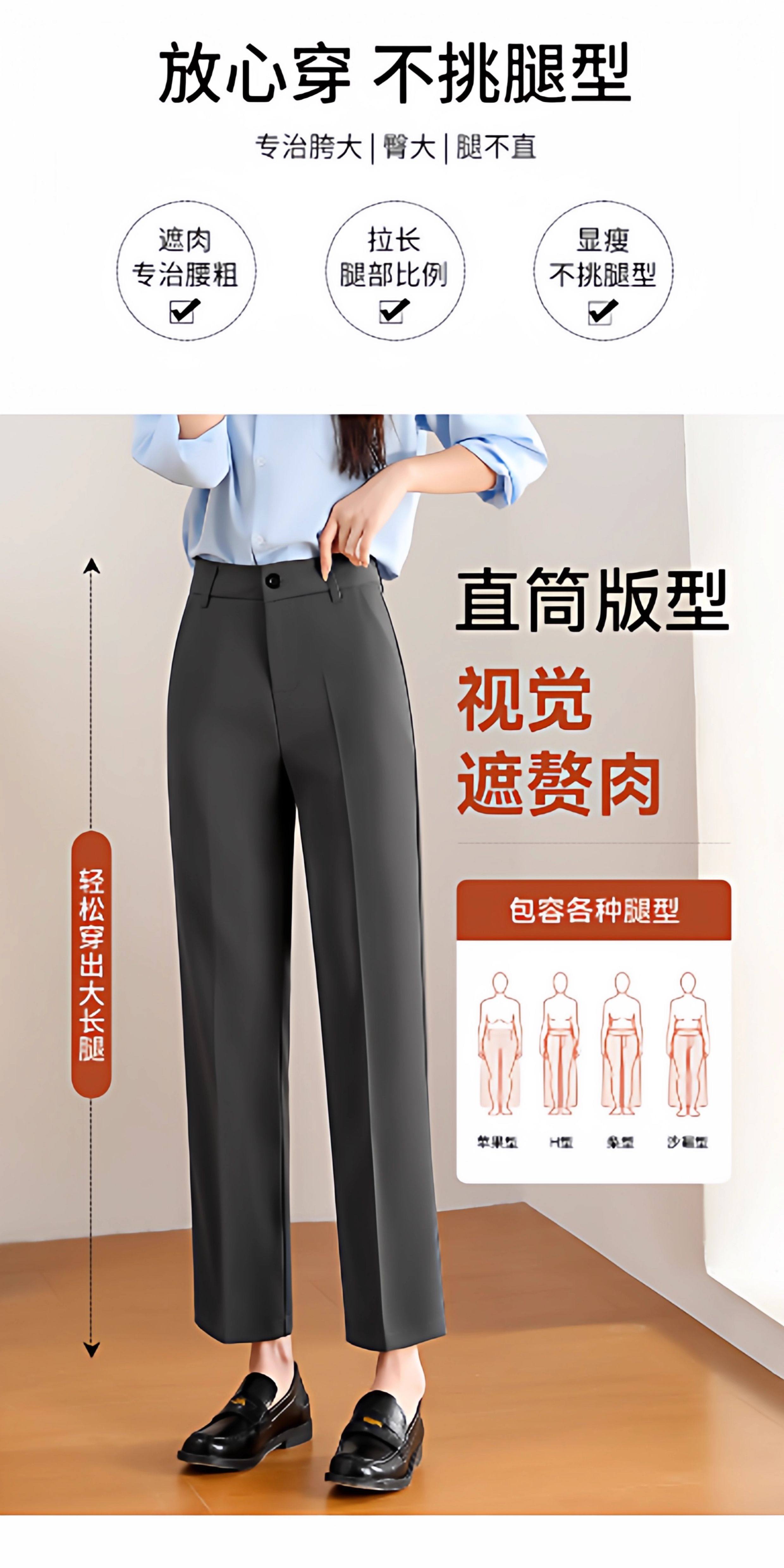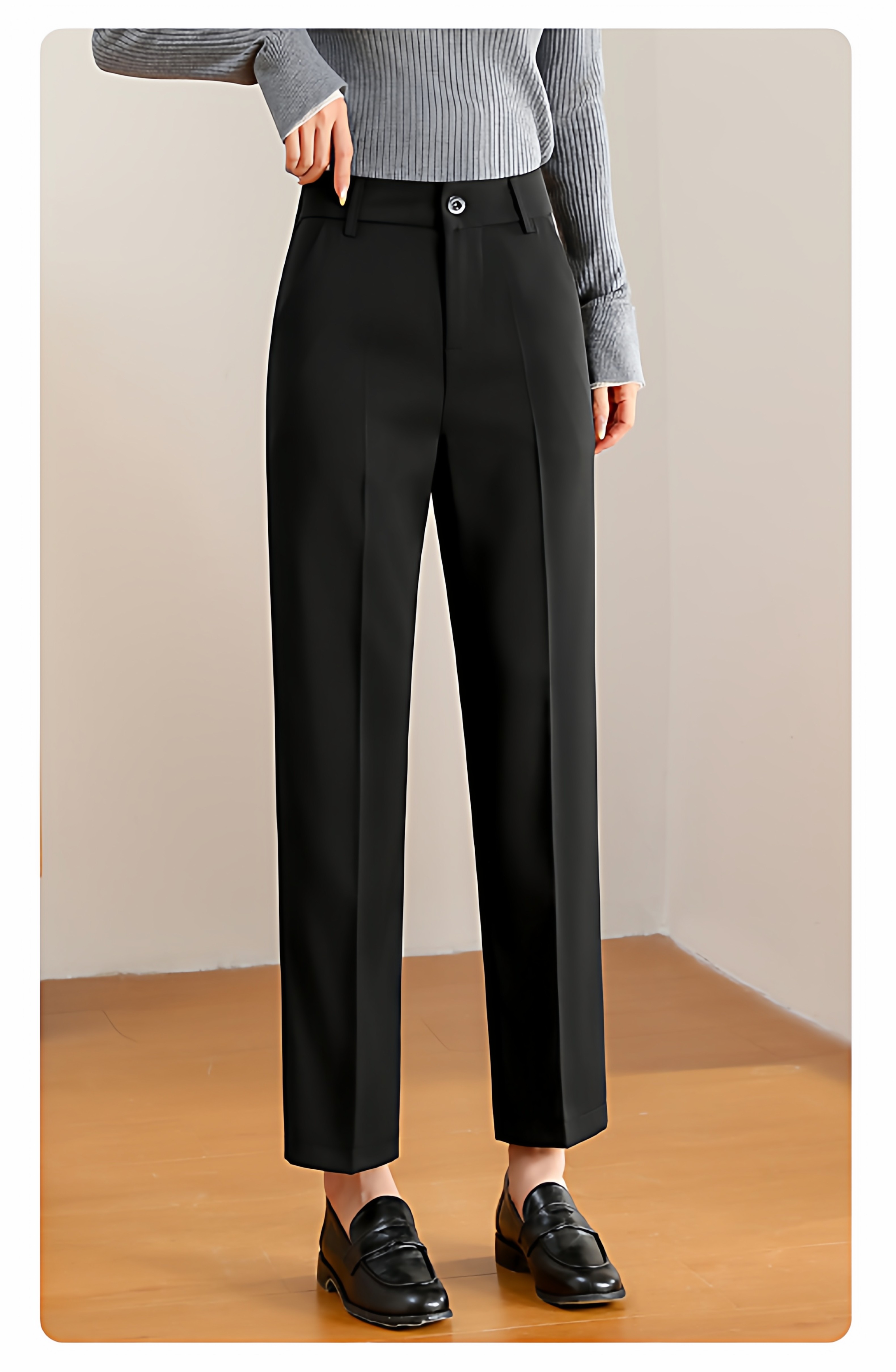 Navy Blue Fleece-Lined Straight-Leg Suit Pants for Women, 2025 Winter New Style, High-Waisted, Loose, Drapey, Thickened Casual Cigarette Pants