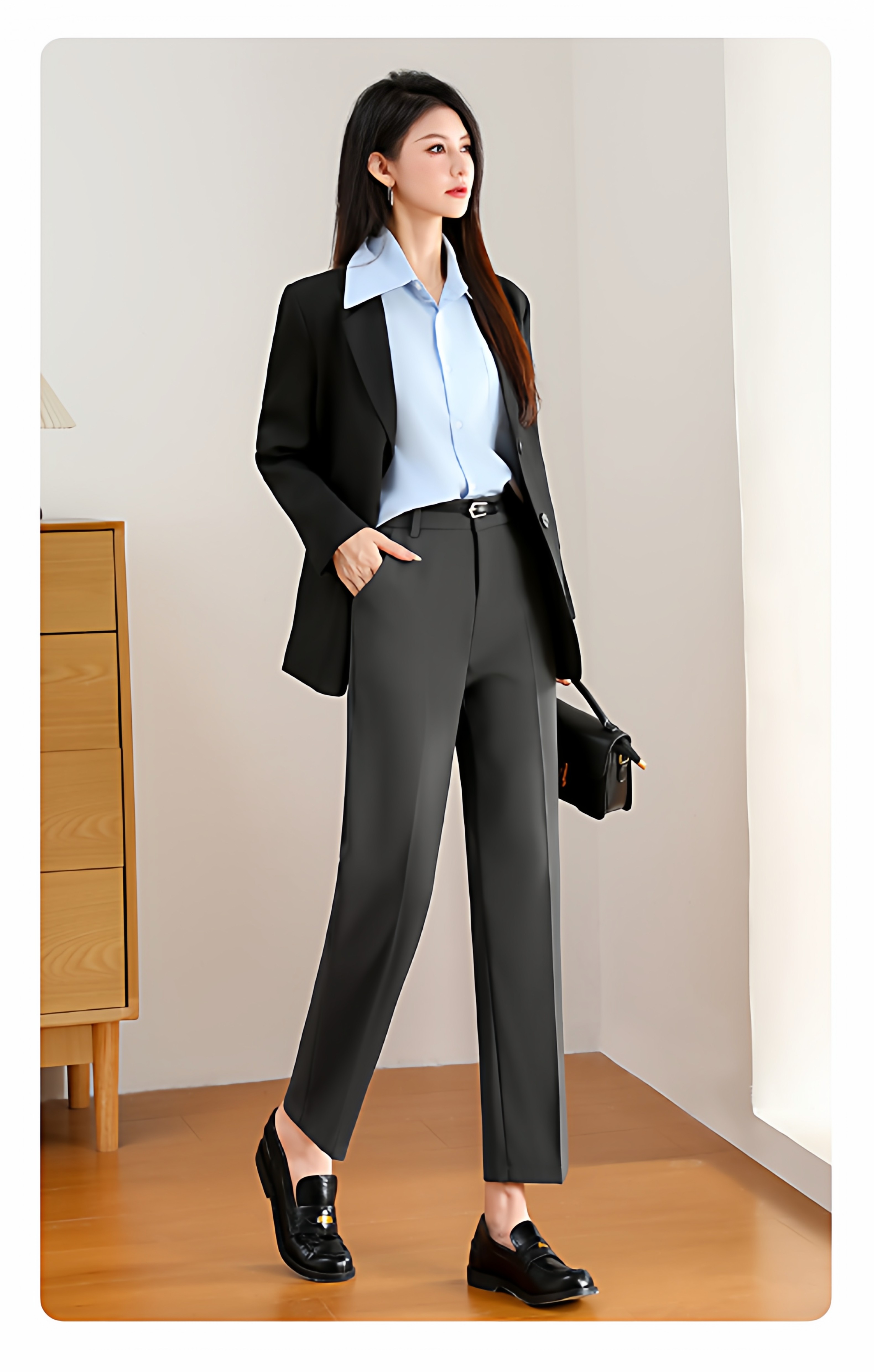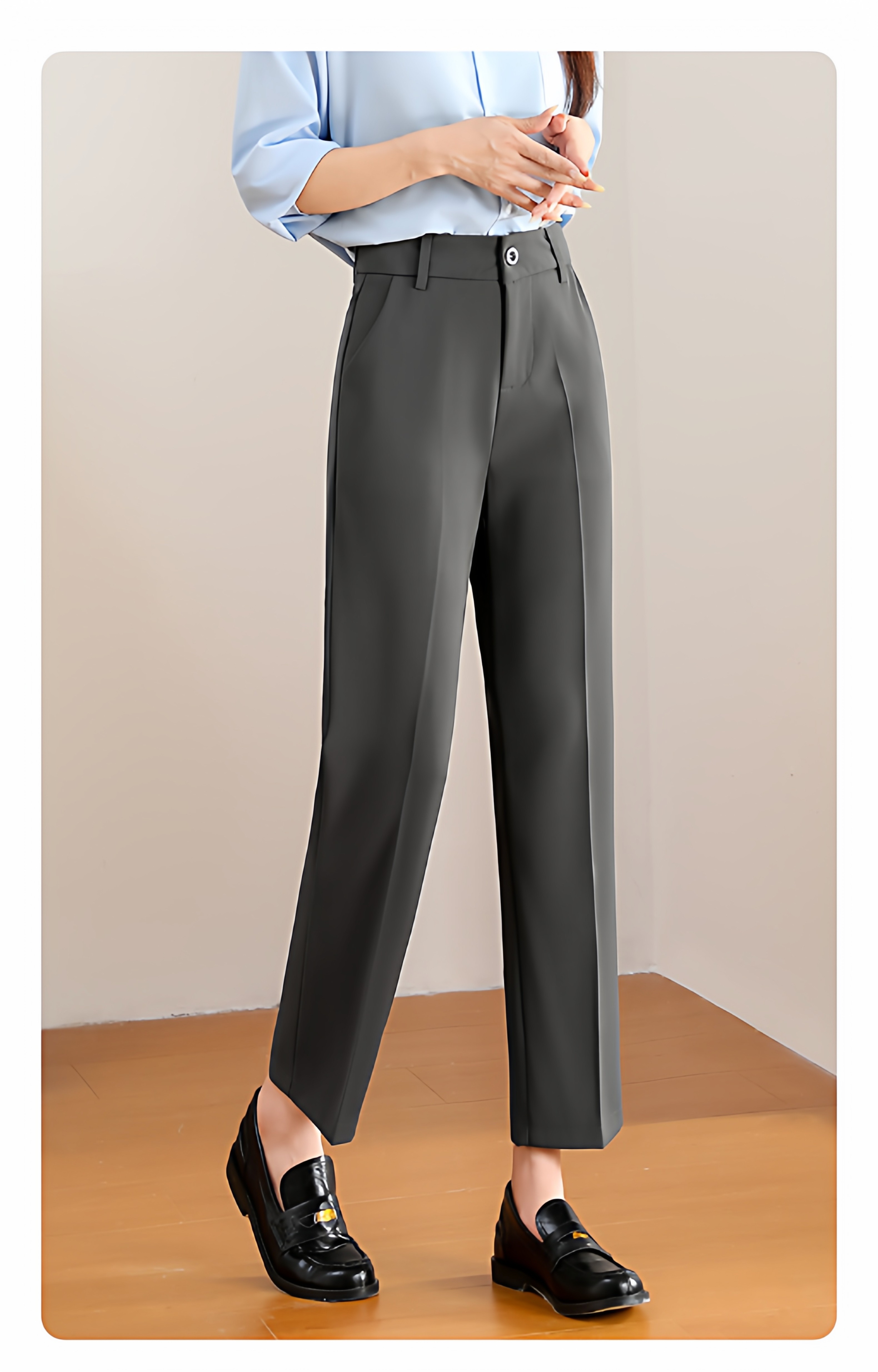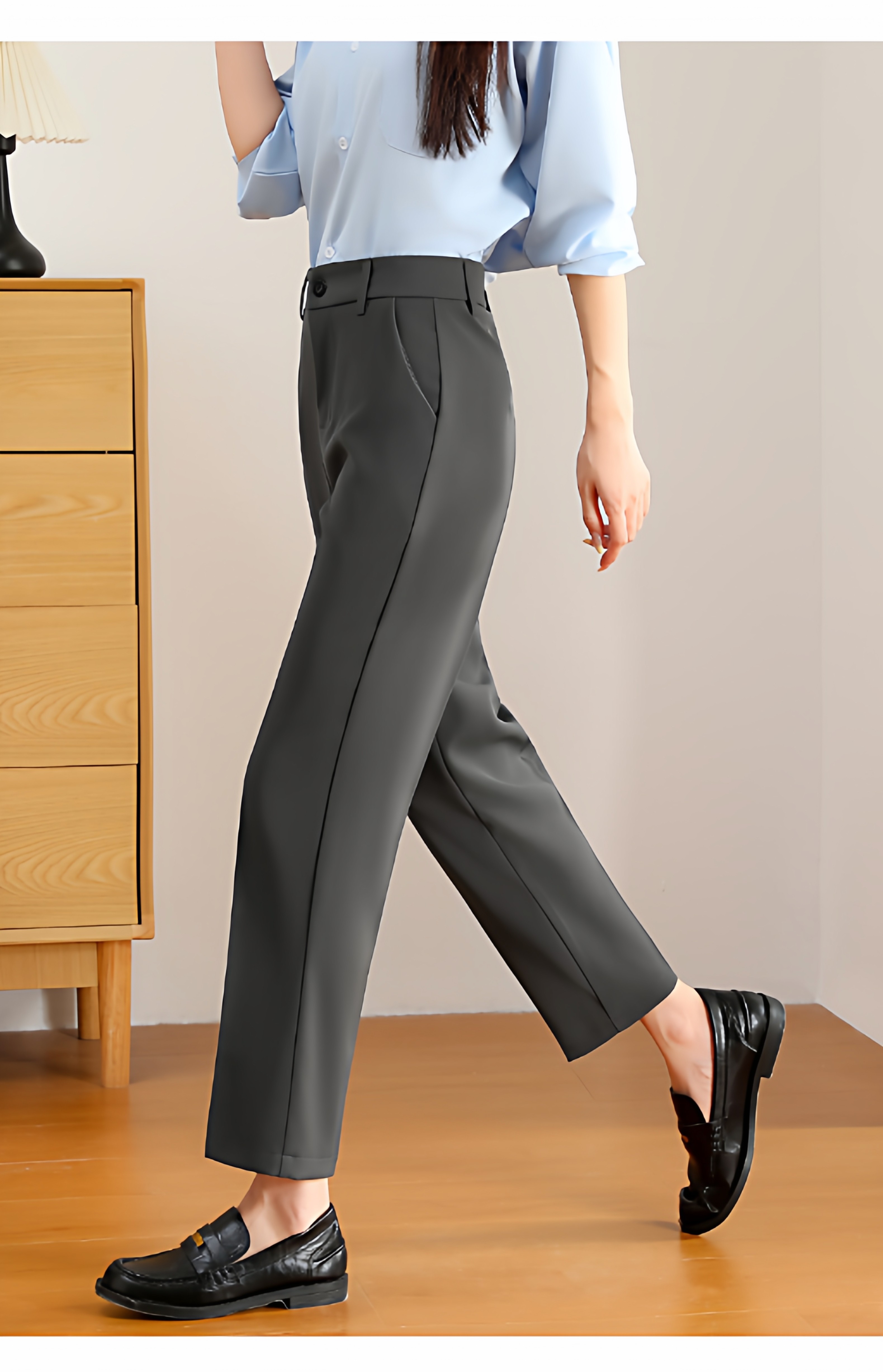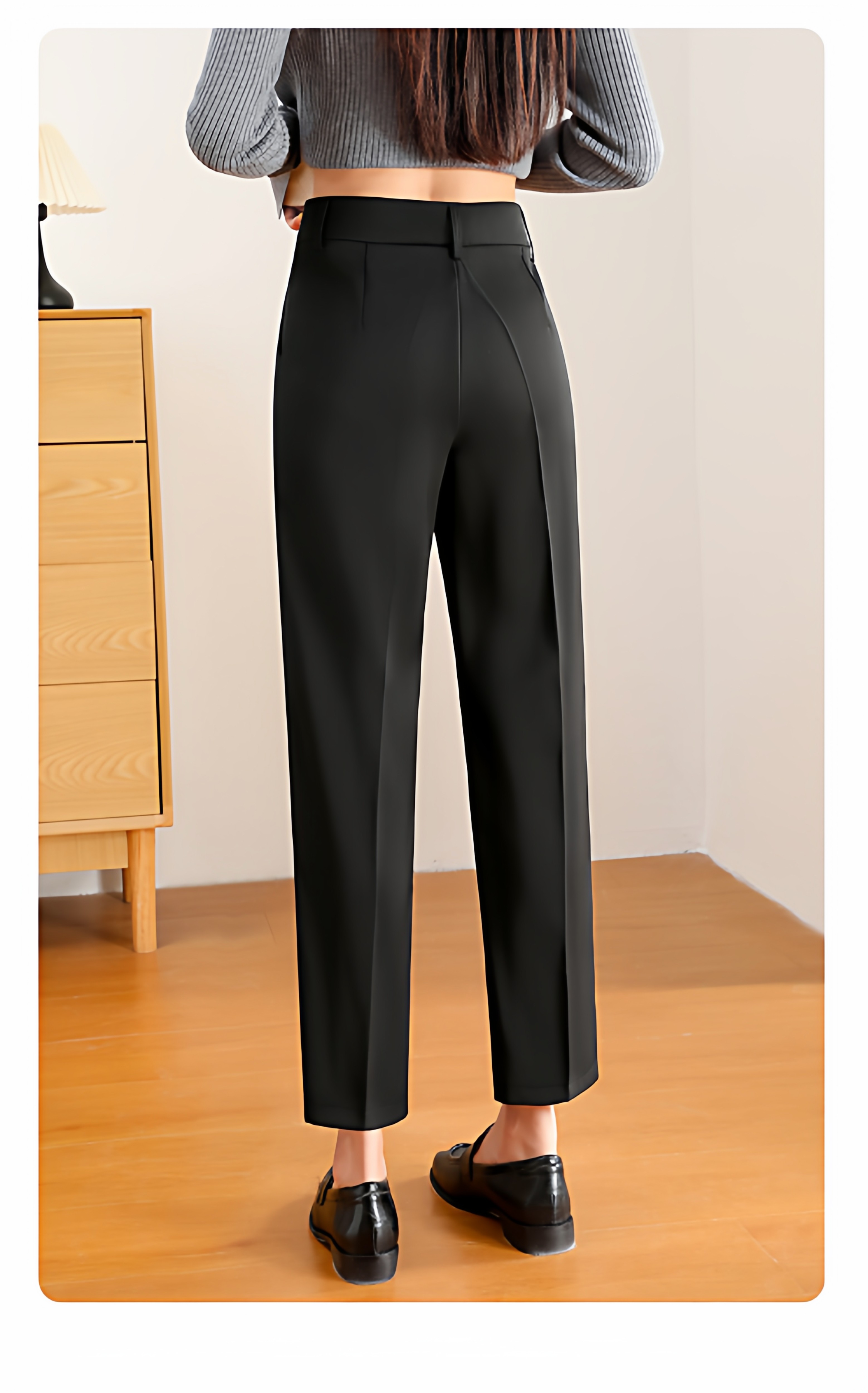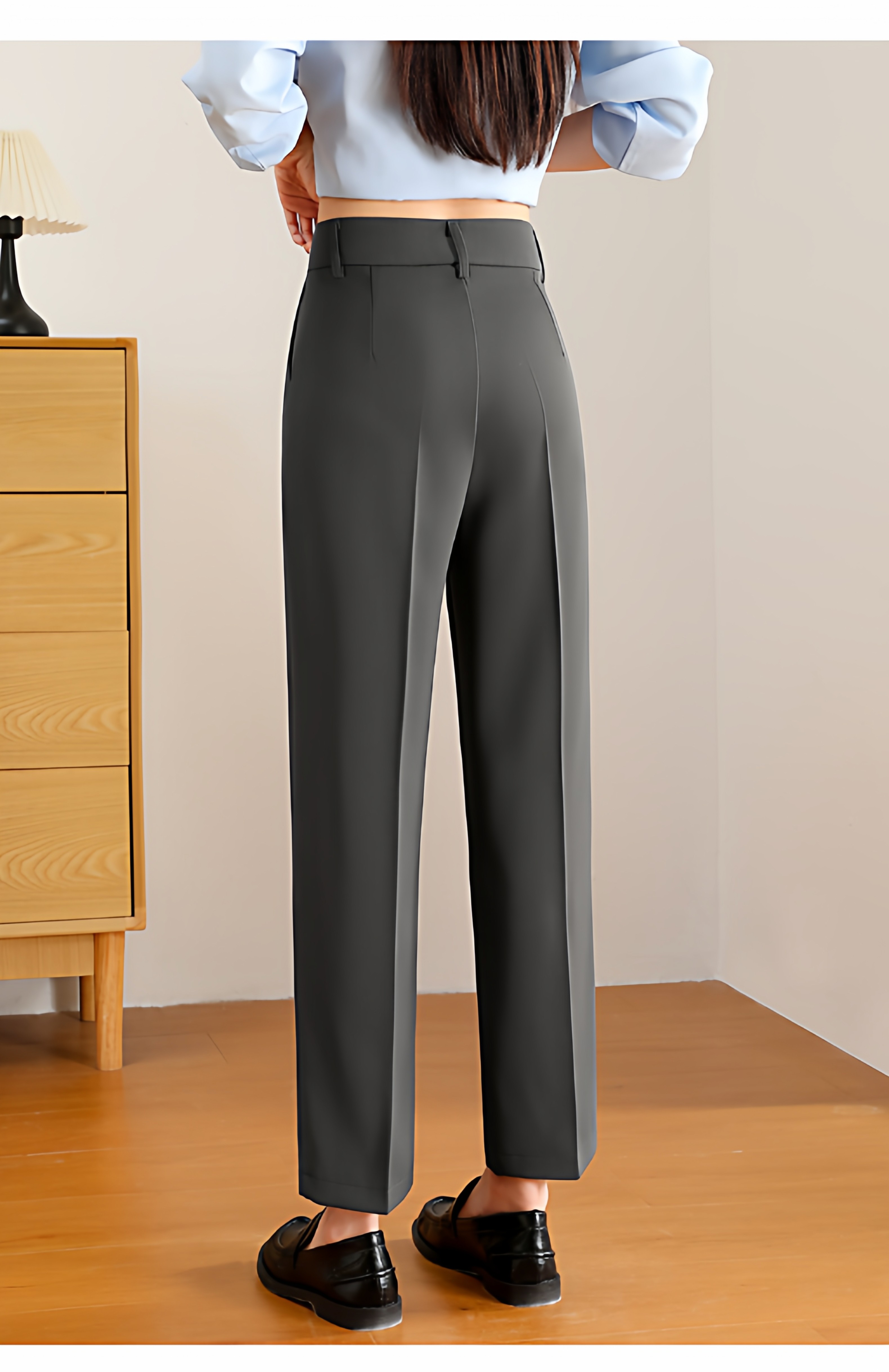 Navy Blue Fleece-Lined Straight-Leg Suit Pants for Women, 2025 Winter New Style, High-Waisted, Loose, Drapey, Thickened Casual Cigarette Pants