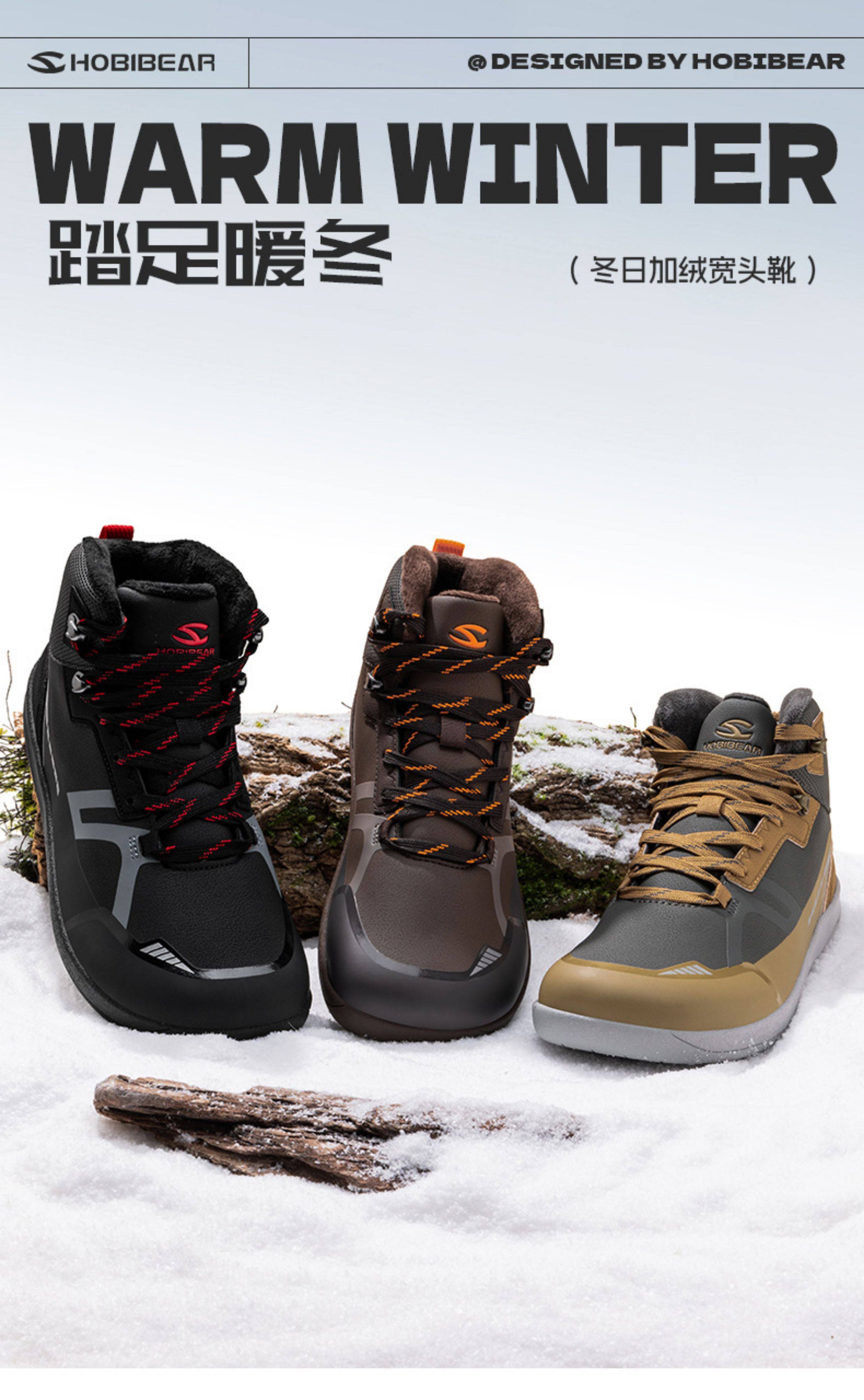 Hobibear Wide-Toe Shoes for Men, Fleece-Lined Winter Short Boots, Outdoor Double-Layer Cotton Sneakers, Wide-Toe Boots, Casual Shoes, Couple Shoes