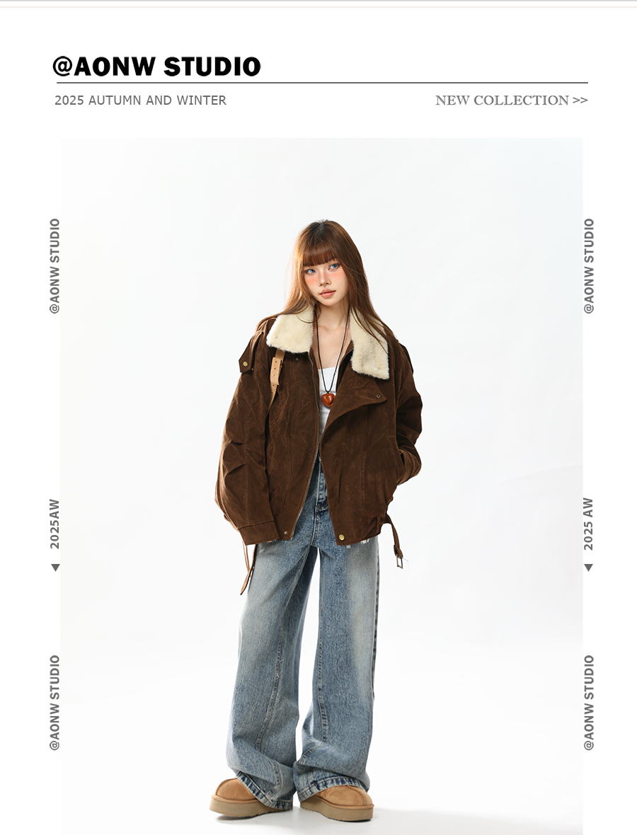 Aonw Winter New Style Barn-Style Retro Suede Fur Collar Parka Cotton Coat for Women with a Sense of Design, Quilted Lapel Jacket