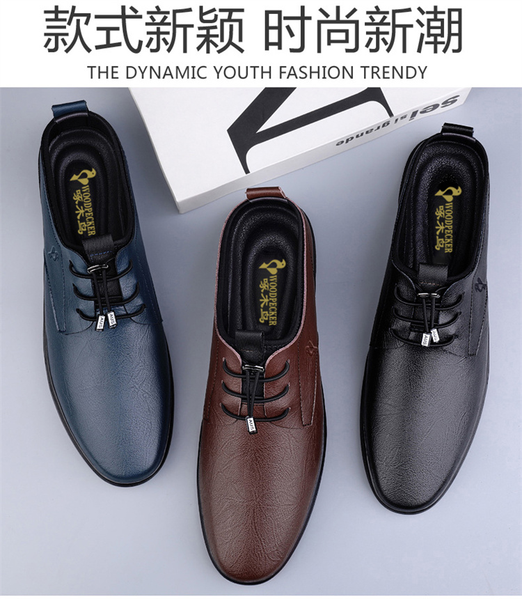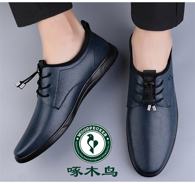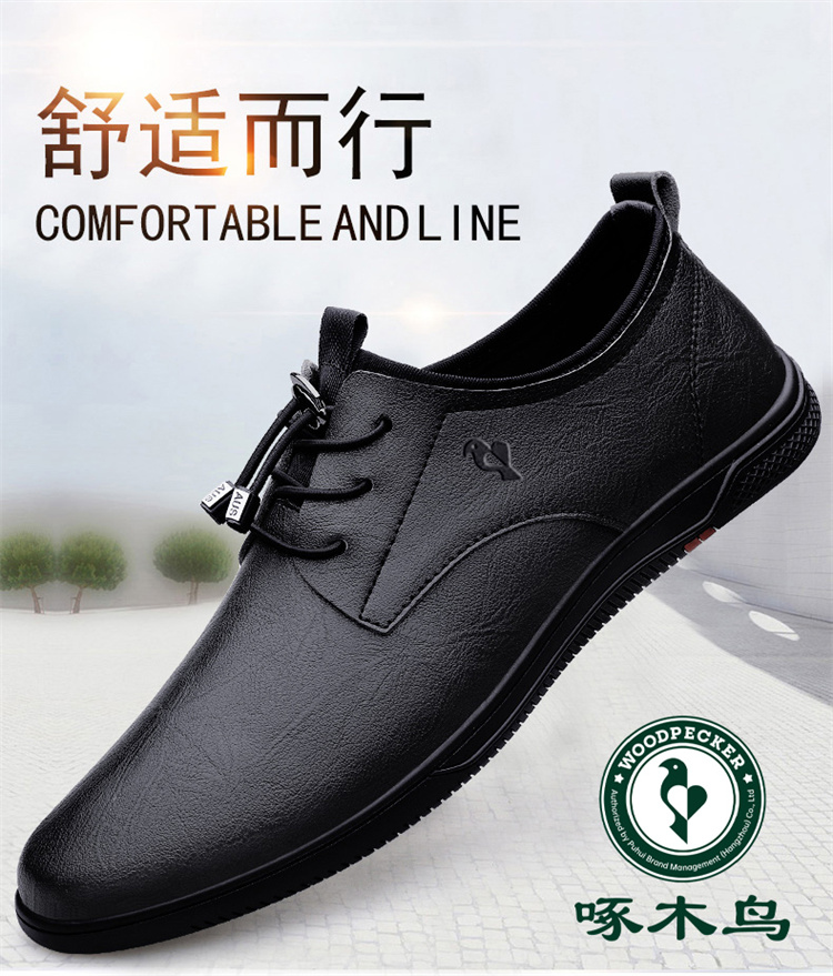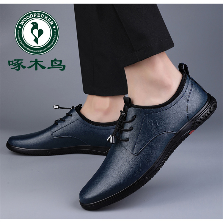 Woodpecker Brand Men's Shoes Genuine Leather Breathable Casual Leather Shoes Men's Slip-On Youth Trendy Shoes Soft Sole Cowhide Shoes