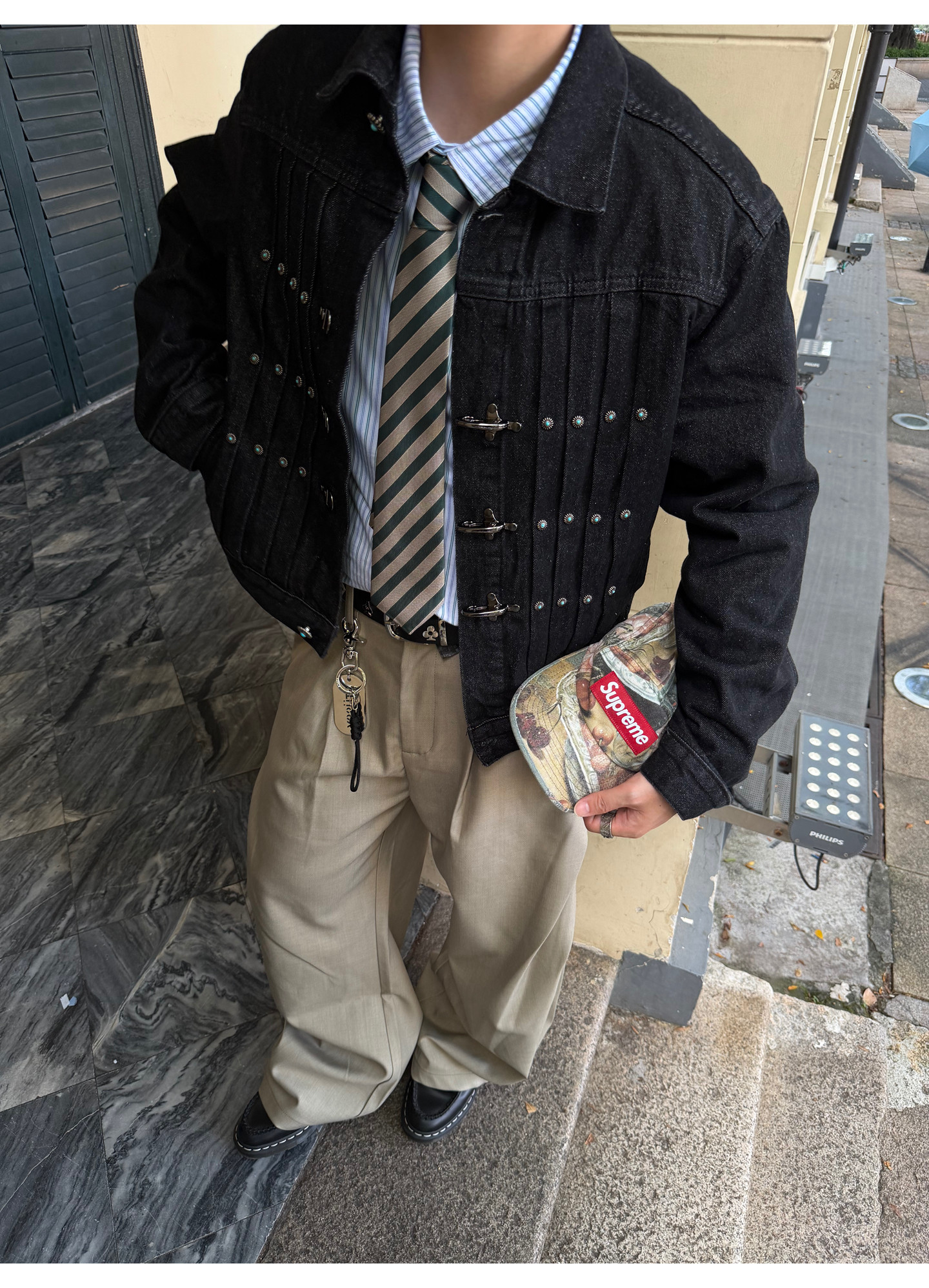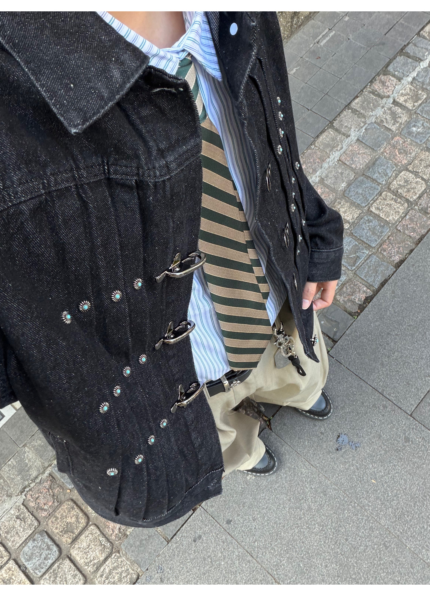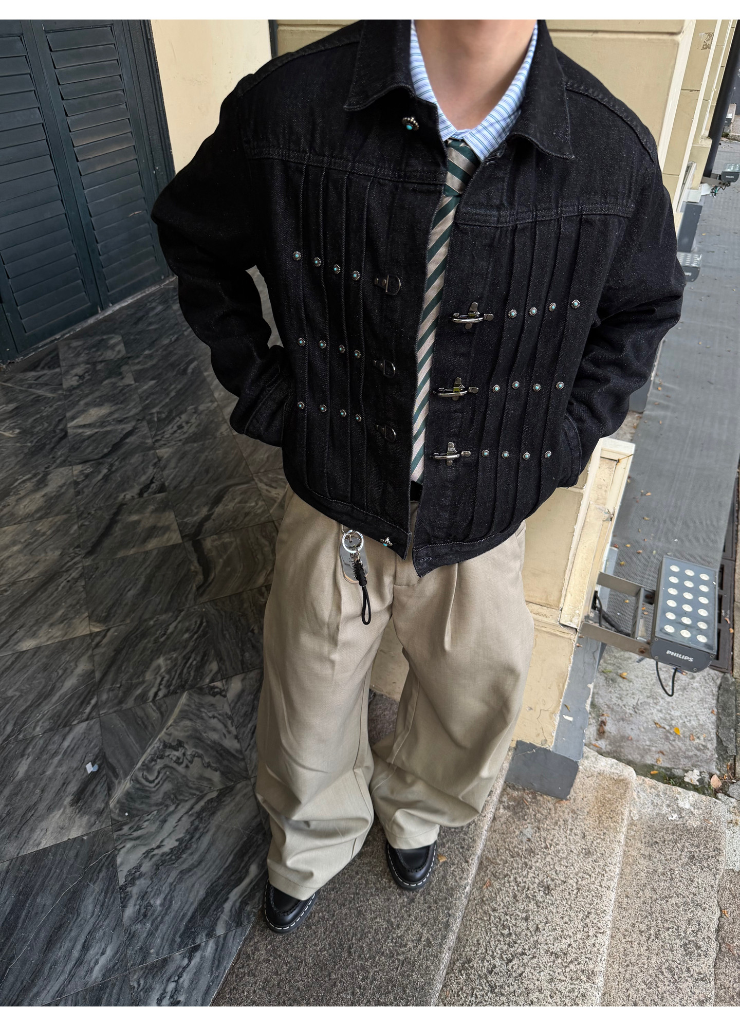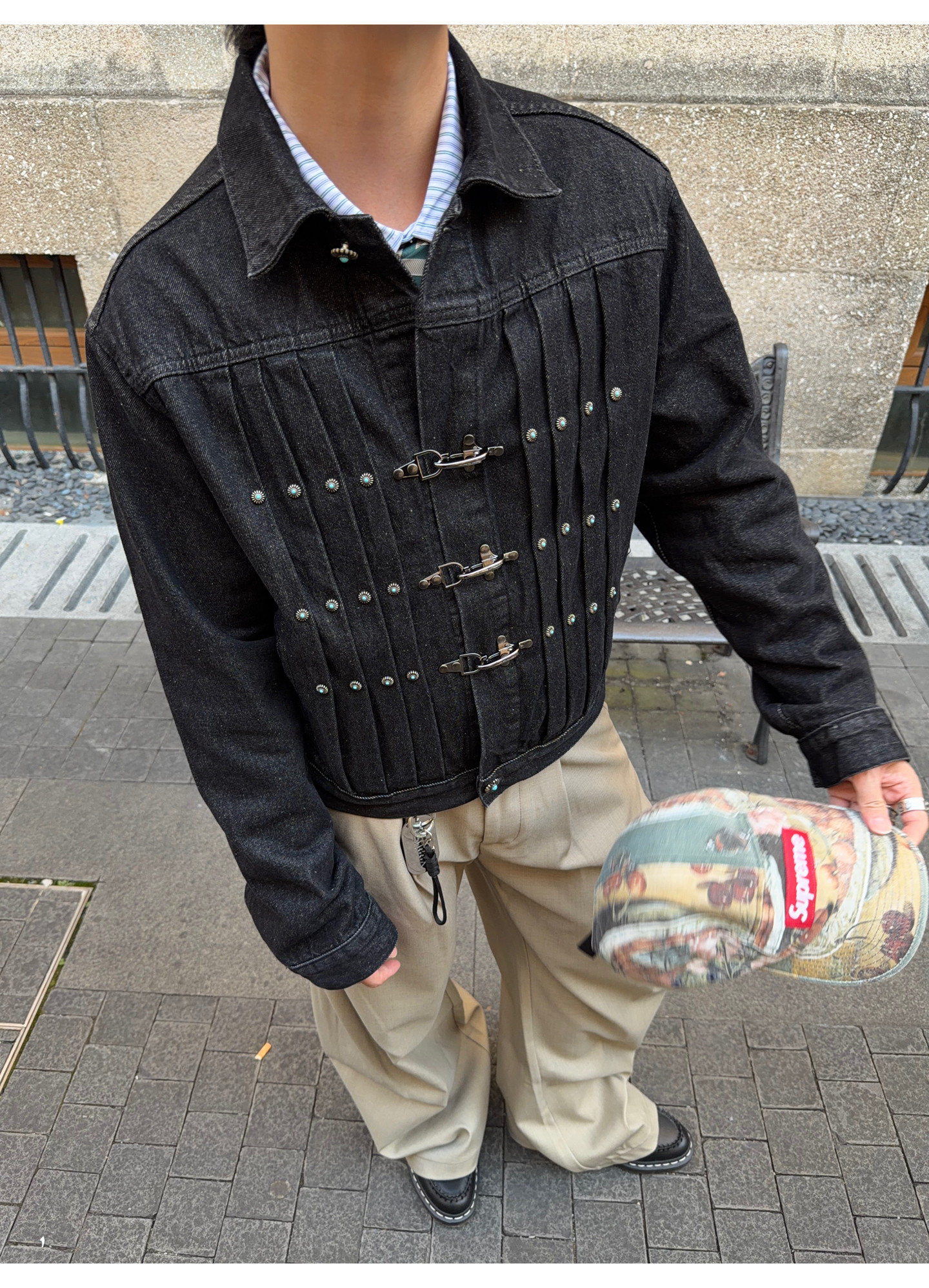 Fateegg American Retro Short Original Denim Jacket Boxy Casual Pleated Design with Airplane Buckle Coat