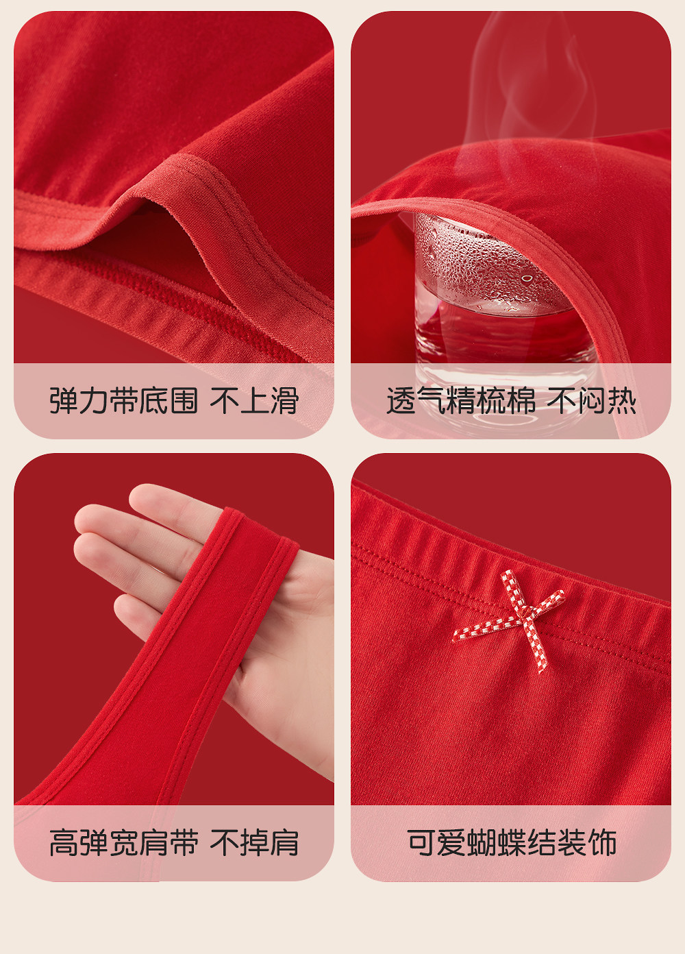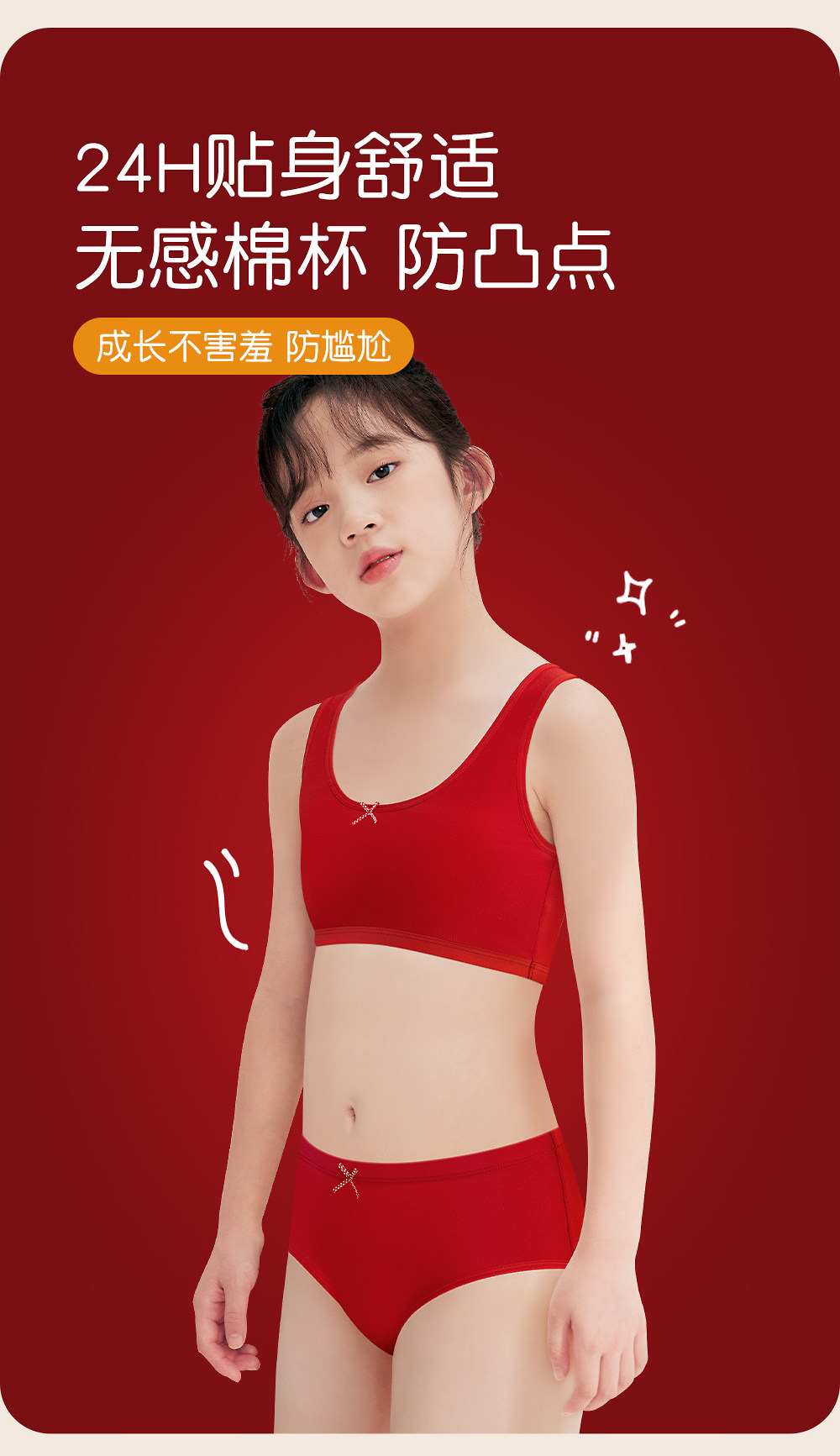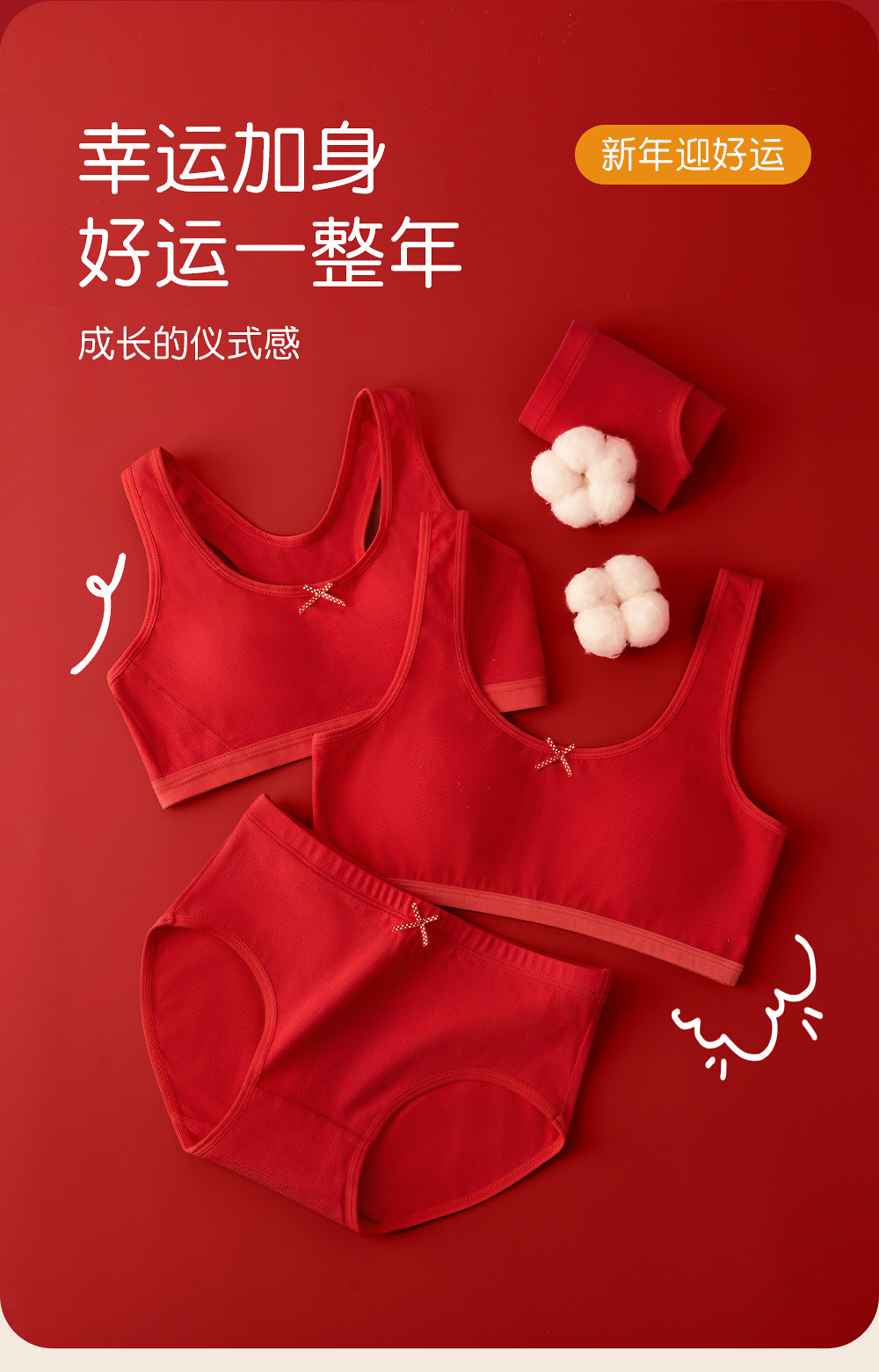 12-Year-Old Girl's Zodiac Year Underwear Set, Red Pure Cotton Student Bra, Year of the Horse 2025