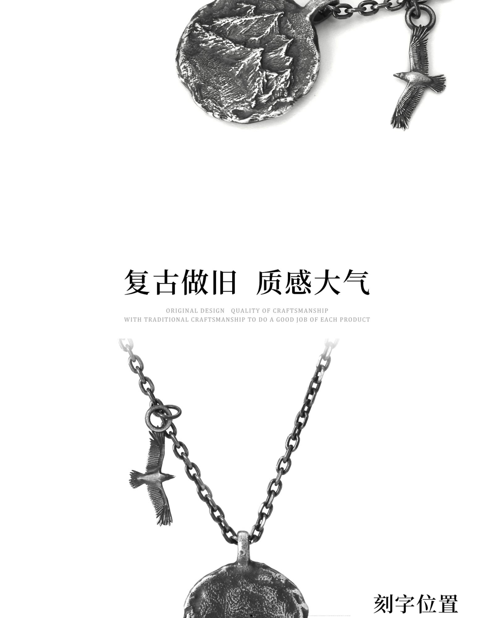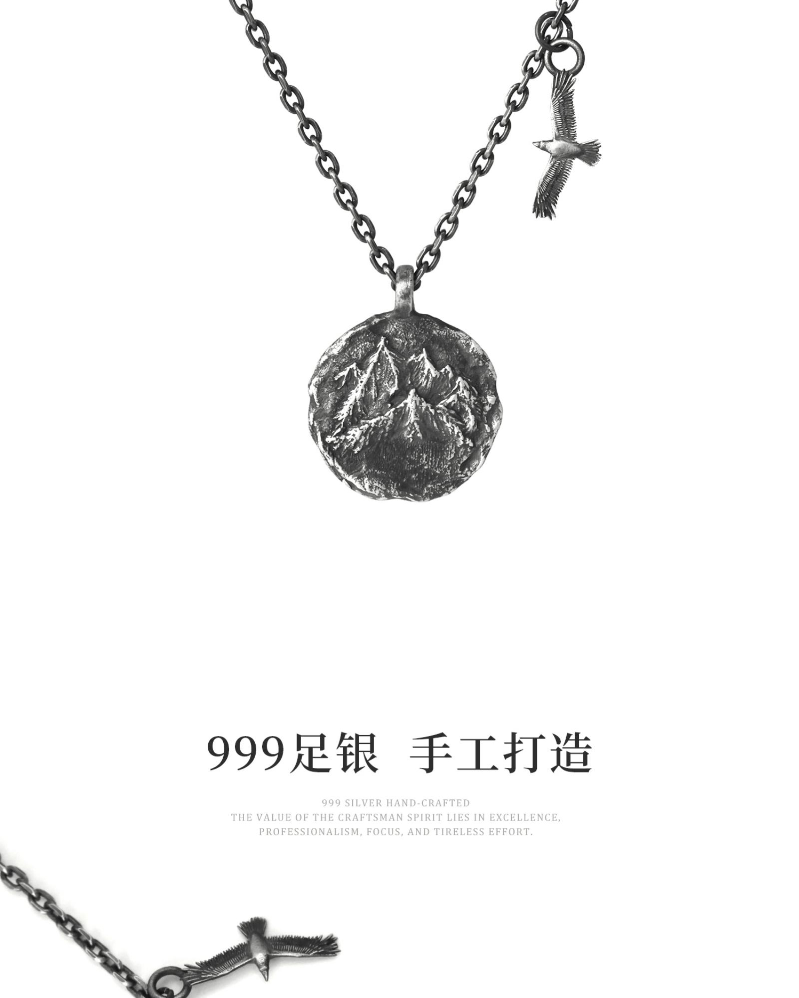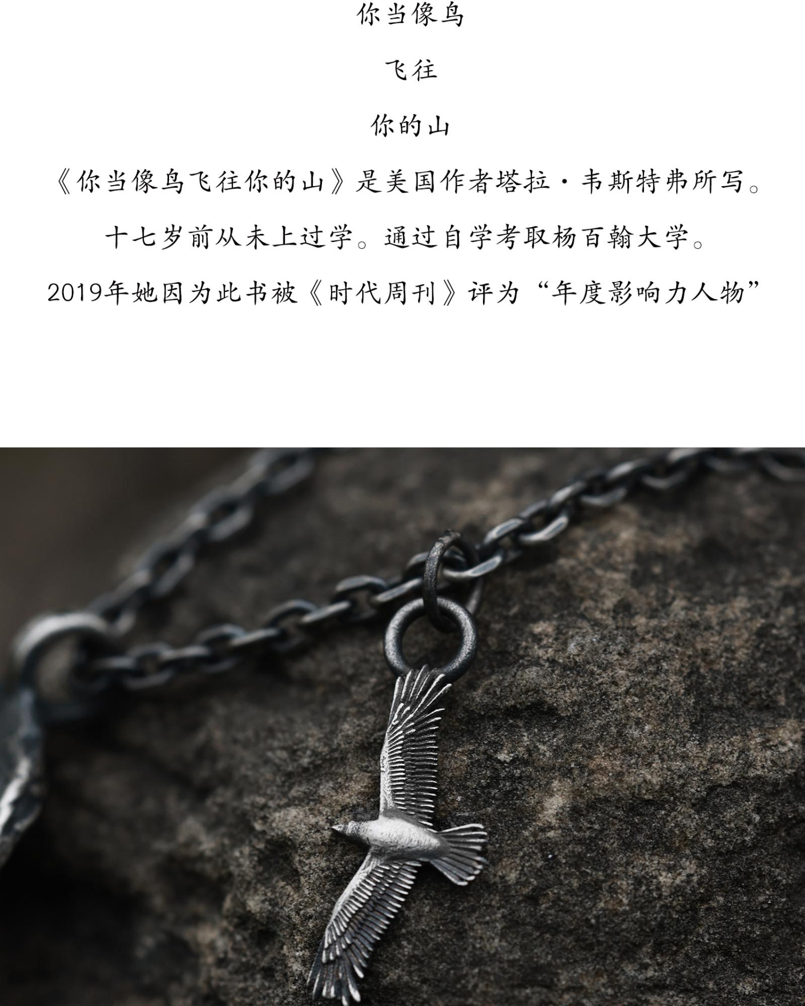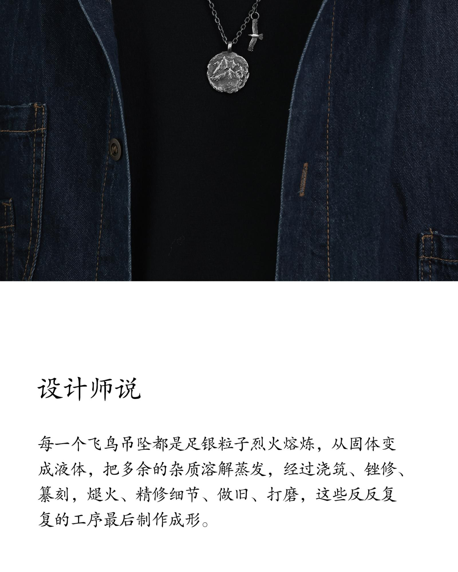 Yinshu Original "Flying Bird" Necklace for Men, 999 Pure Silver Handmade Men's Design, Niche Men's Pendant, Vintage