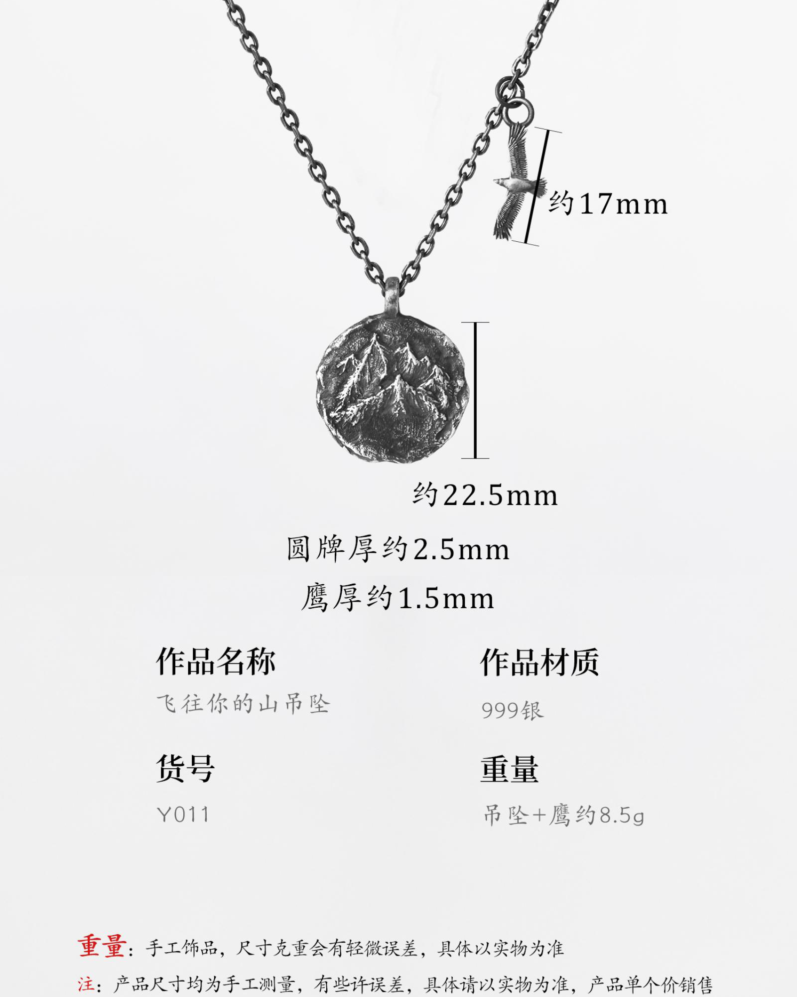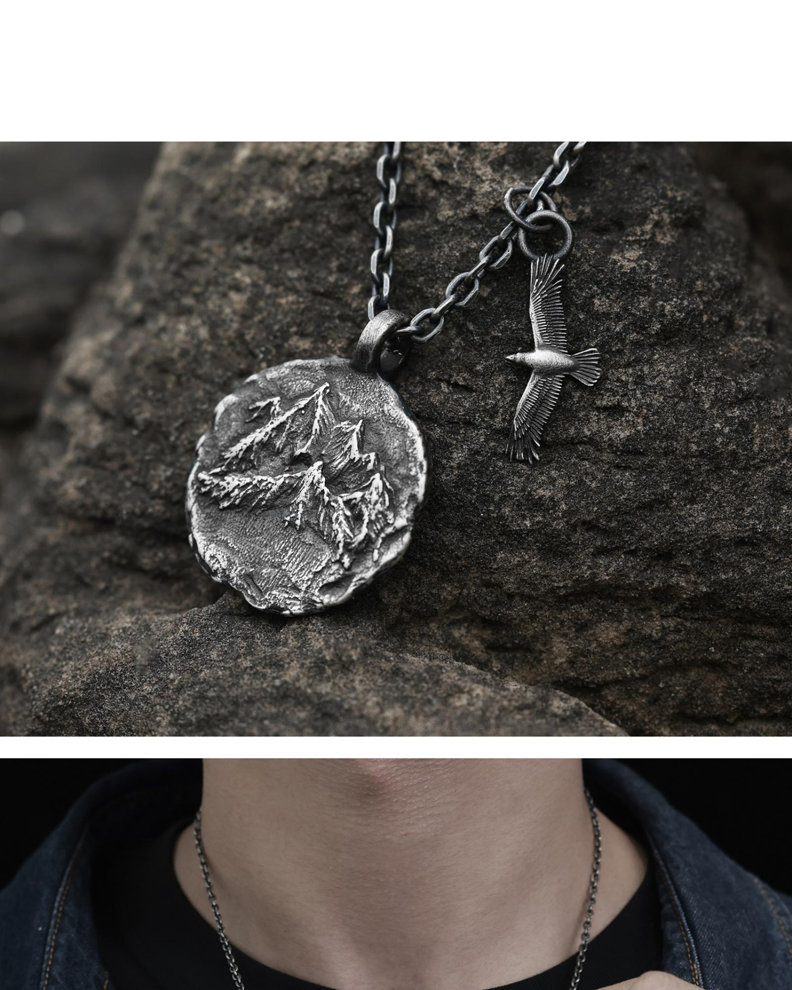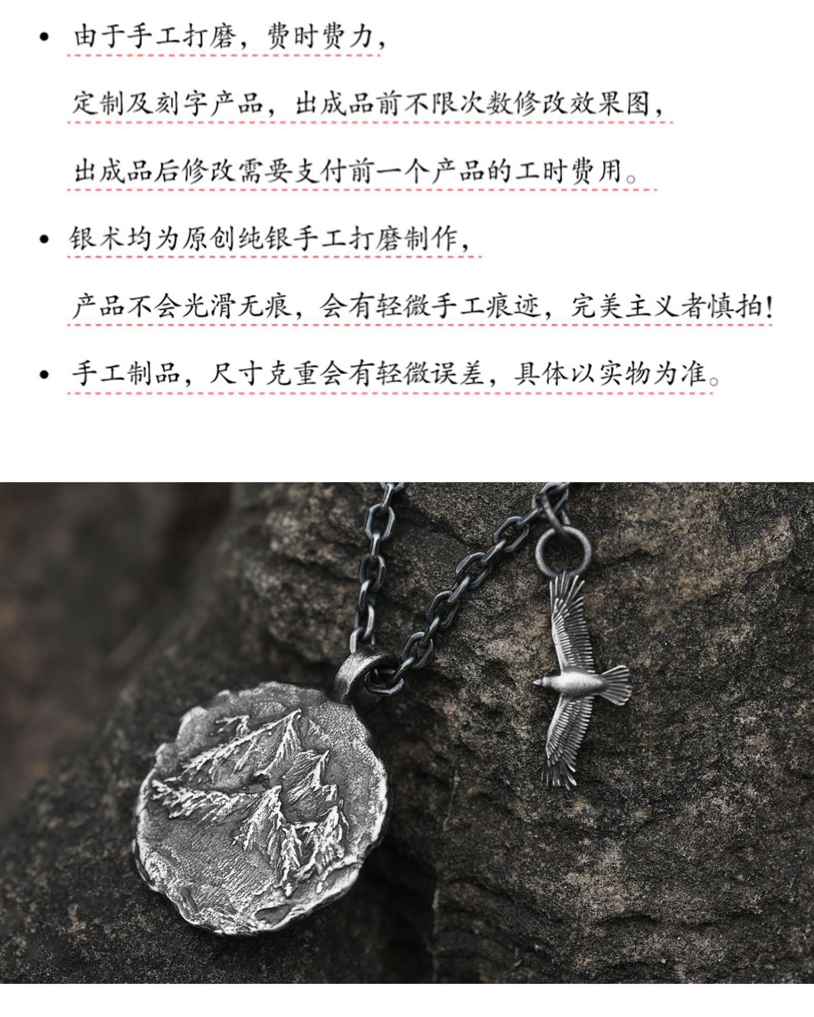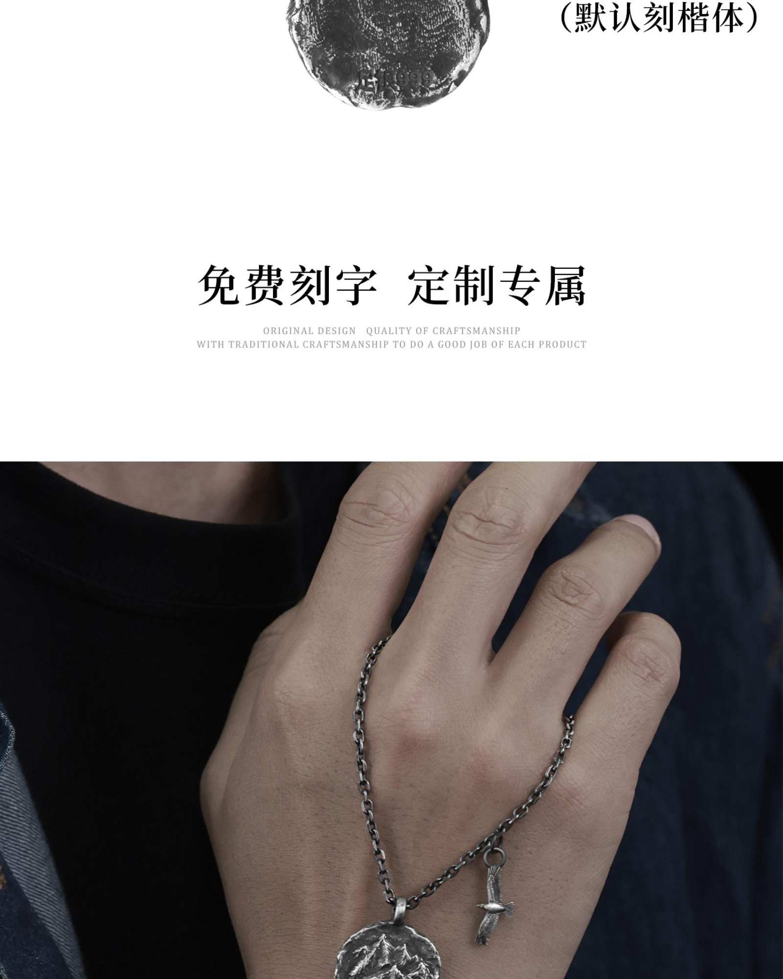 Yinshu Original "Flying Bird" Necklace for Men, 999 Pure Silver Handmade Men's Design, Niche Men's Pendant, Vintage
