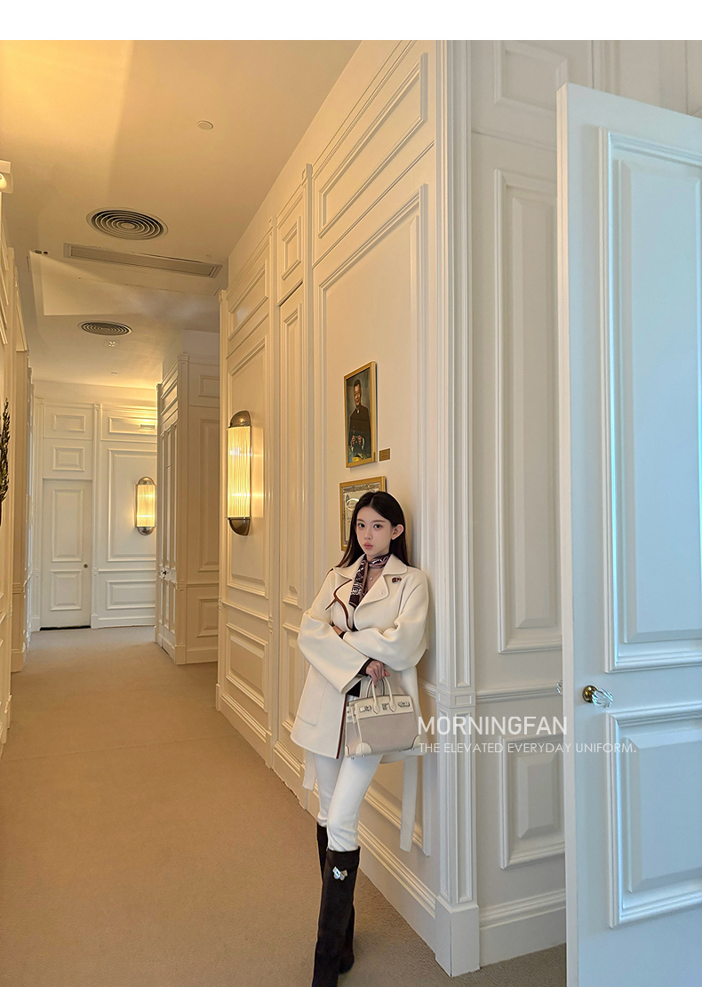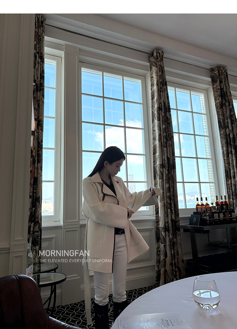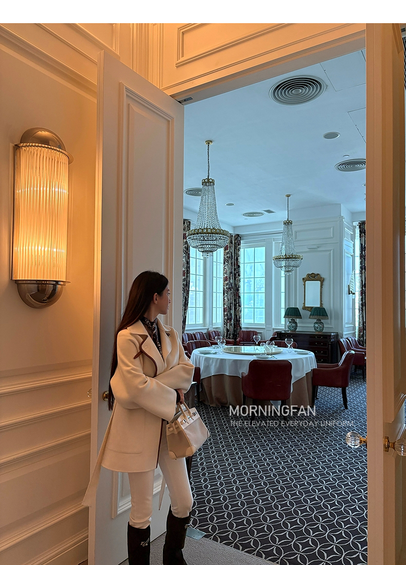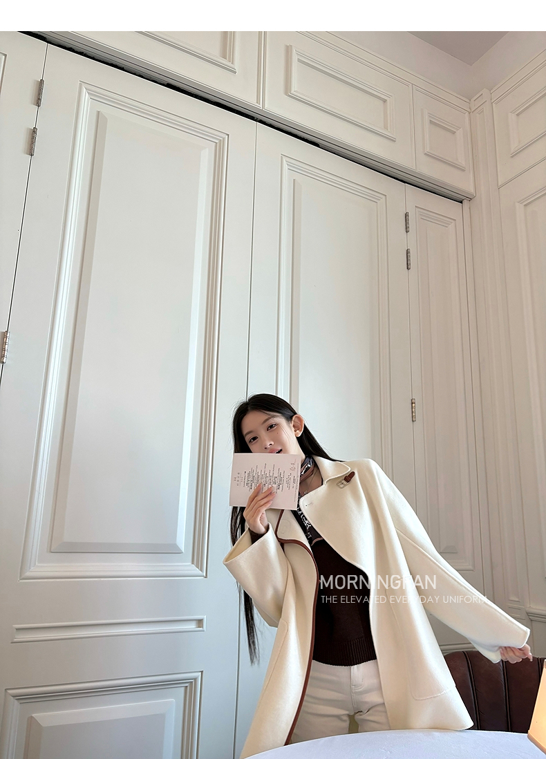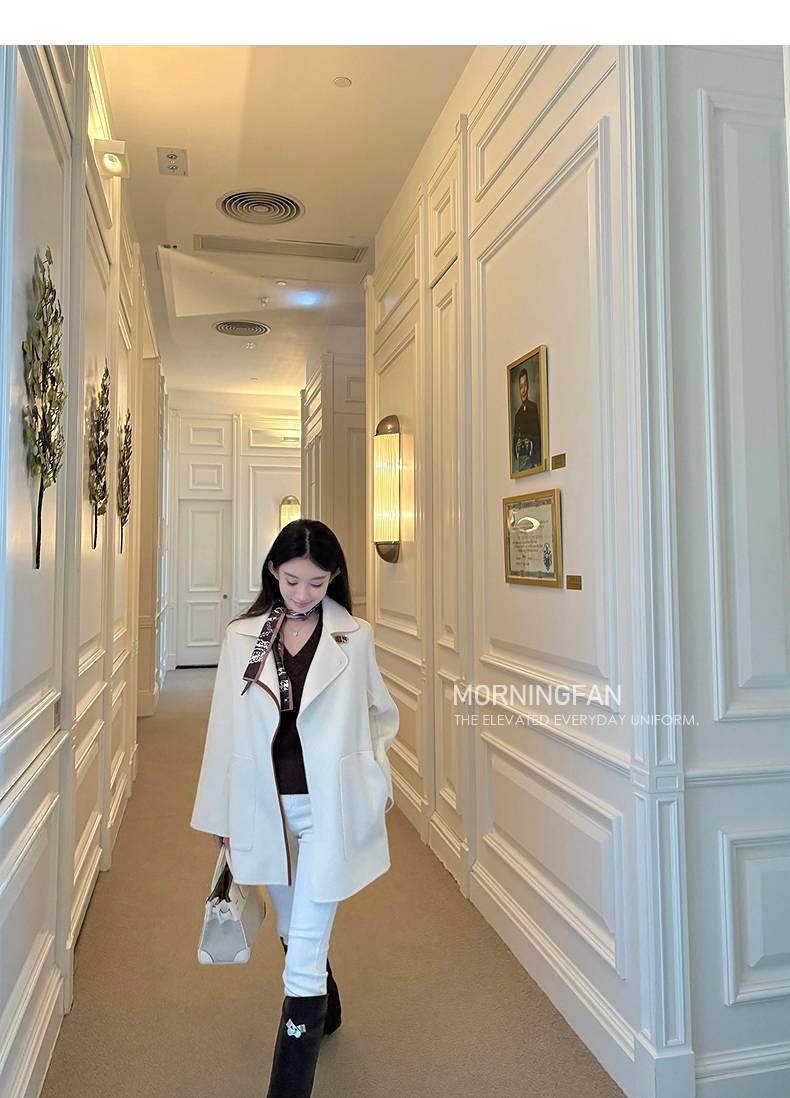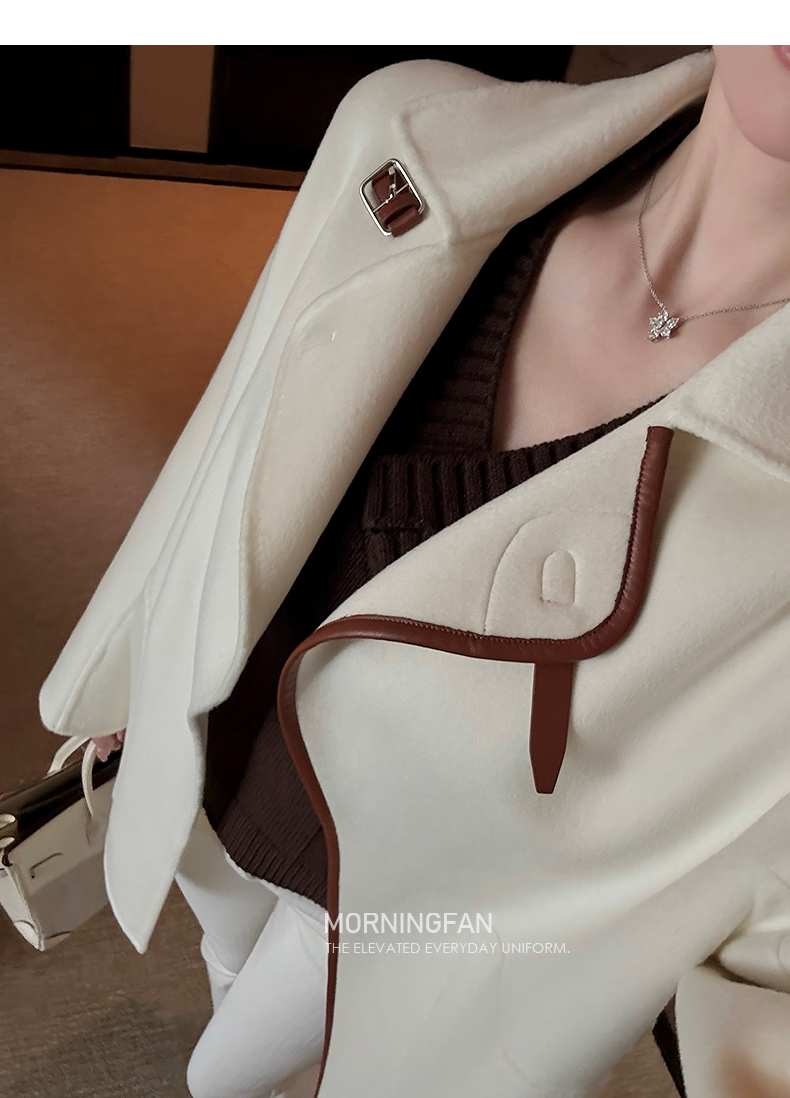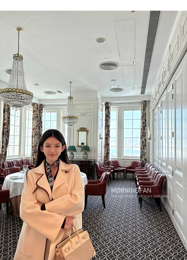 而且双面呢的面料含有90%羊毛 10%羊绒 本身就很有挺括度