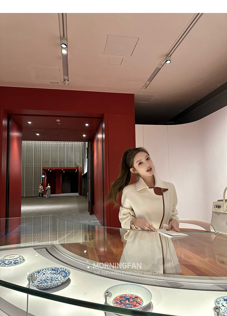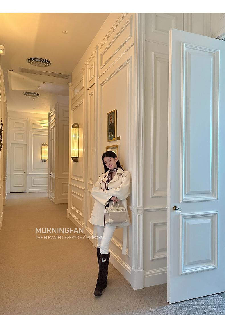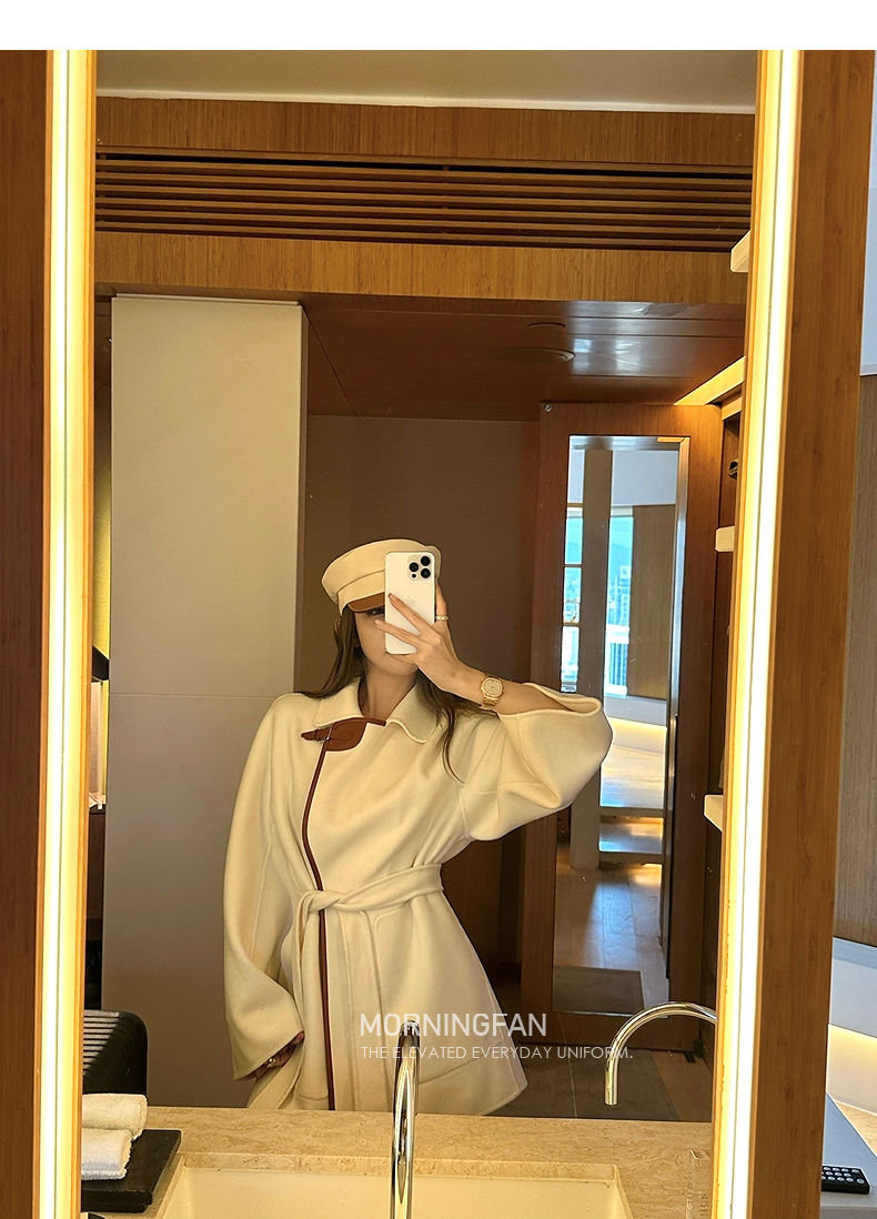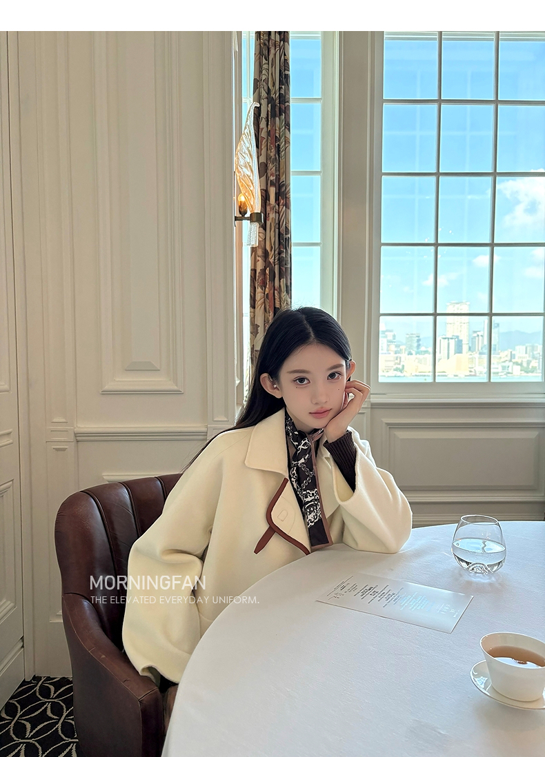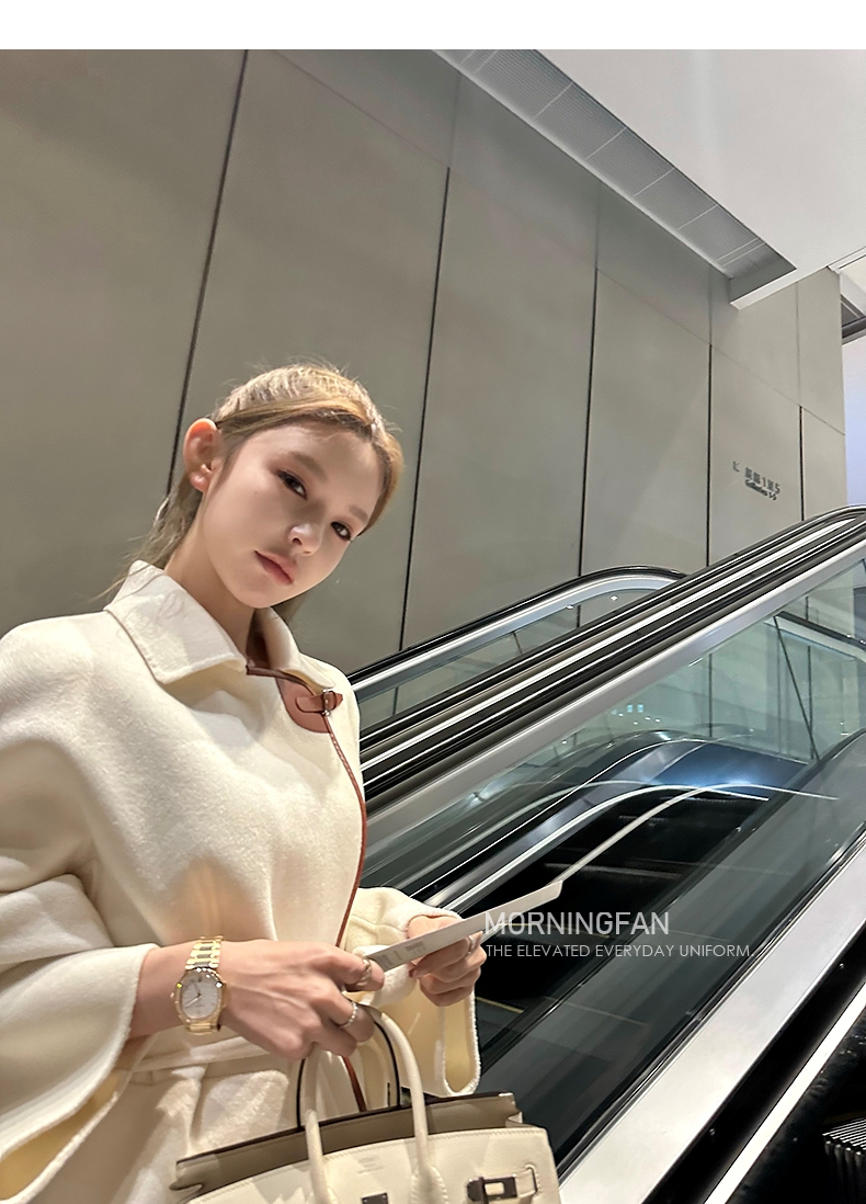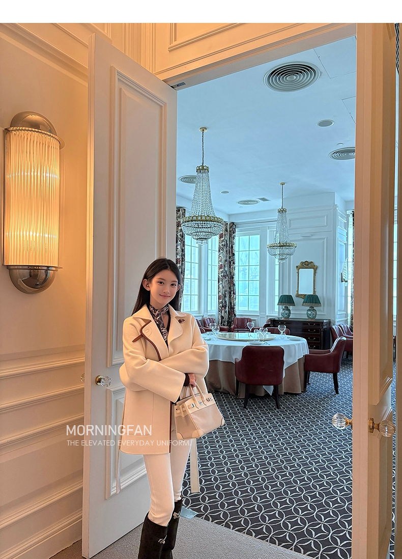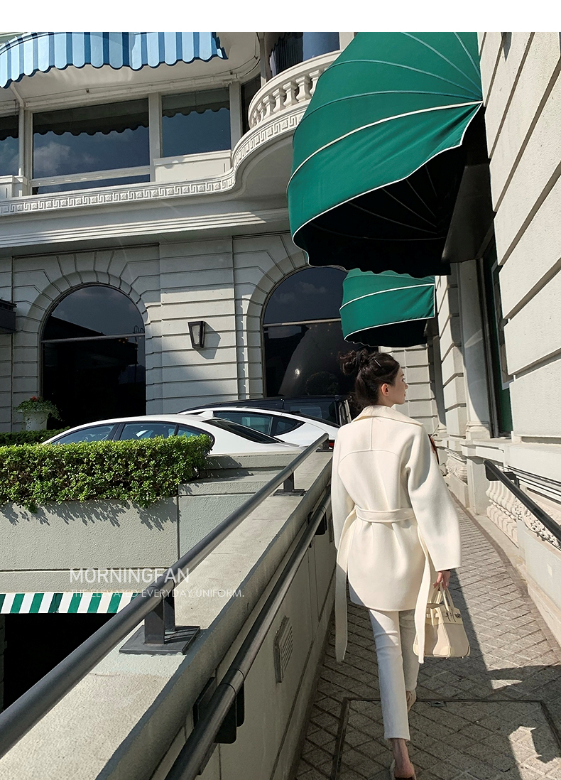 而且双面呢的面料含有90%羊毛 10%羊绒 本身就很有挺括度