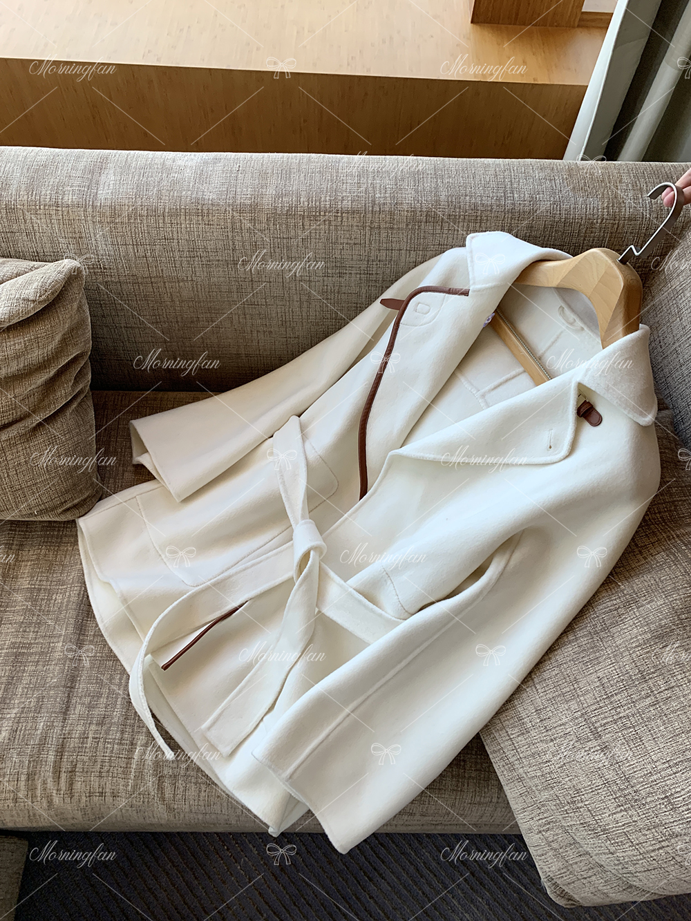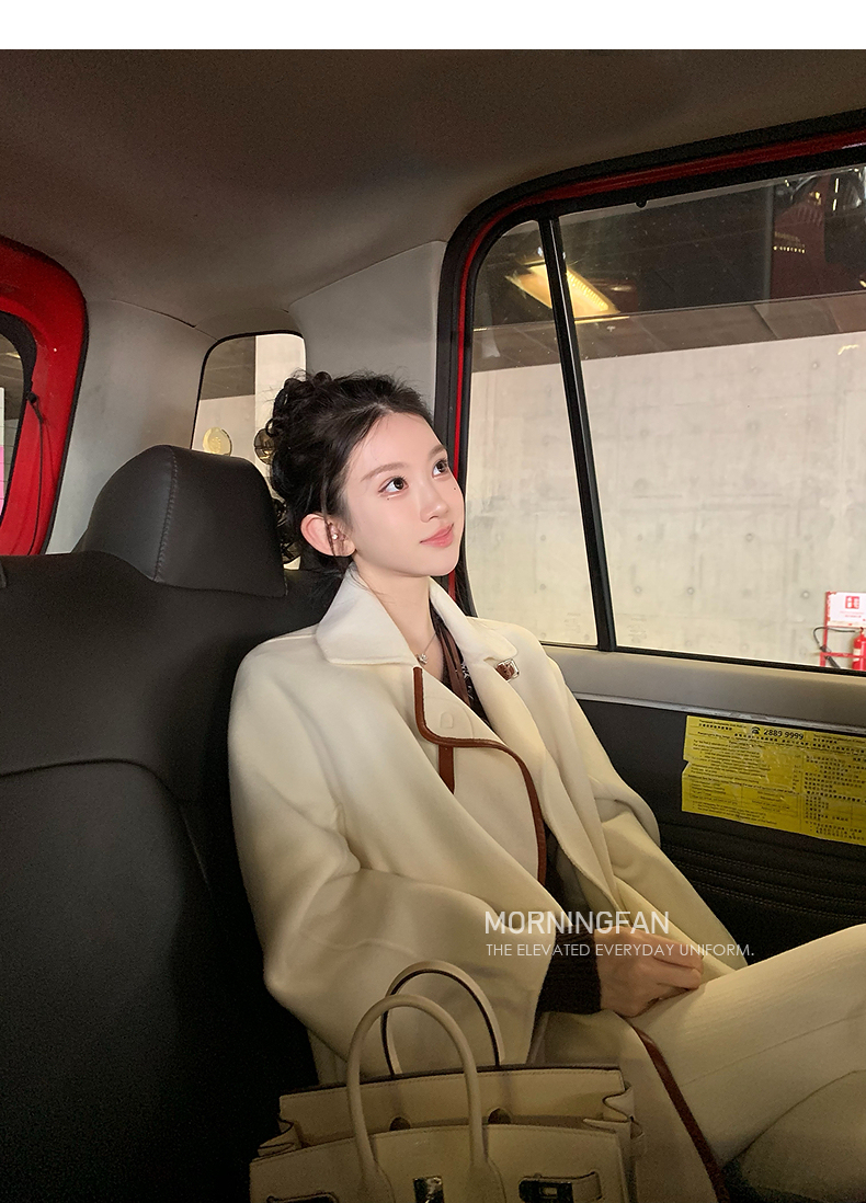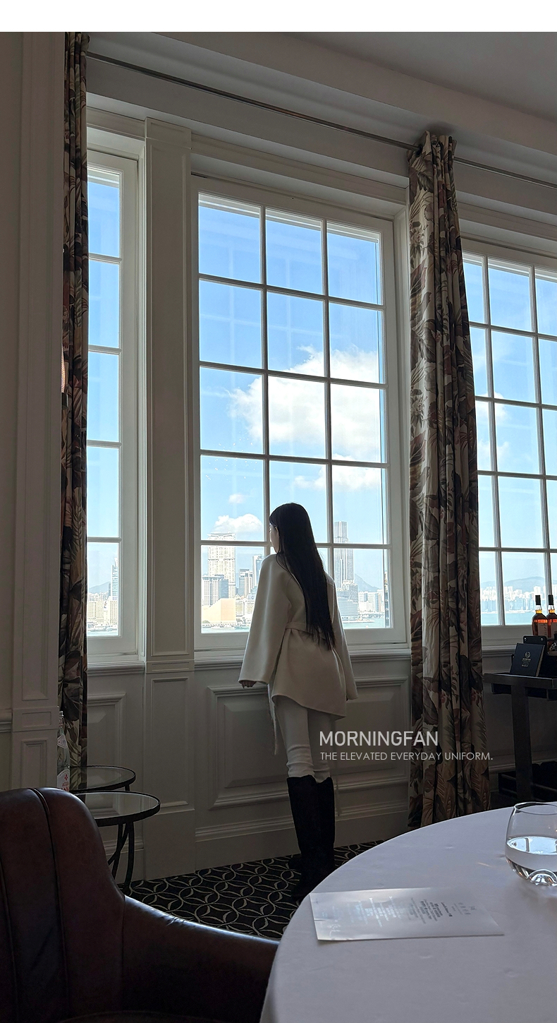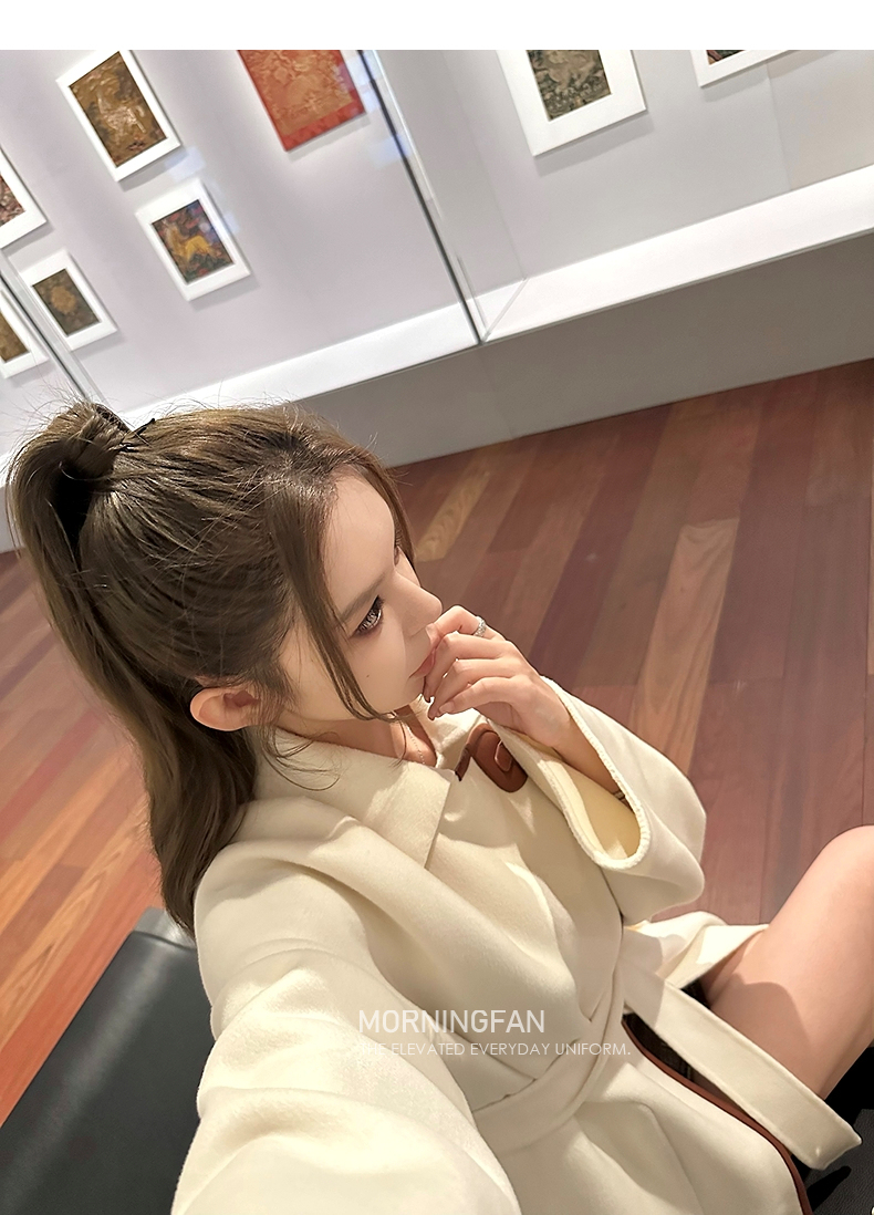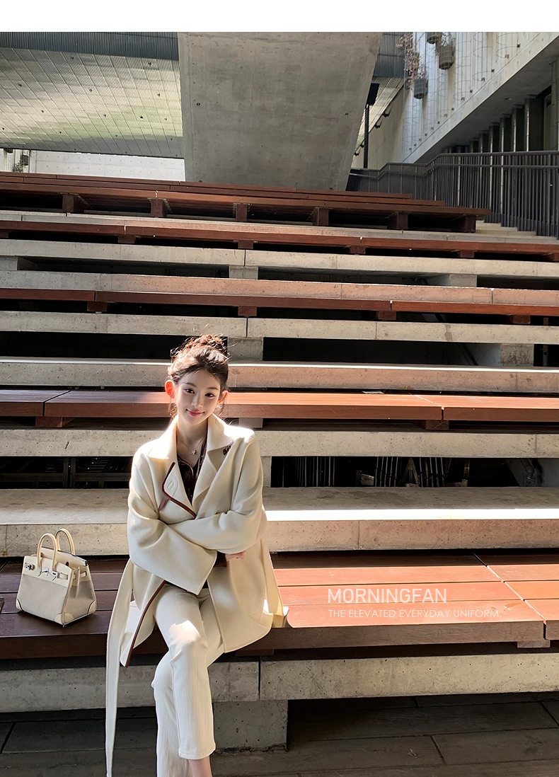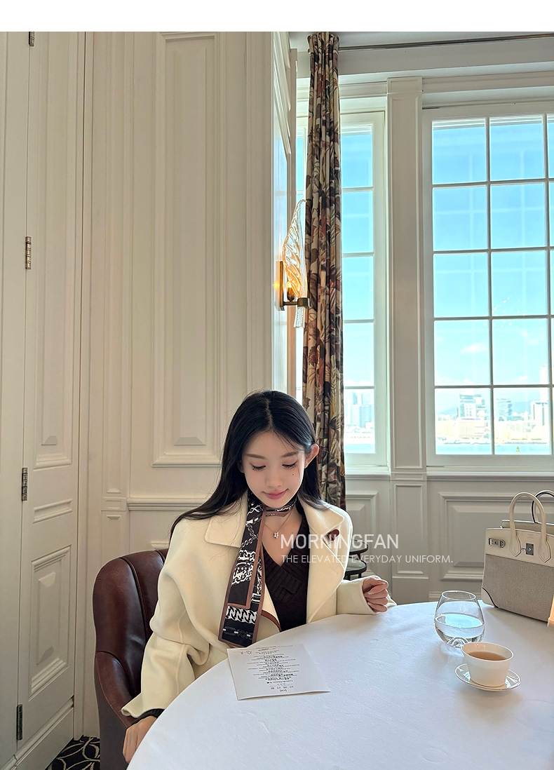 而且双面呢的面料含有90%羊毛 10%羊绒 本身就很有挺括度