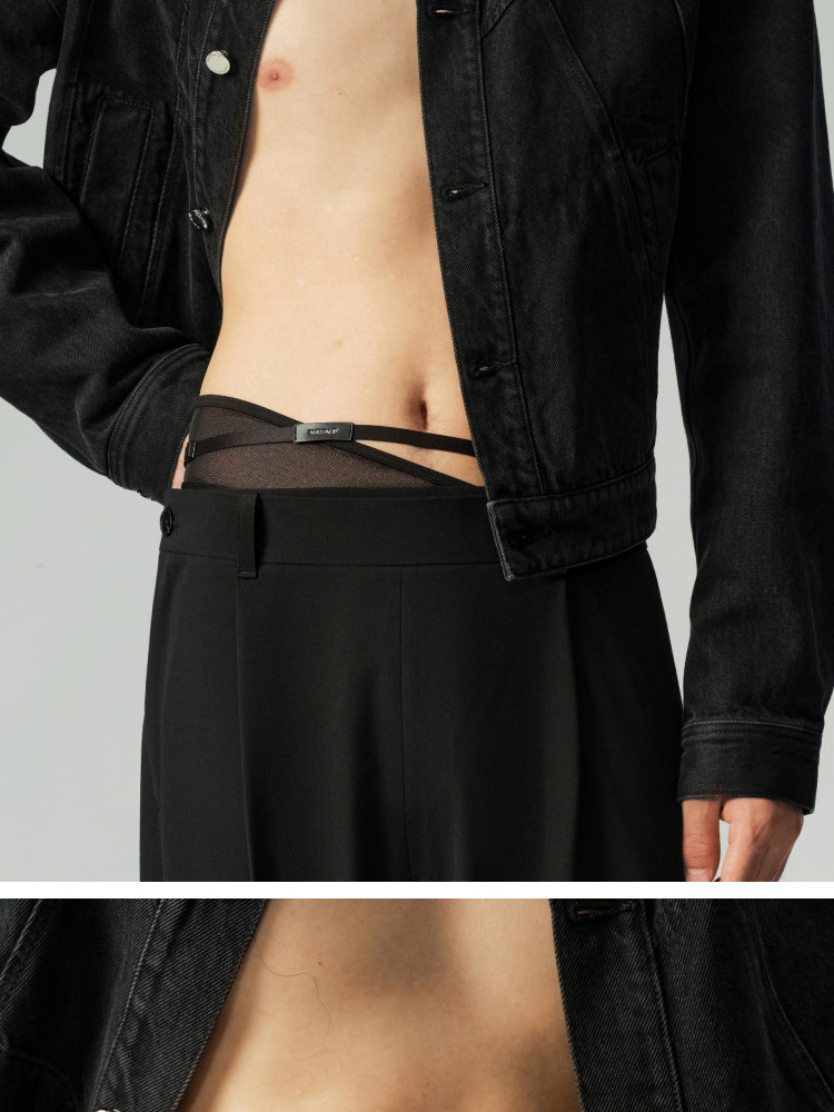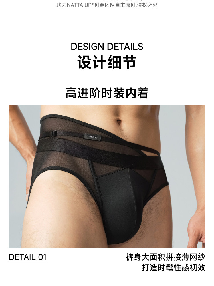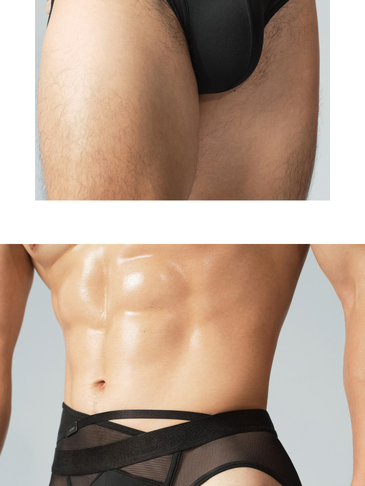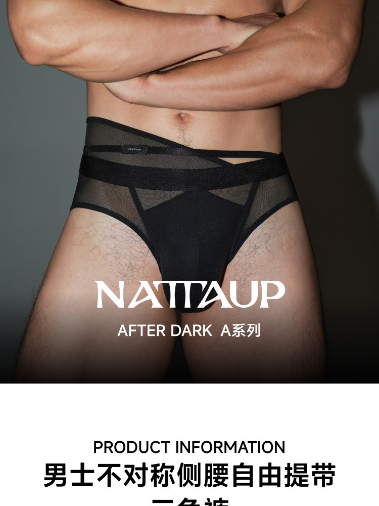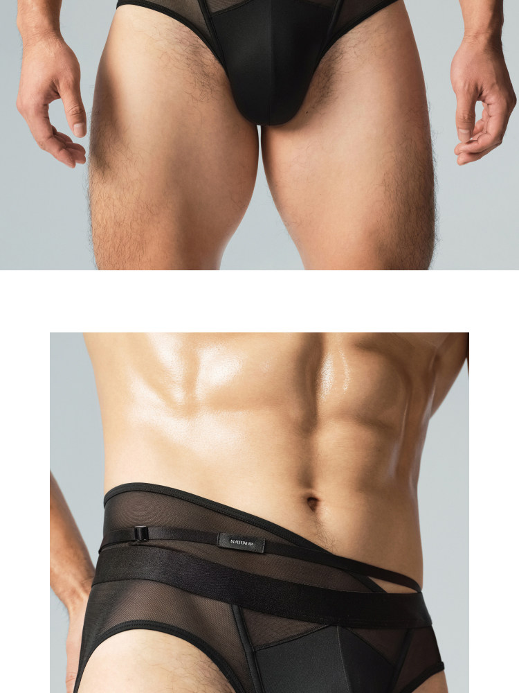 【New Product】Nattaup a Series Men's Asymmetrical Side Waist Free Strap Black Briefs