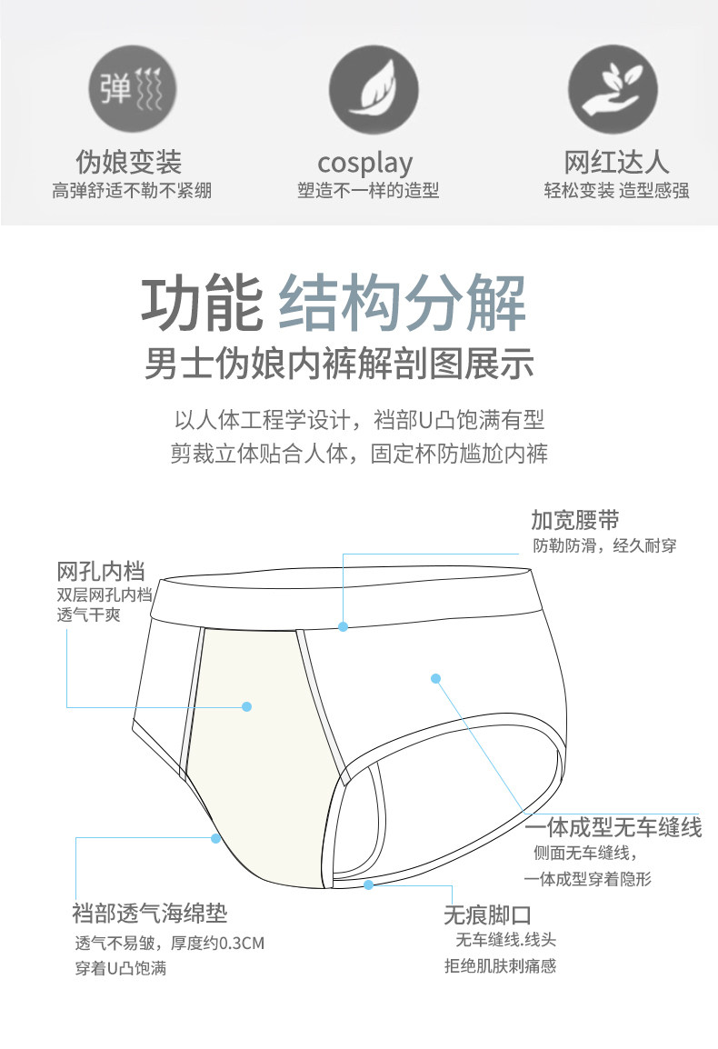 Panties Camel Toe Fake Vagina Panties Women's Cosplay Cross-Dressing Enlarged Vagina Fake Vagina Triangle Panties Seamless Invisible