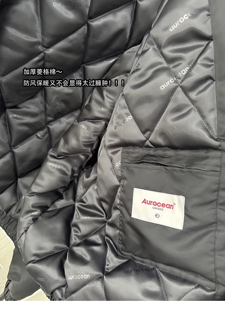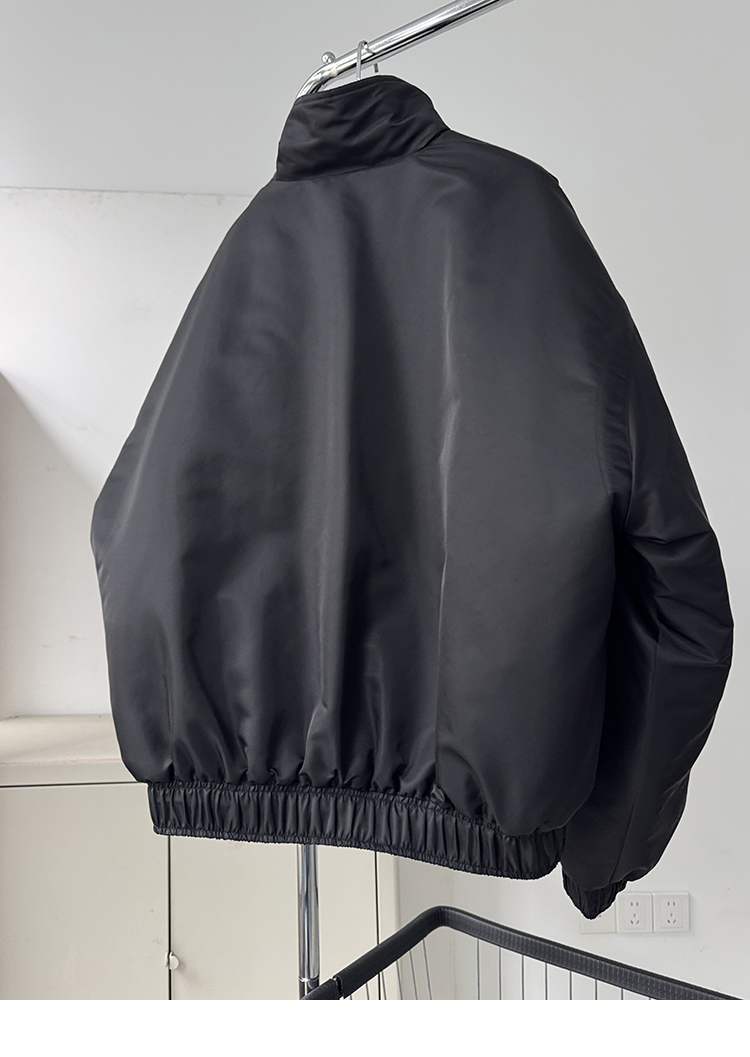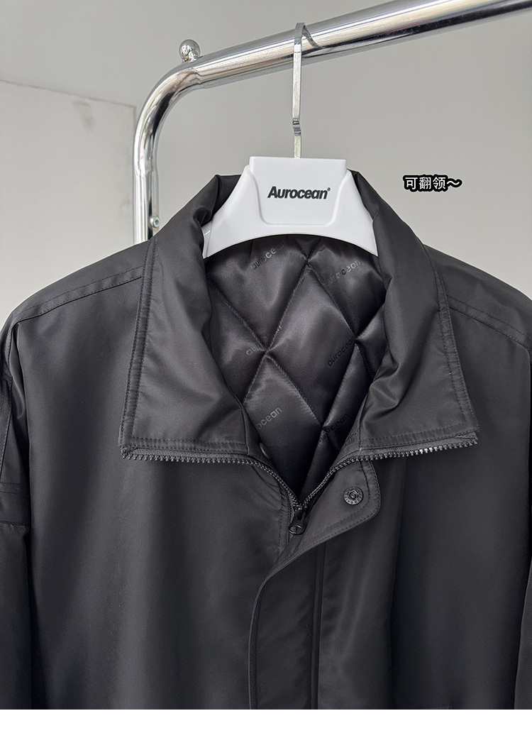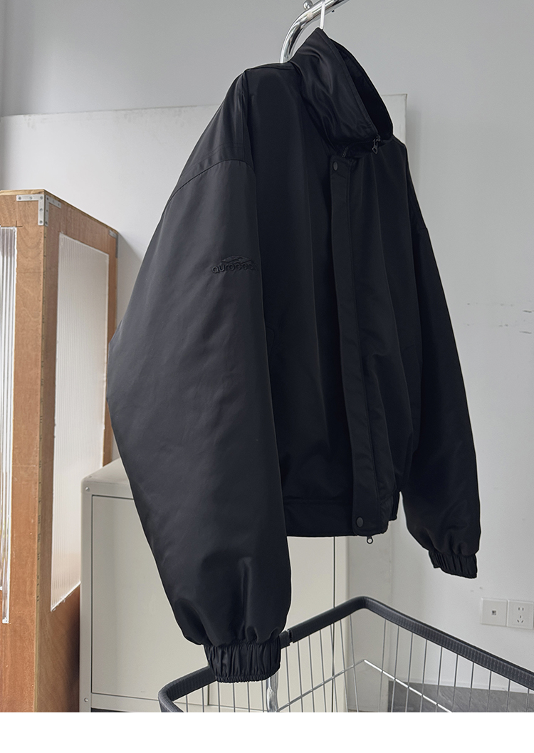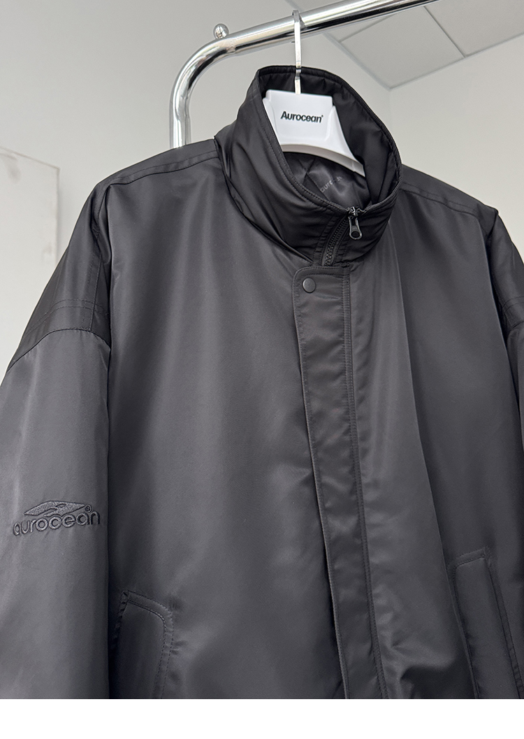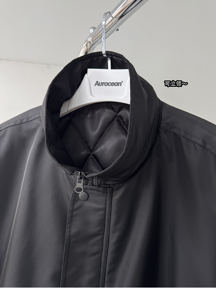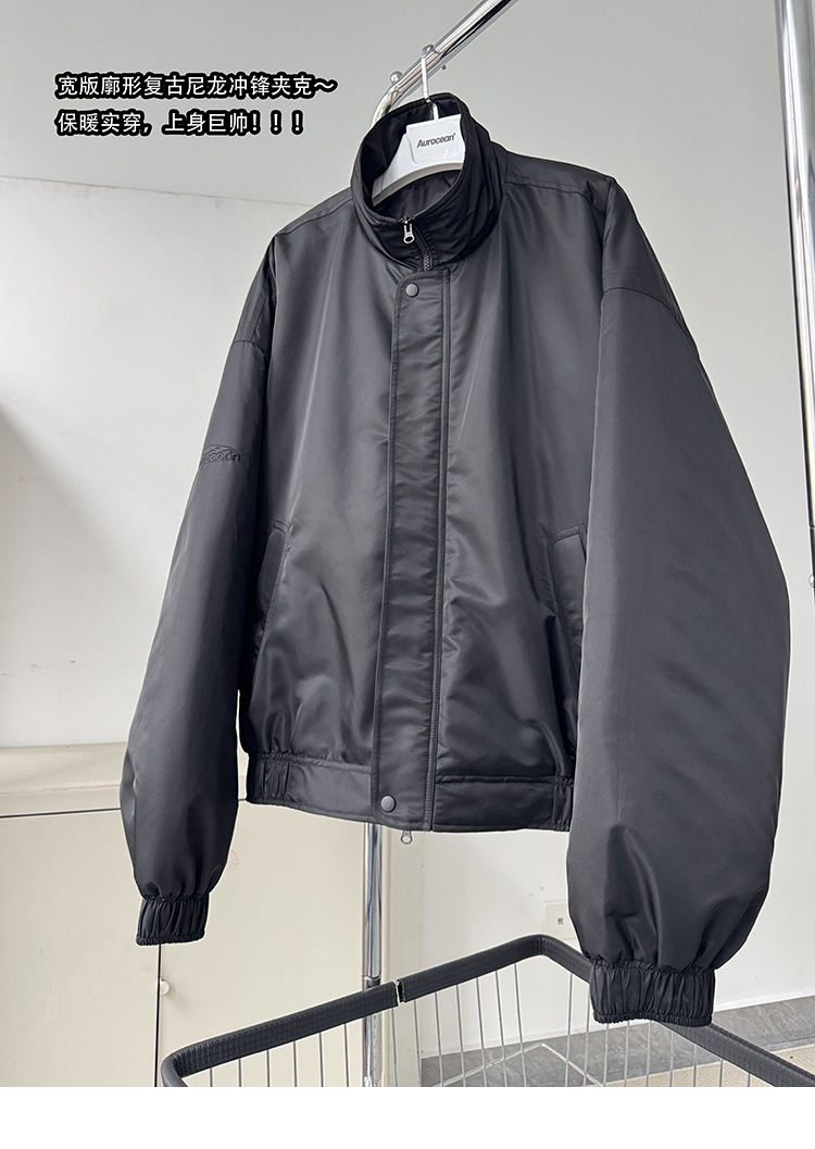 Aurocean Retro Nylon Cotton Jacket, Wide Silhouette, Simple Black Cotton Coat
