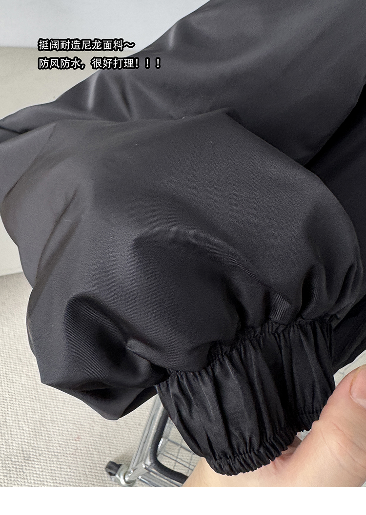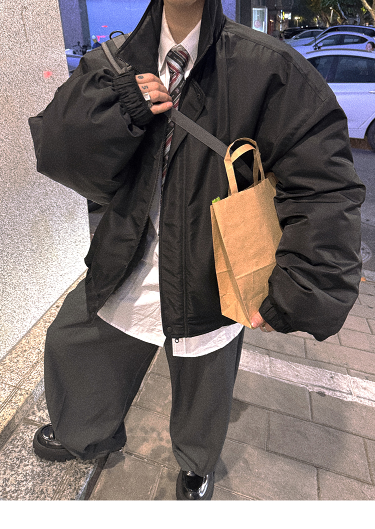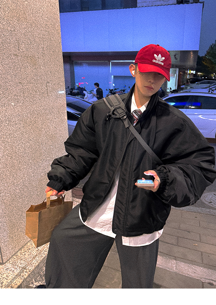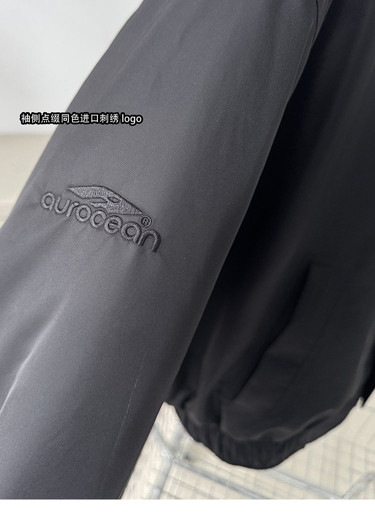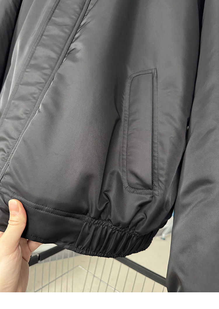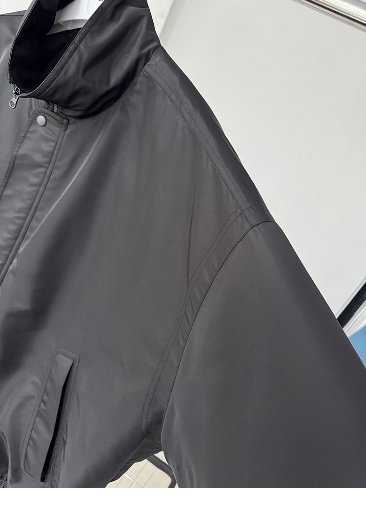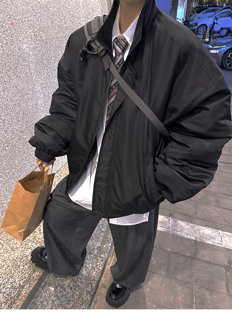 Aurocean Retro Nylon Cotton Jacket, Wide Silhouette, Simple Black Cotton Coat