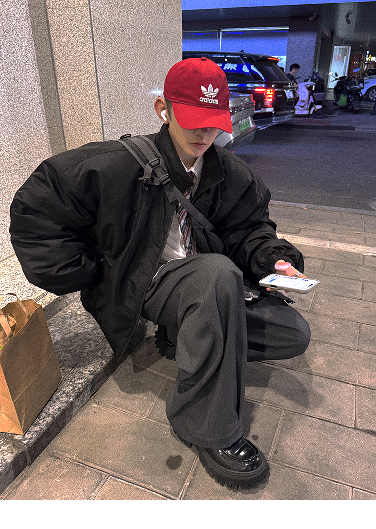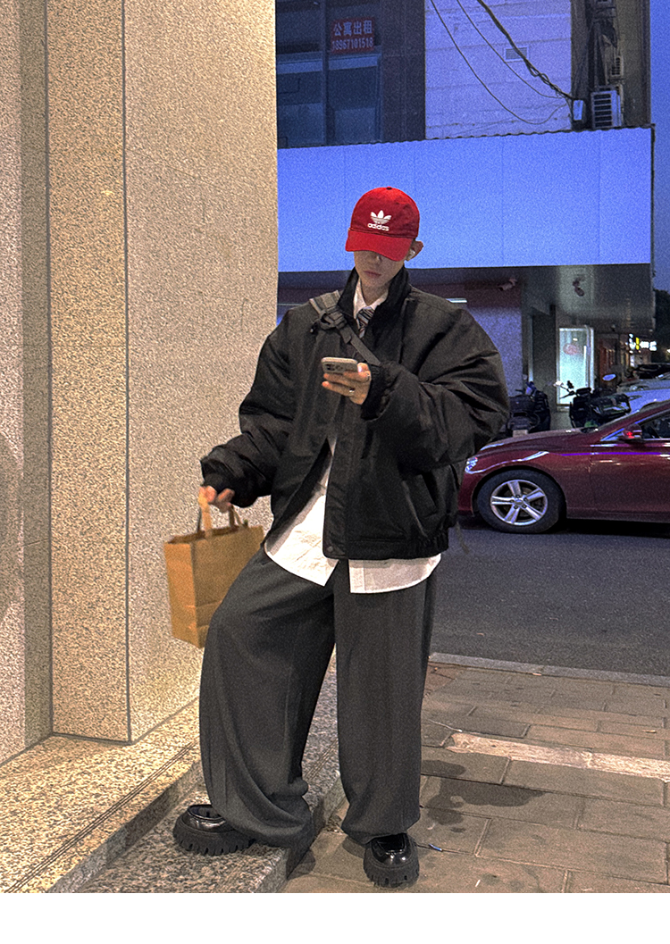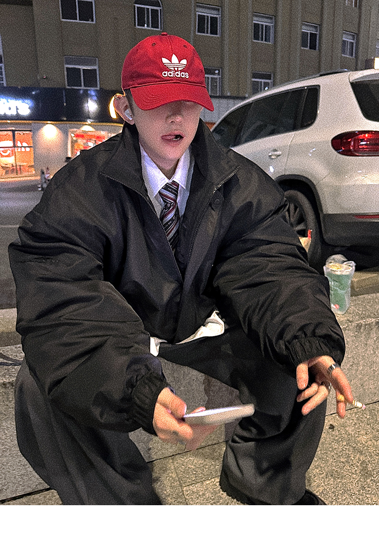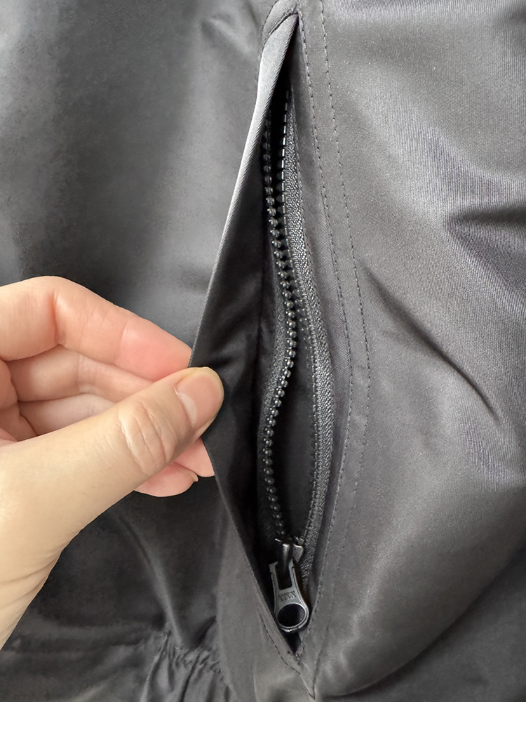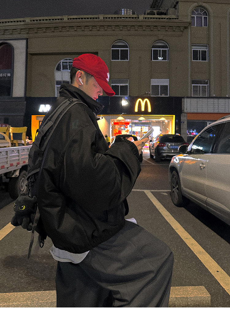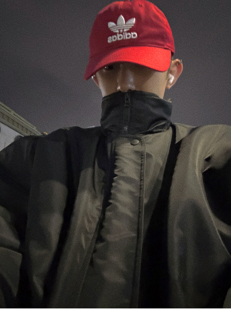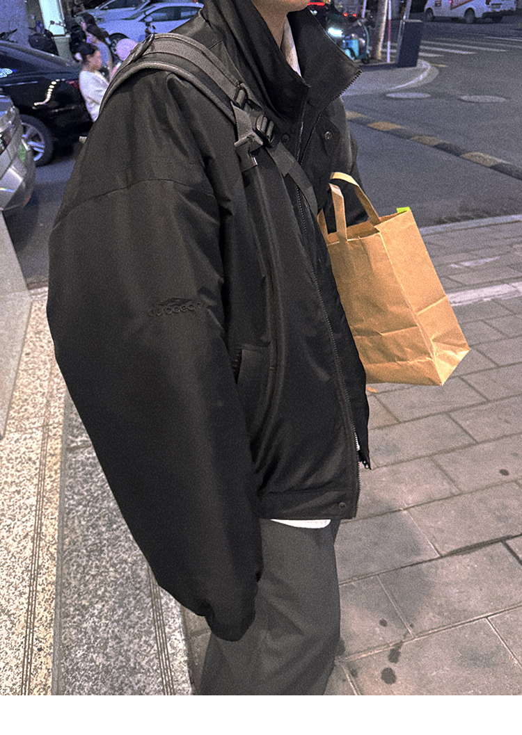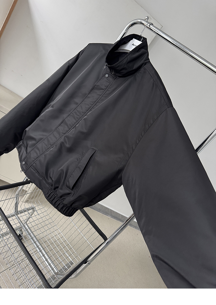 Aurocean Retro Nylon Cotton Jacket, Wide Silhouette, Simple Black Cotton Coat