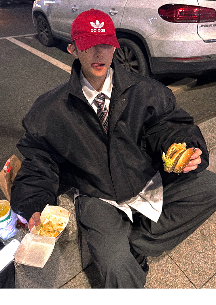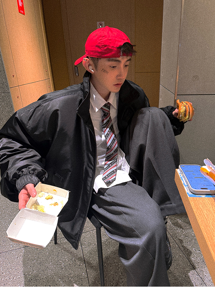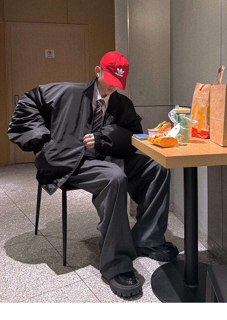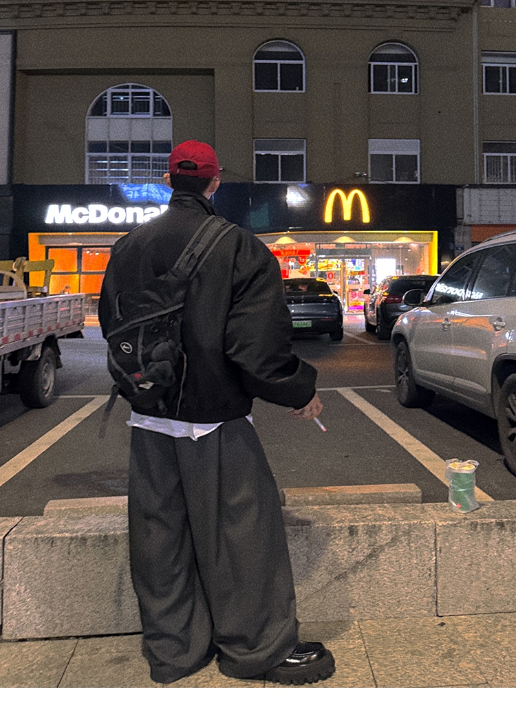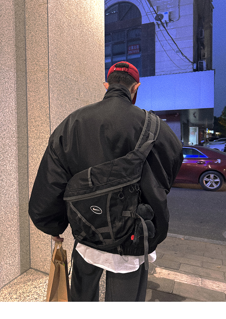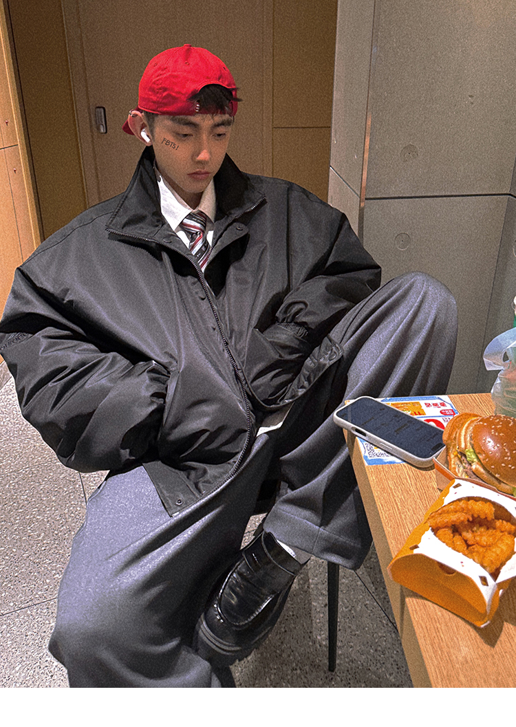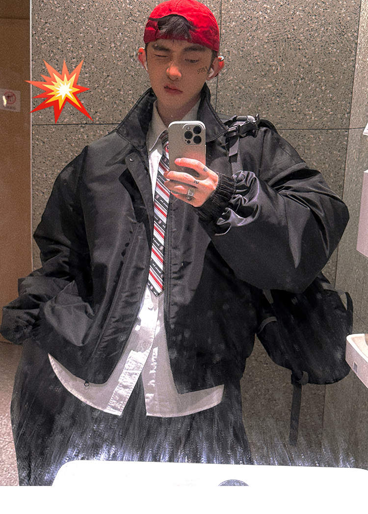 Aurocean Retro Nylon Cotton Jacket, Wide Silhouette, Simple Black Cotton Coat