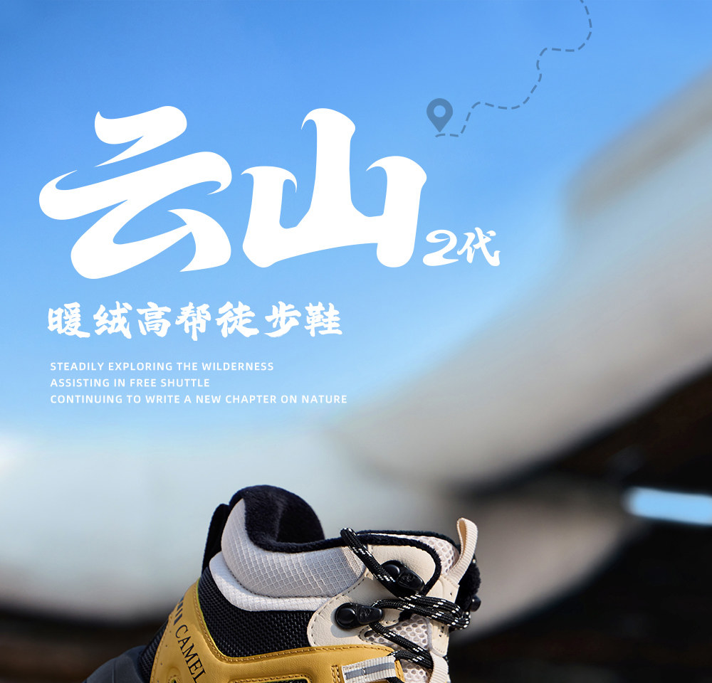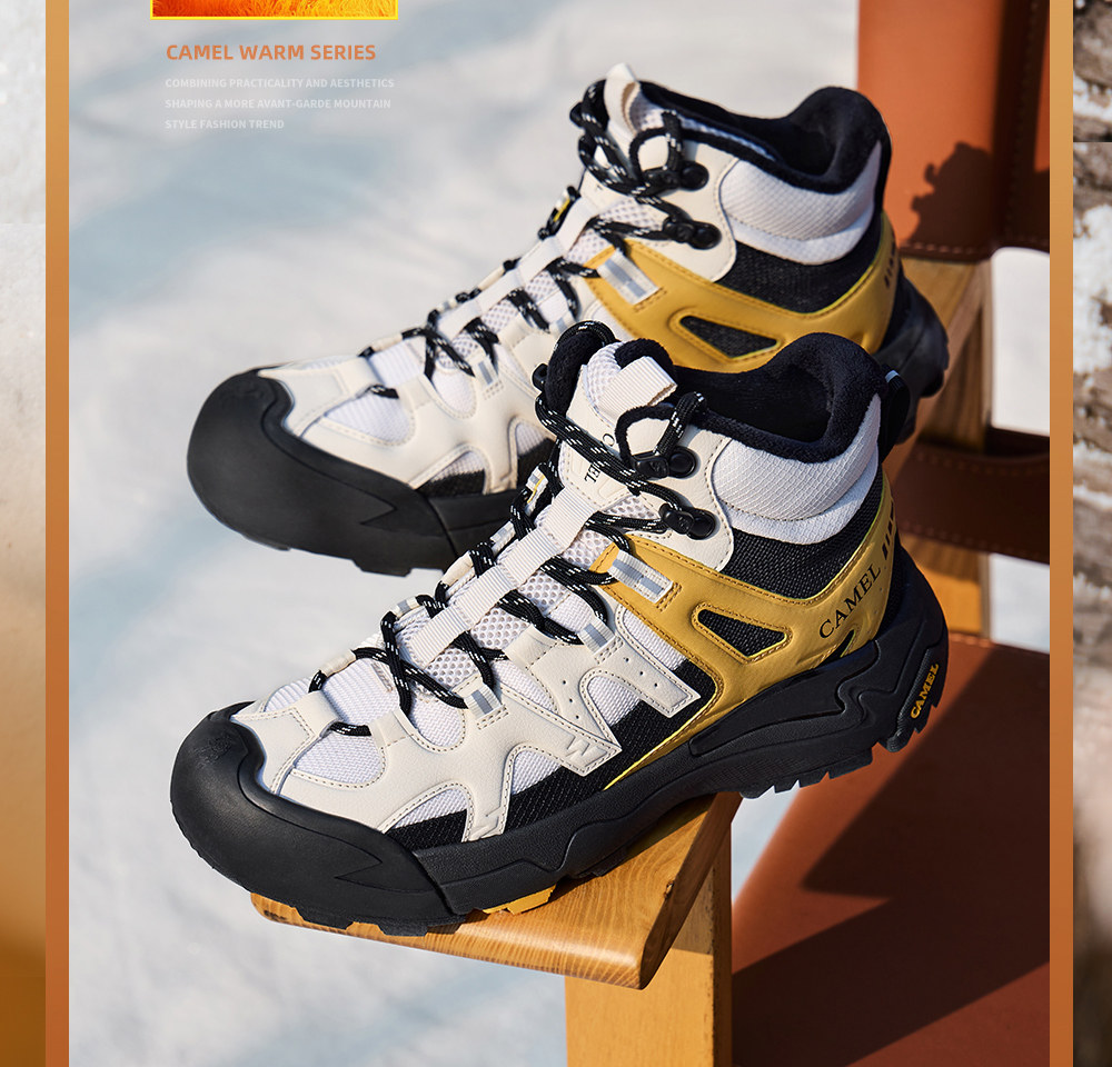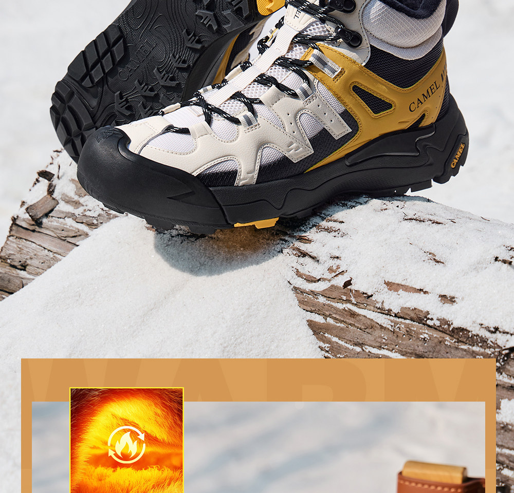 Camel Cloud Mountain 2Nd Generation 2025 Winter Men's Shoes New Model with Fleece Lining, Anti-Collision, Grip-Enhanced, Lightweight Outdoor High-Top Hiking Shoes