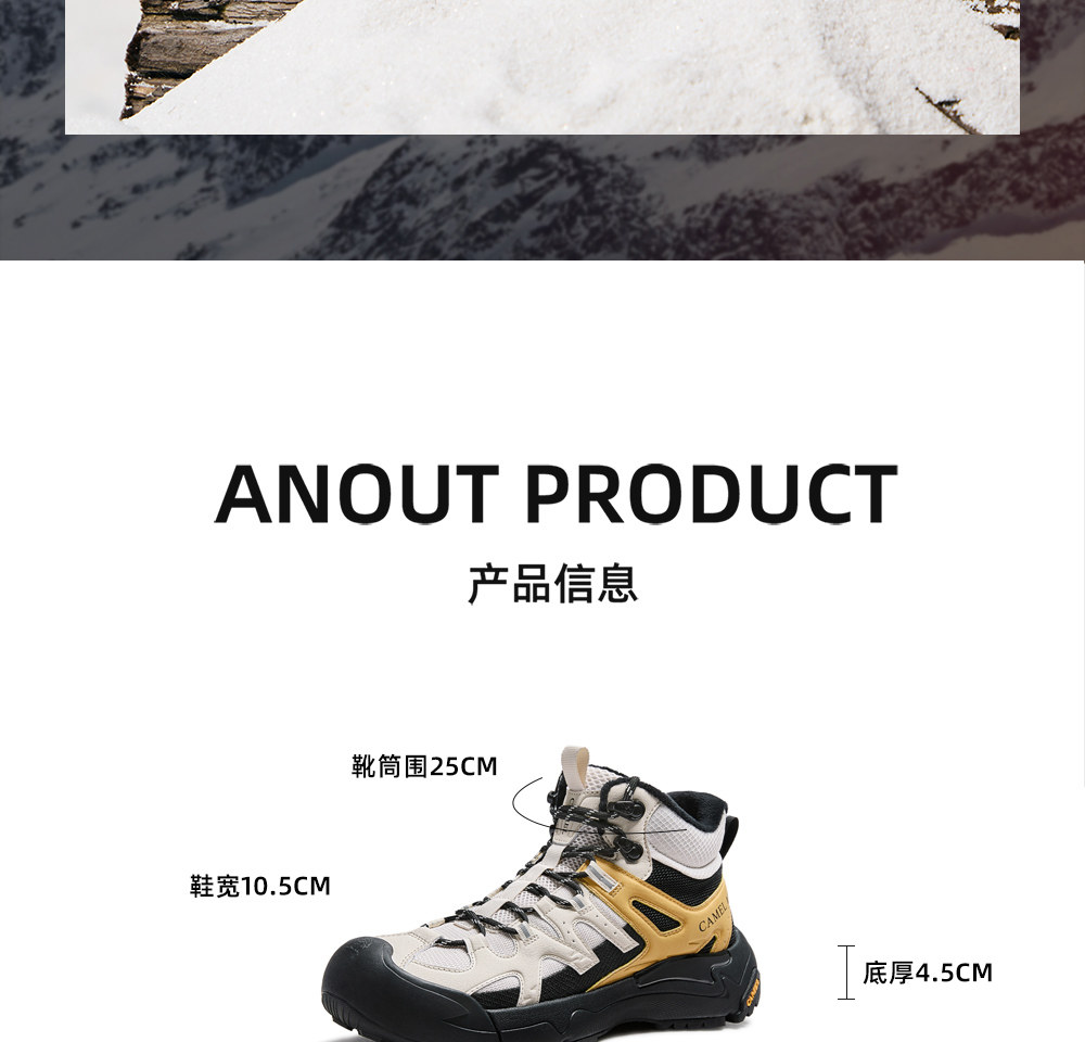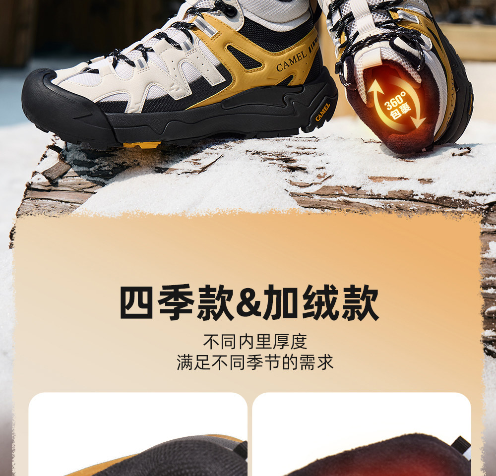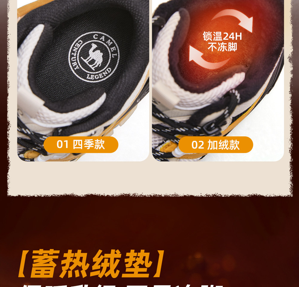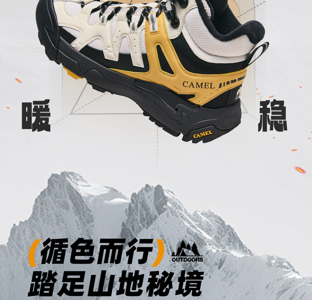 Camel Cloud Mountain 2Nd Generation 2025 Winter Men's Shoes New Model with Fleece Lining, Anti-Collision, Grip-Enhanced, Lightweight Outdoor High-Top Hiking Shoes