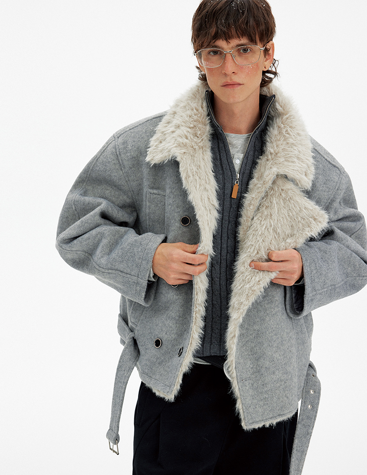 Madwitch Retro High-End Double-Breasted Fur Collar Cotton Jacket for Men and Women, Winter Casual Wool Blend Warm Coat