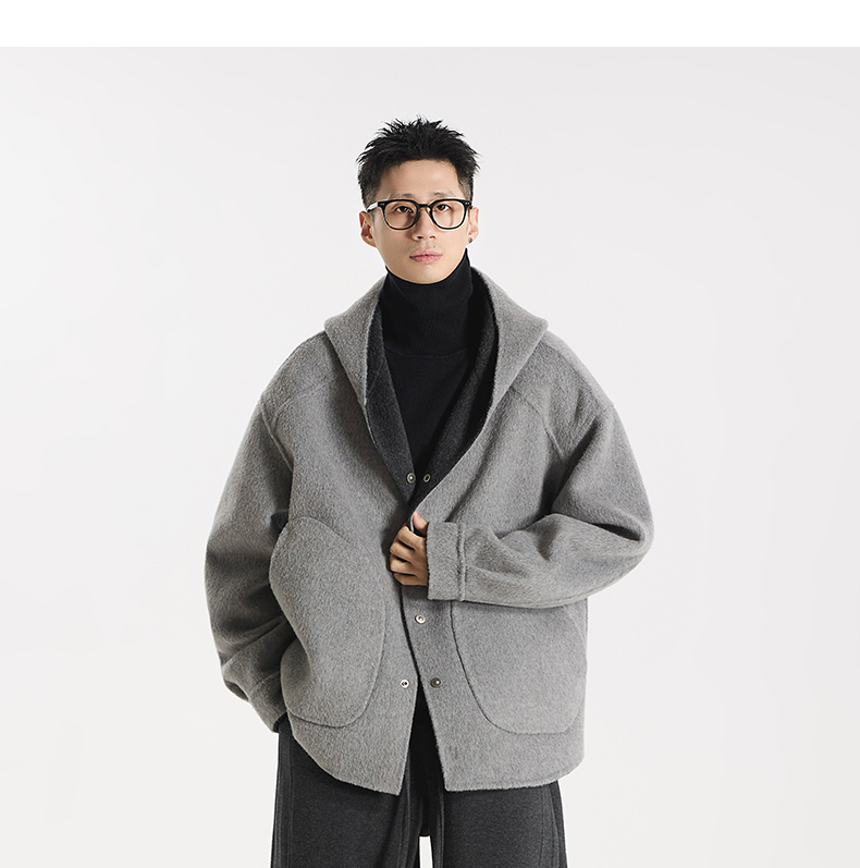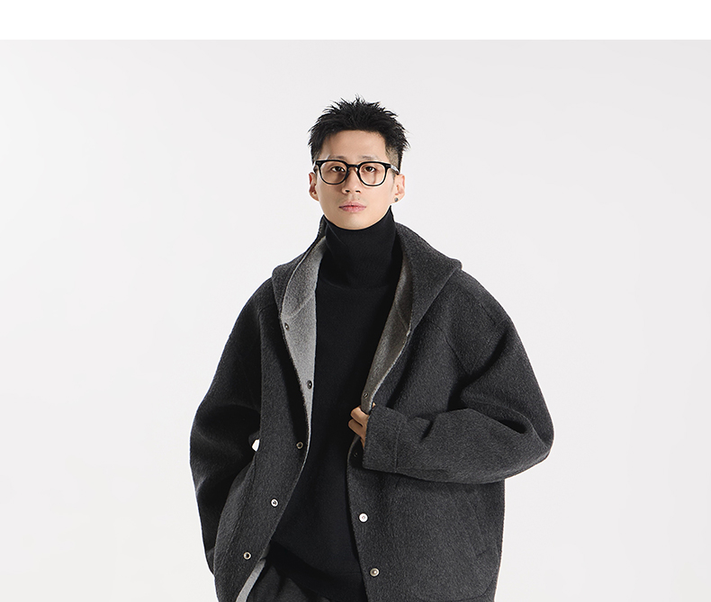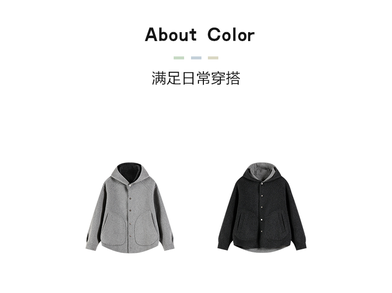 Gccdupe77 `Mumi` Two-Tone Cloud-Soft Reversible Woolen Coat, Autumn and Winter Double-Sided Woolen Hooded Jacket