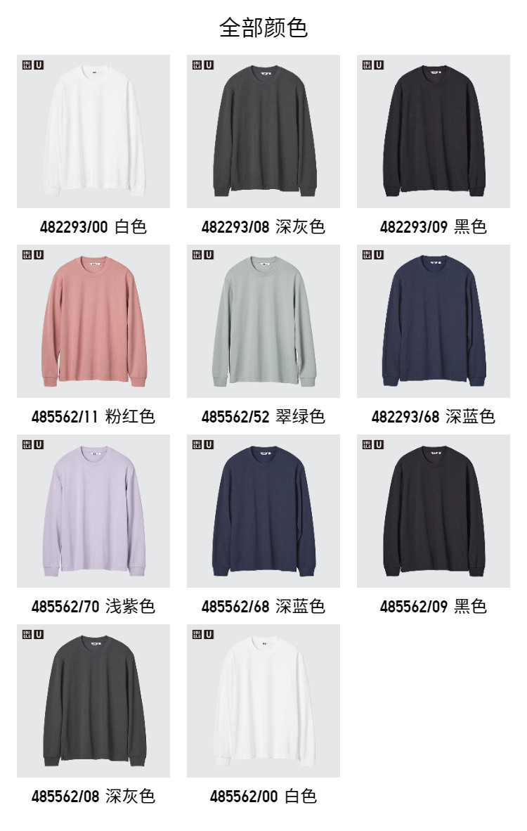 Uniqlo Men's and Women's Airism Cotton Blend Crew Neck T-Shirt/Long Sleeve 482293 485562