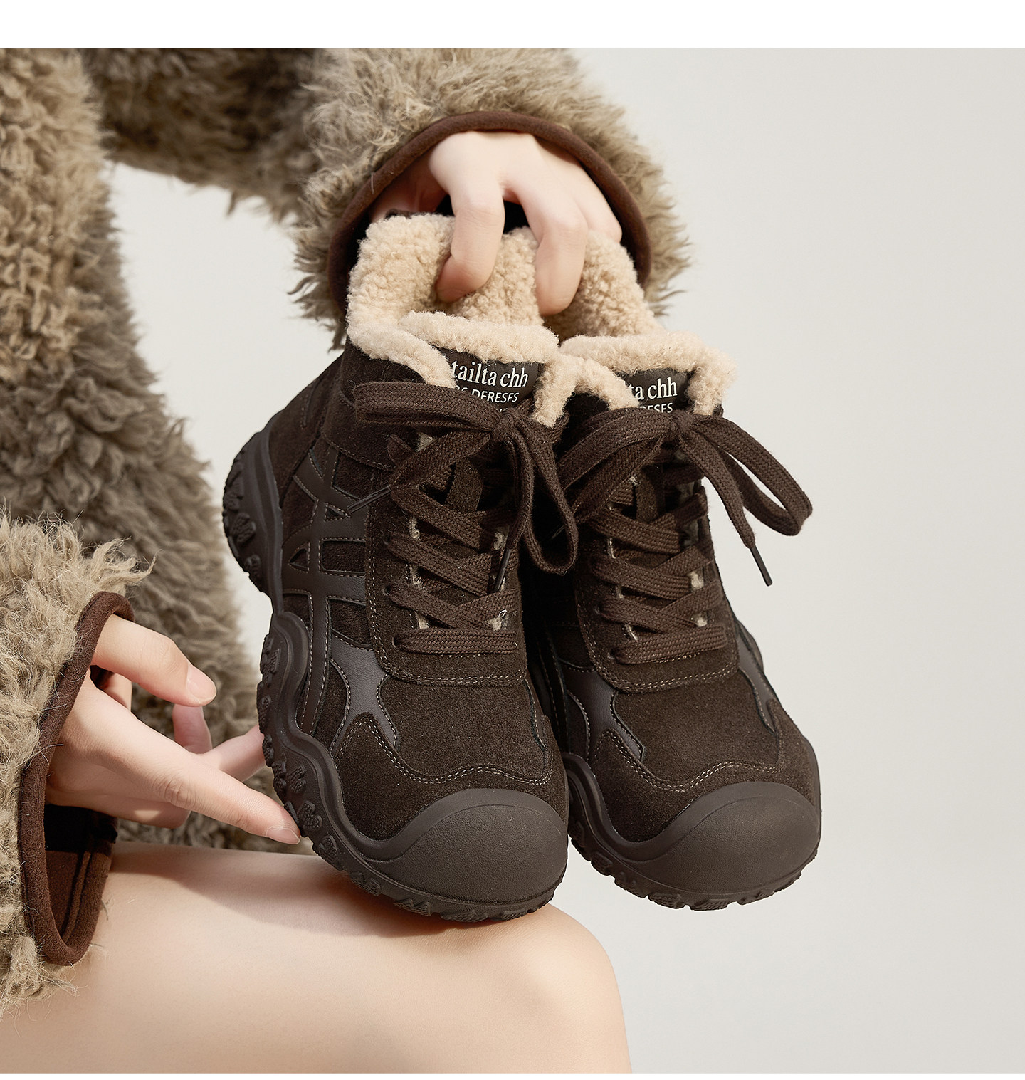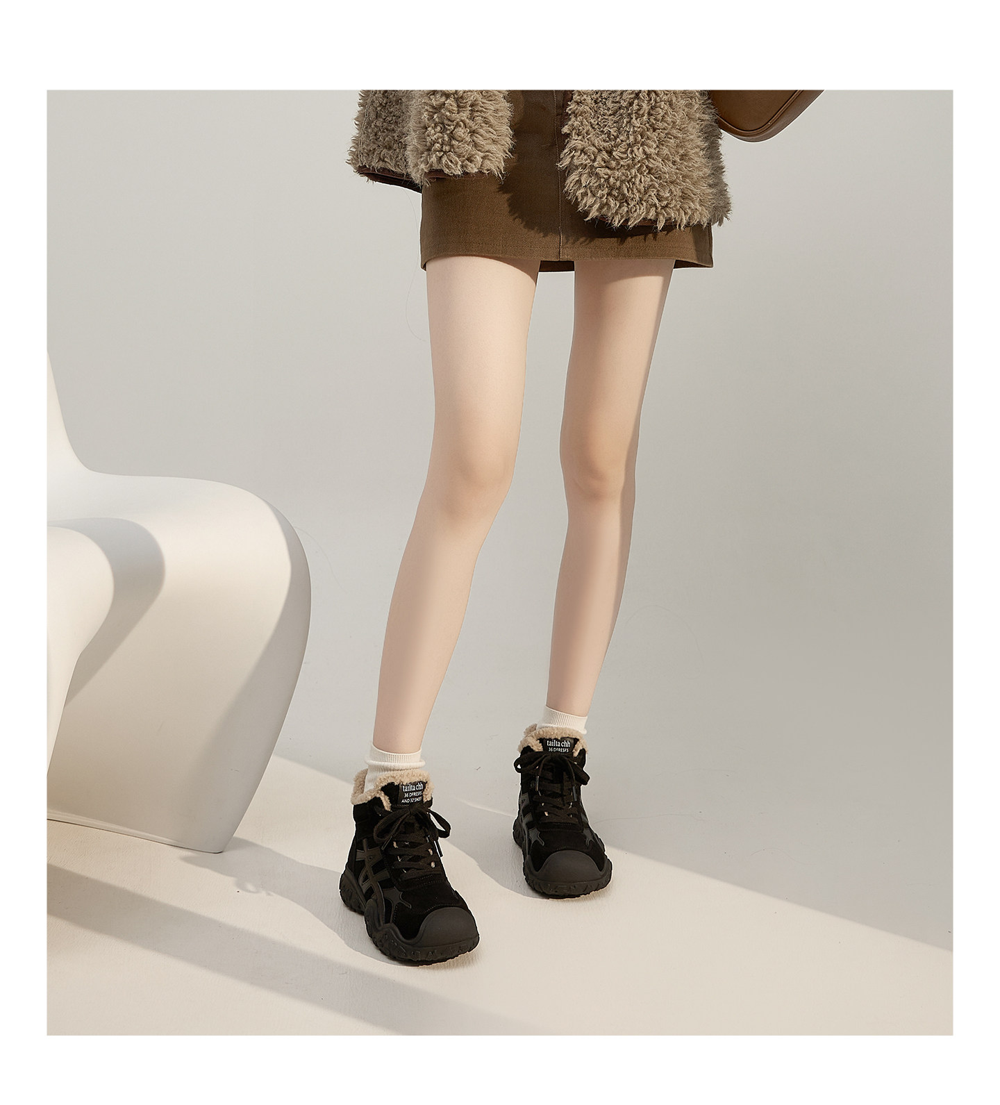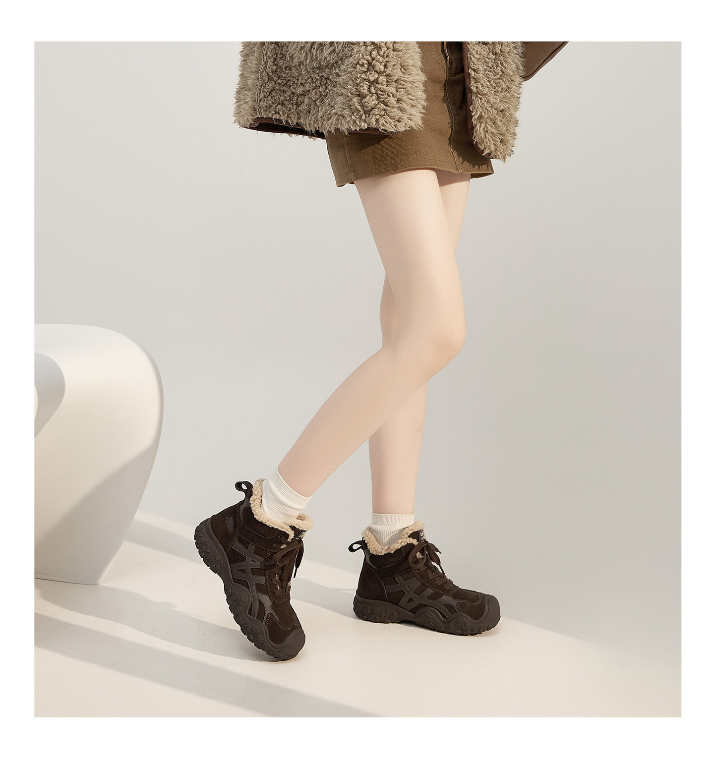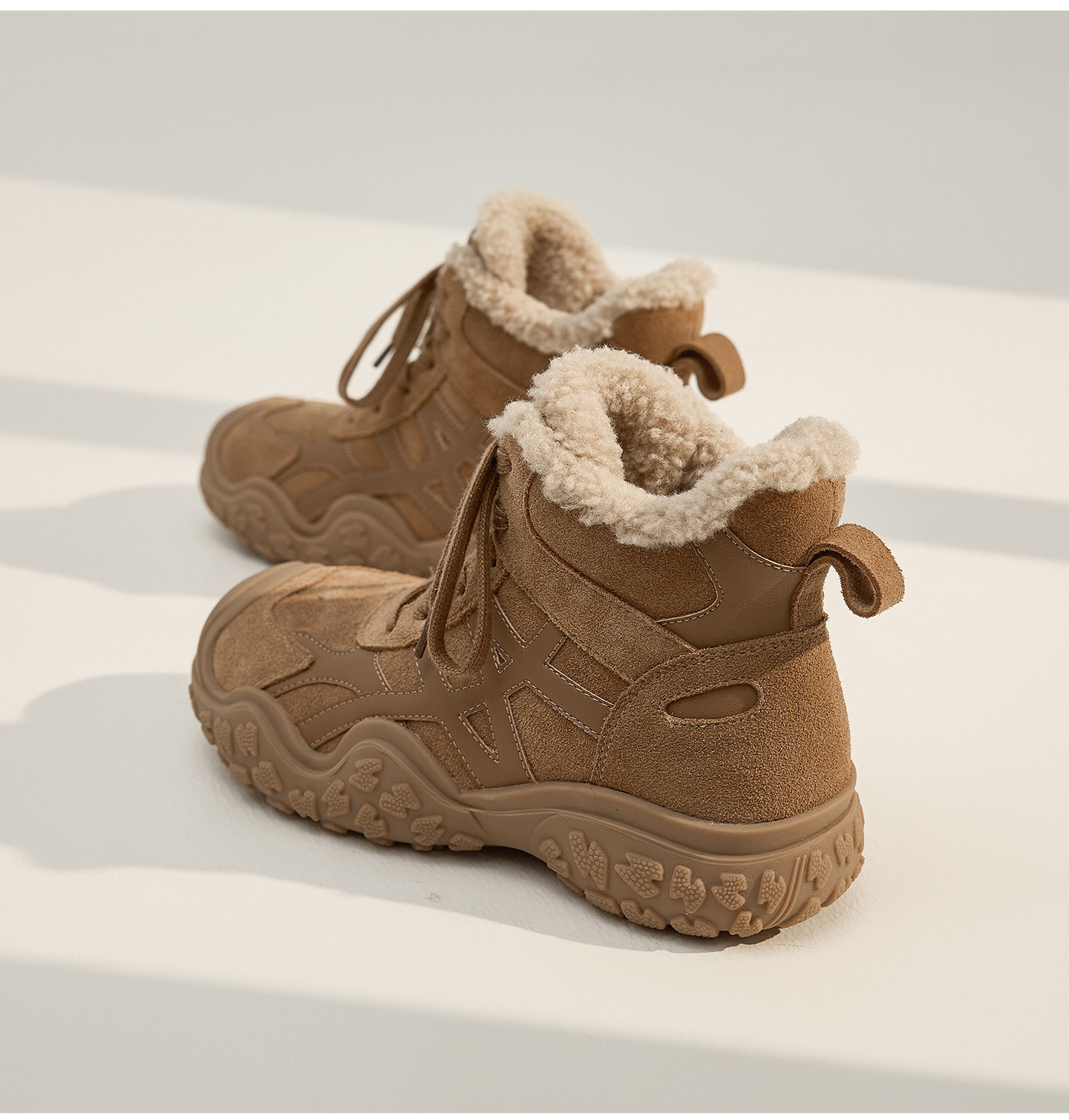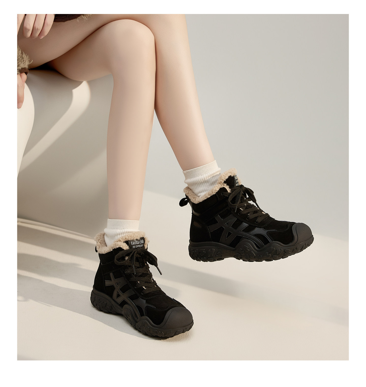 Thick-Soled Martin Boots for Women, 2025 Winter New Style, Fleece-Lined, Thickened, Warm, High-Top Cotton Shoes, Outdoor Hiking Snow Short Boots